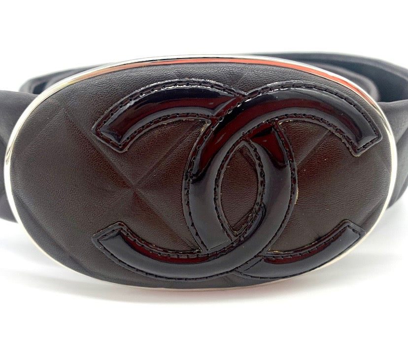 CHANEL CC INTERLOCKING BROWN LEATHER BELT