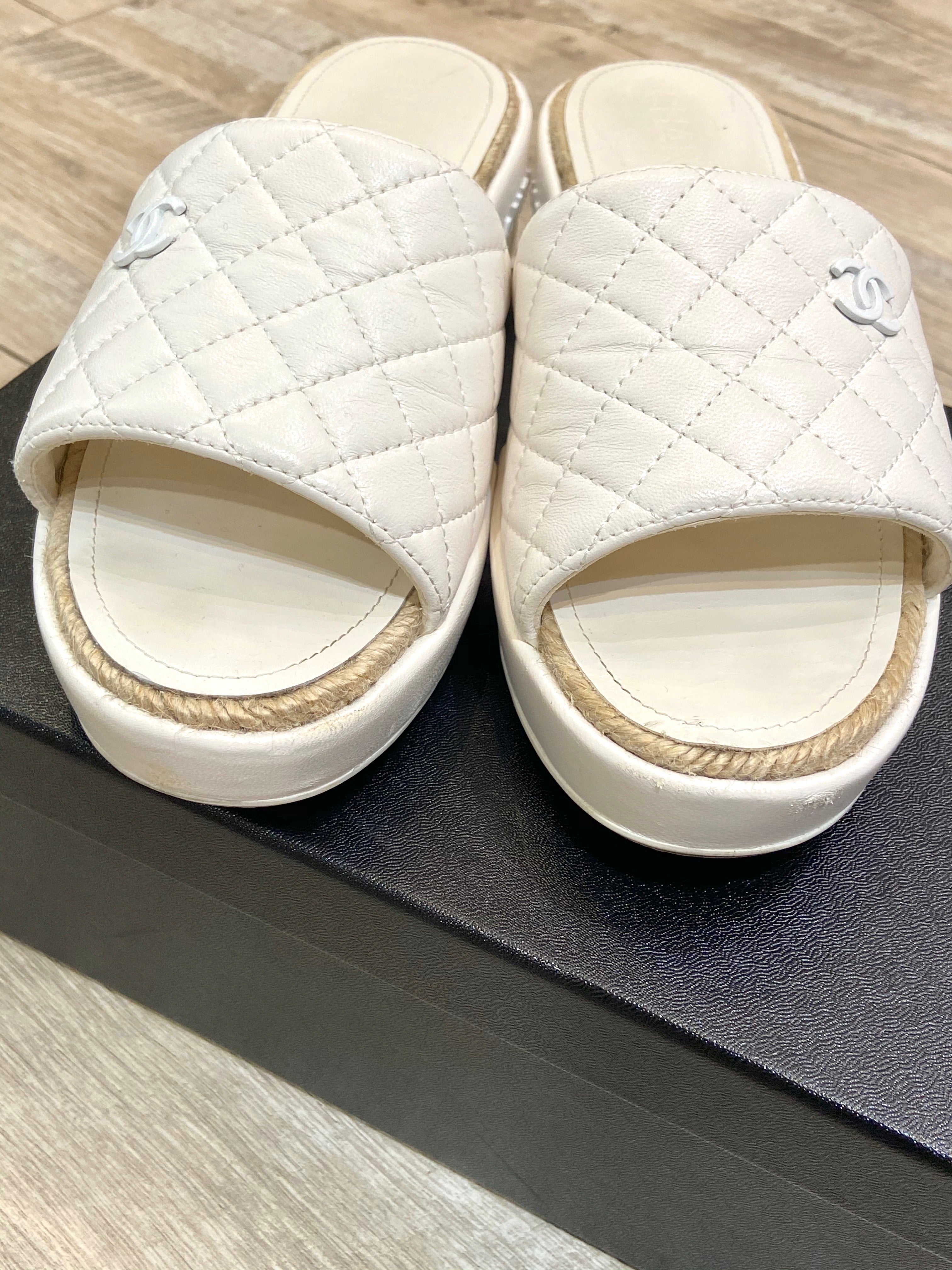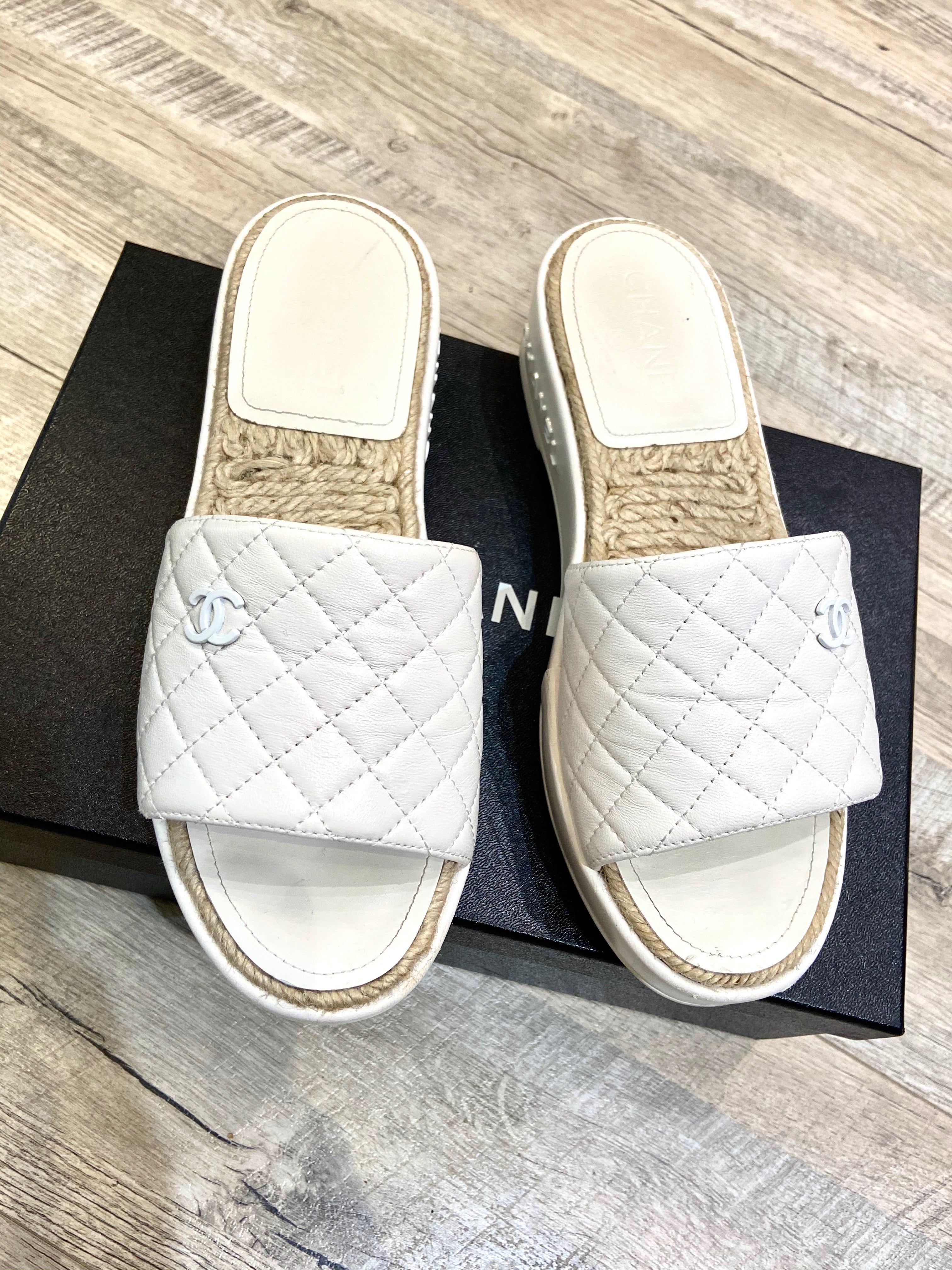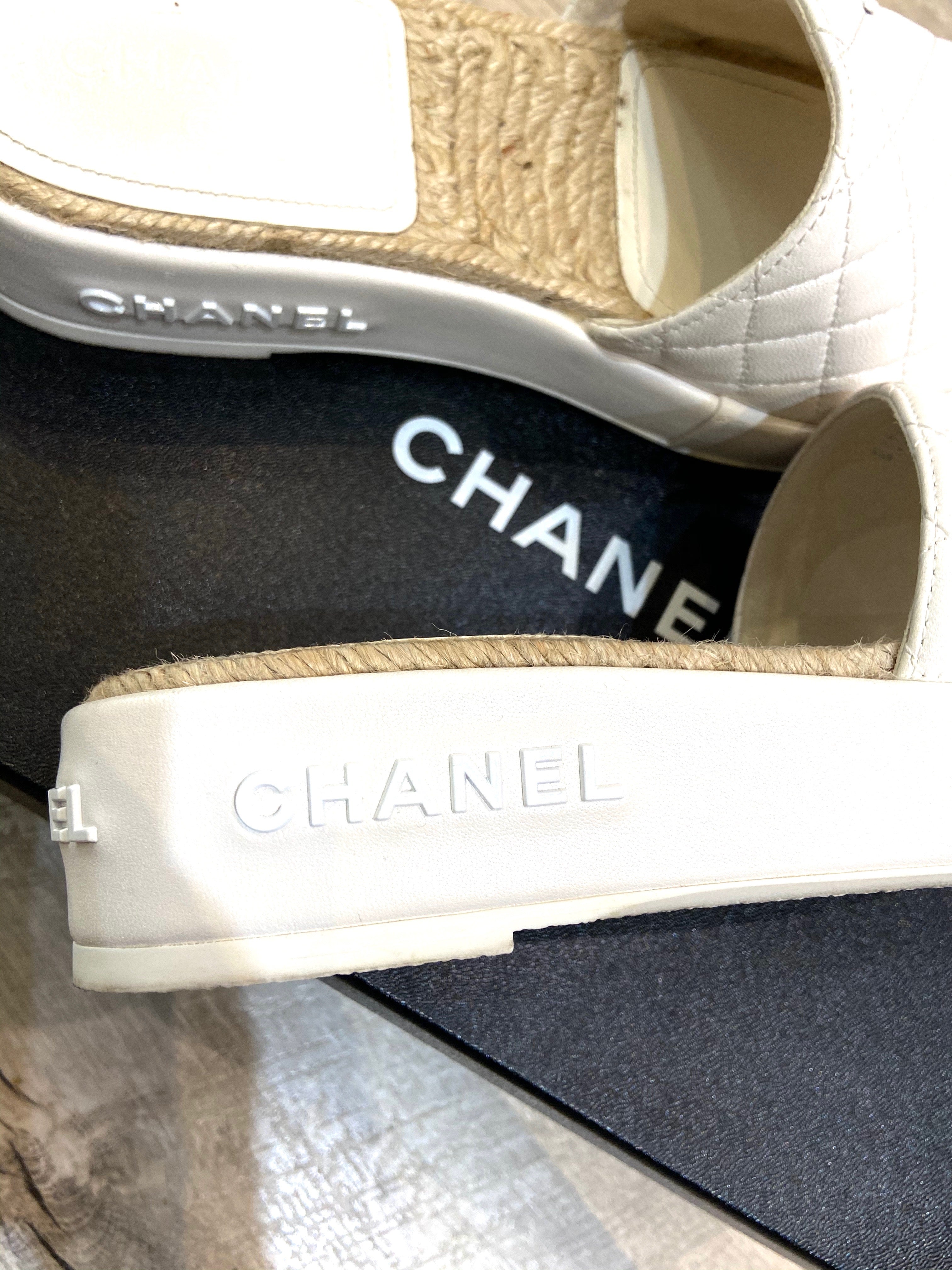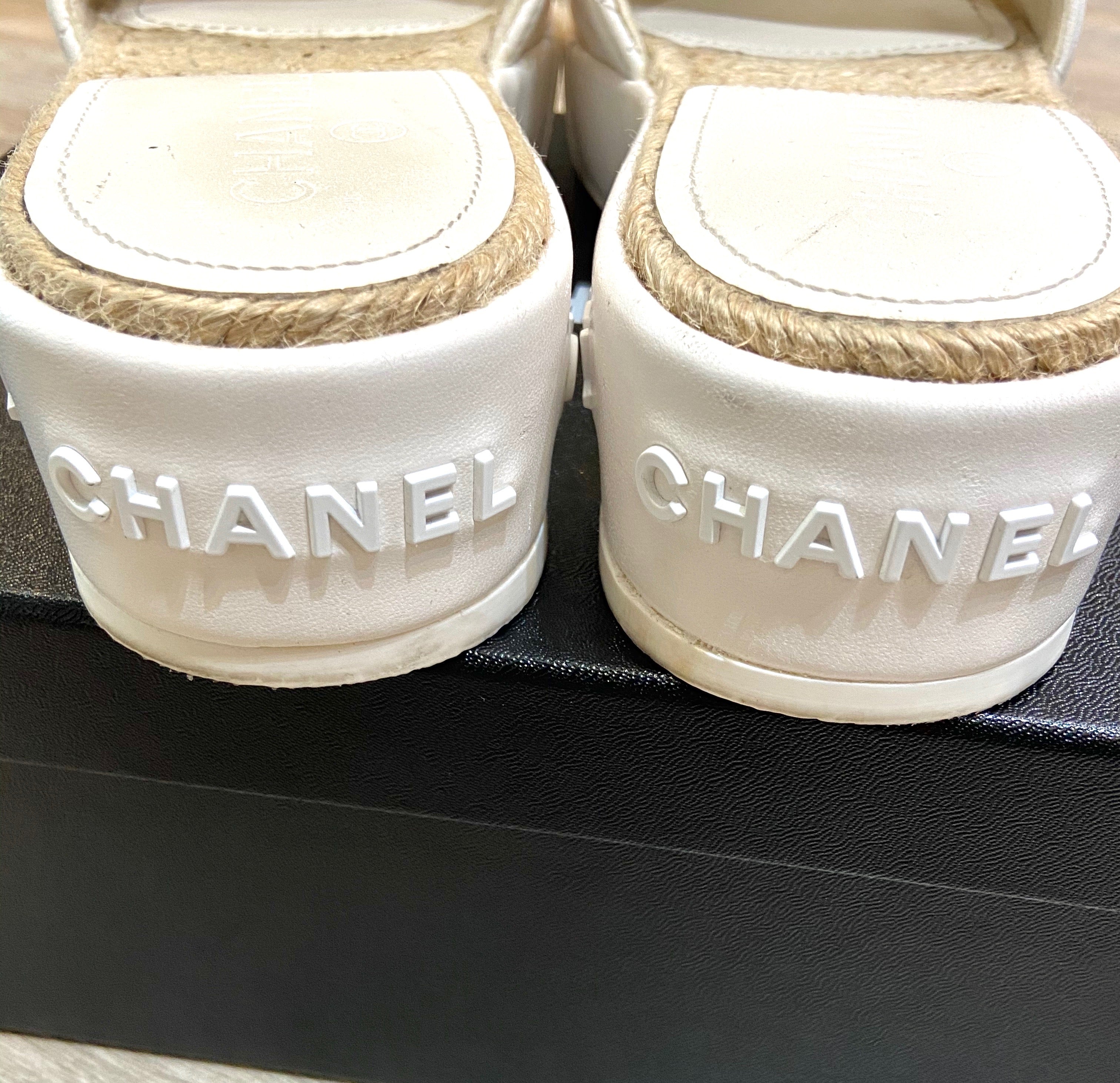 CHANEL CC LAMBSKIN LEATHER ESPADRILLE MULES