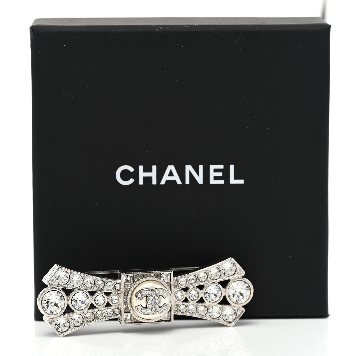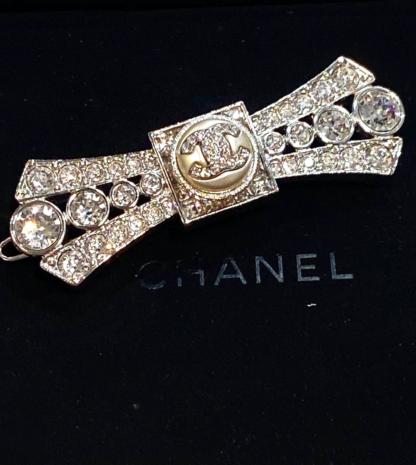 CHANEL CC LOGO CRYSTAL BOW BROOCH HAIR PINCHANEL CC LOGO CRYSTAL BOW BROOCH HAIR PIN