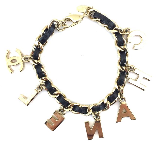 Chanel’s name echoes worldwide, equally famous on every continent. Evoking that popularity is the logo lettering on this chain-link bracelet from the brand, crafted from gold-plated & black leather hardware.