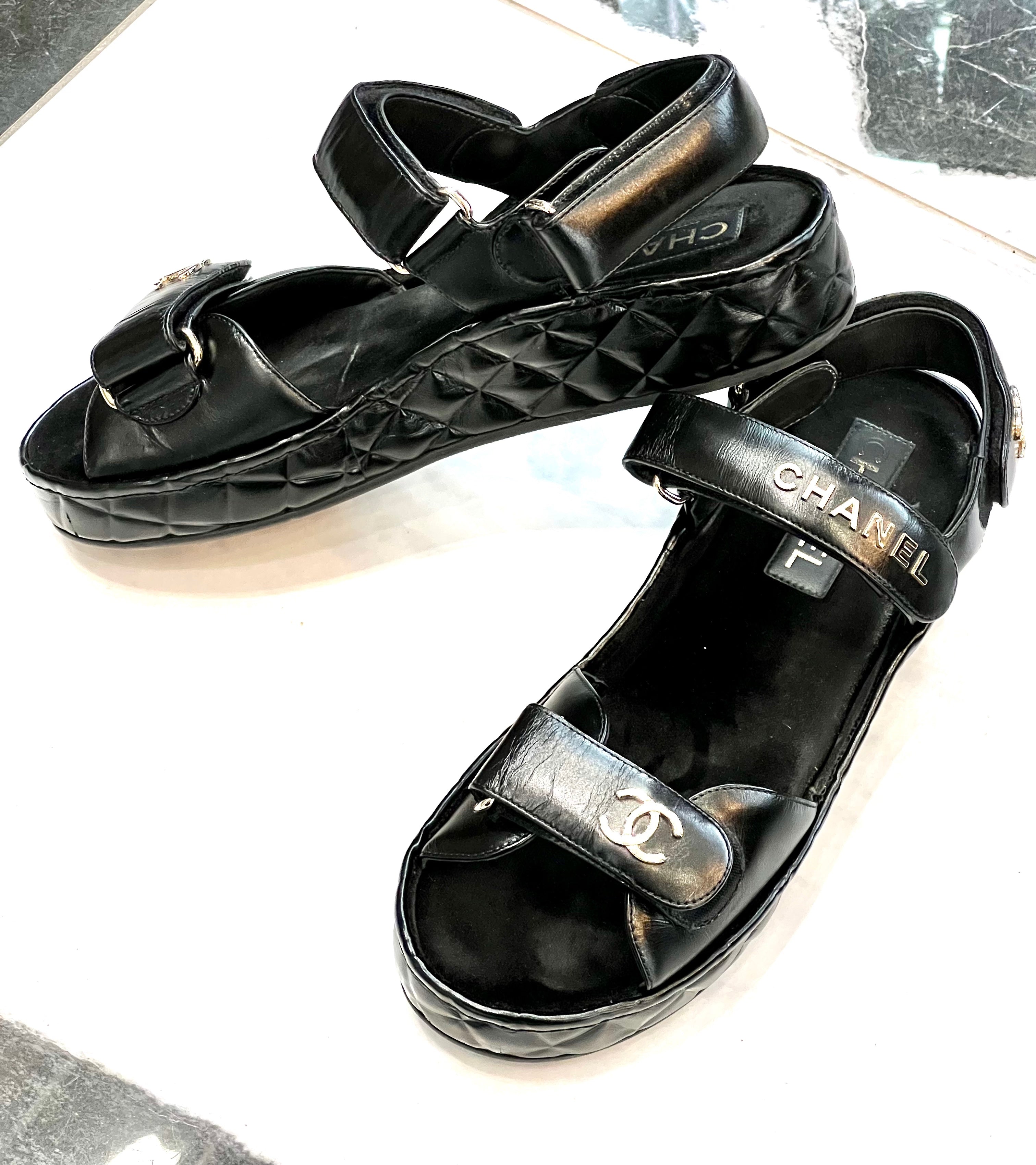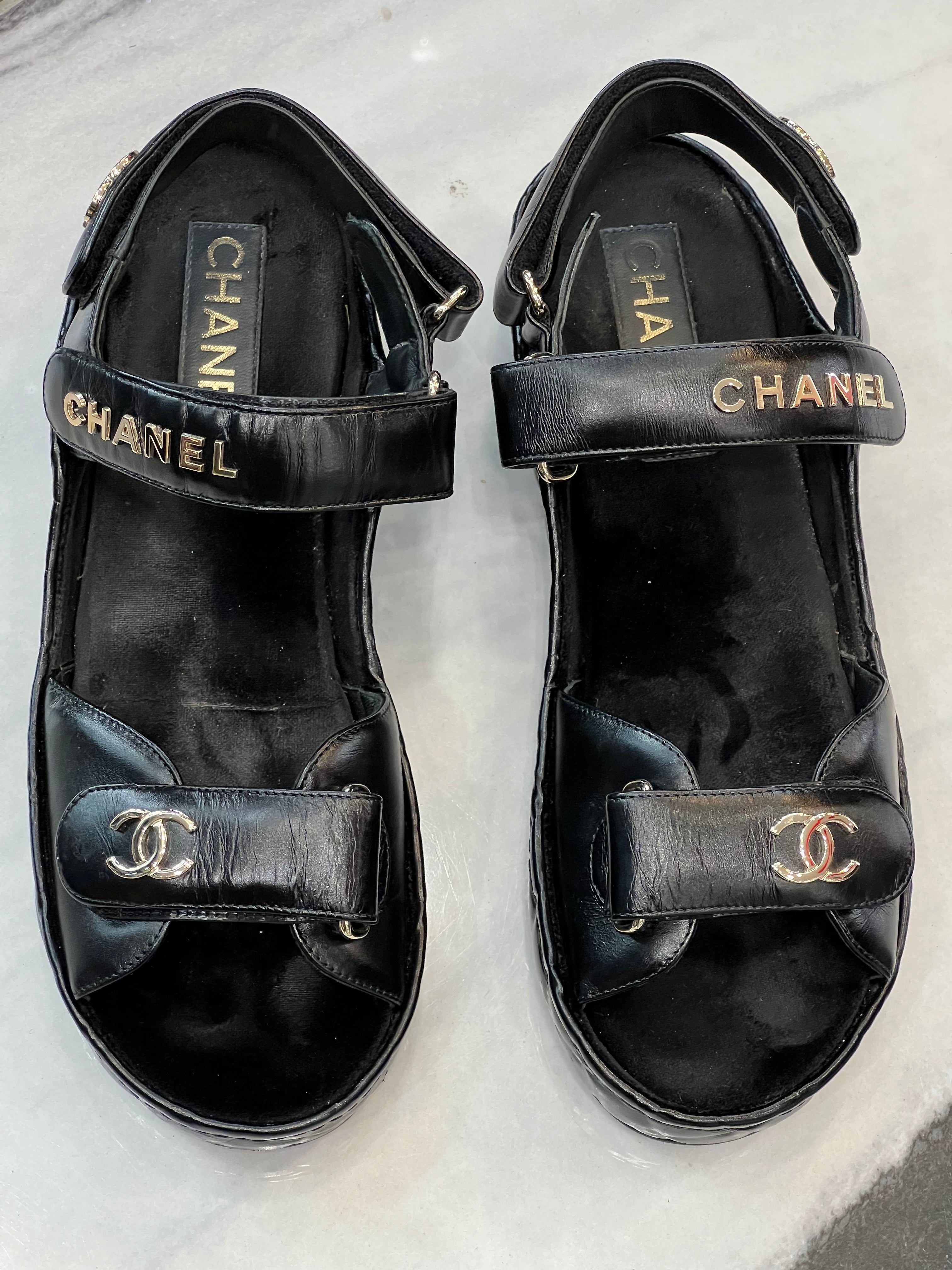 CHANEL CC LOGO VELCRO STRAP SANDALSCHANEL CC LOGO VELCRO STRAP SANDALS
