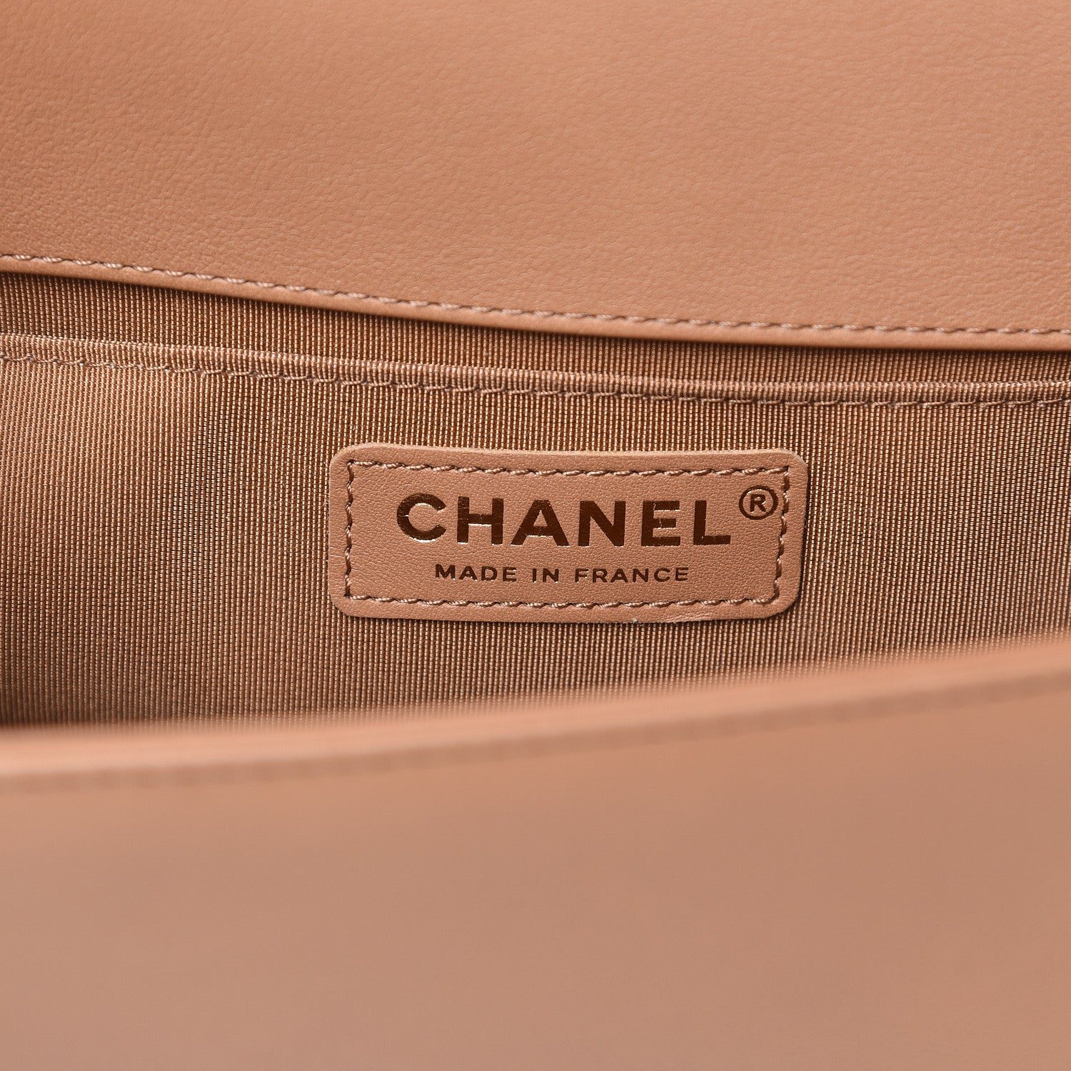 CHANEL Calfskin Chevron Quilted Medium Boy Flap in Peach.