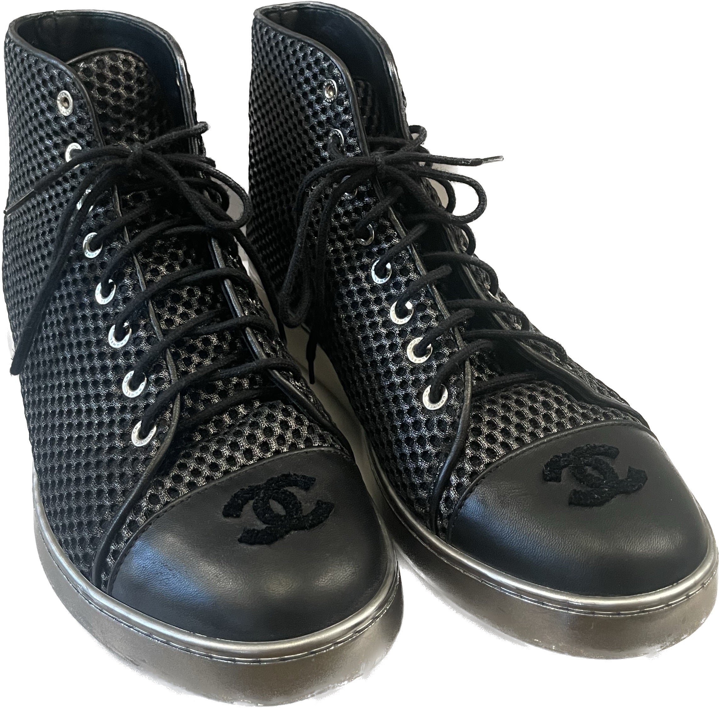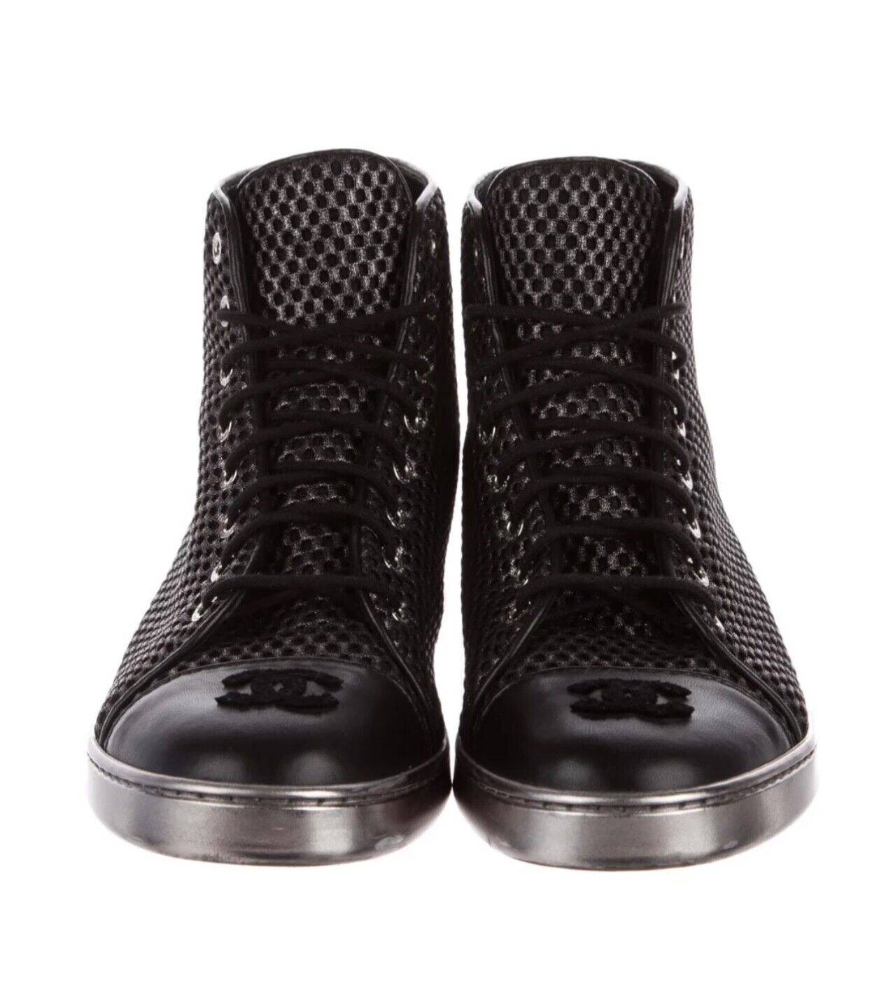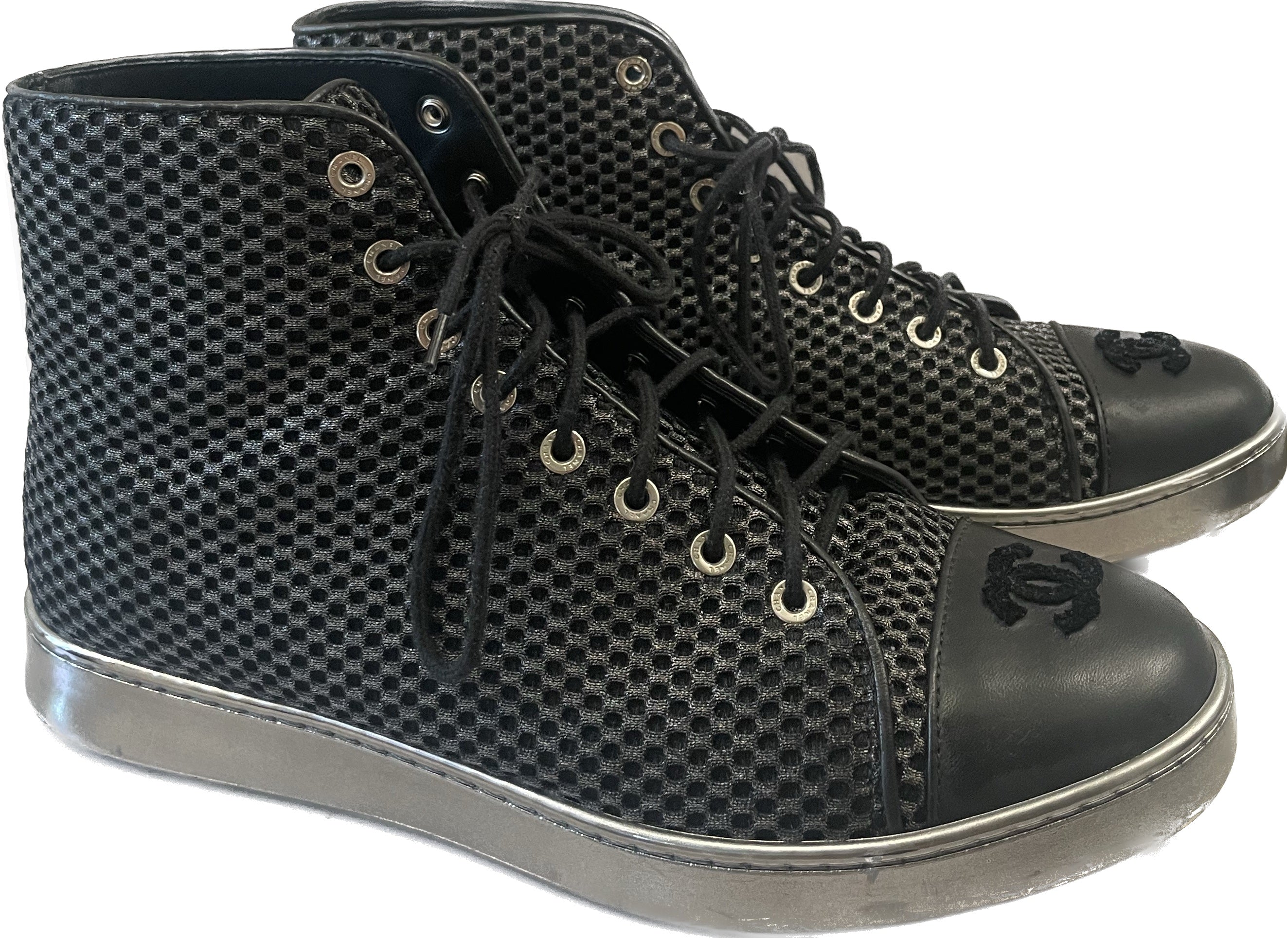 CHANEL CC METALLIC MESH LAMBSKIN HIGH-TOP SNEAKERSCHANEL CC METALLIC MESH LAMBSKIN HIGH-TOP SNEAKERS