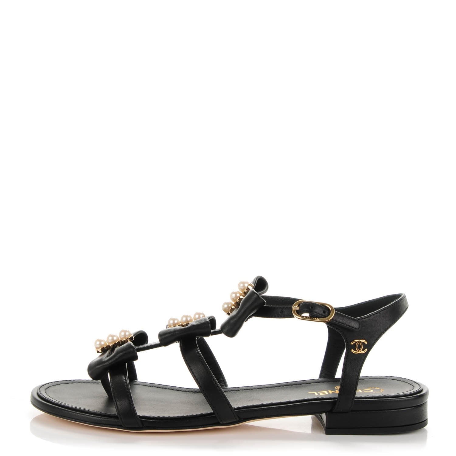 CHANEL CC PEARL BOW GLADIATOR SANDALSCHANEL CC PEARL BOW GLADIATOR SANDALS