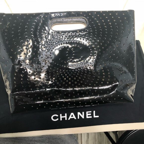 CHANEL CC PERFORATED PATENT CLUTCH BAG