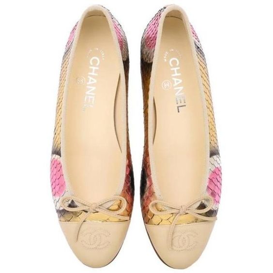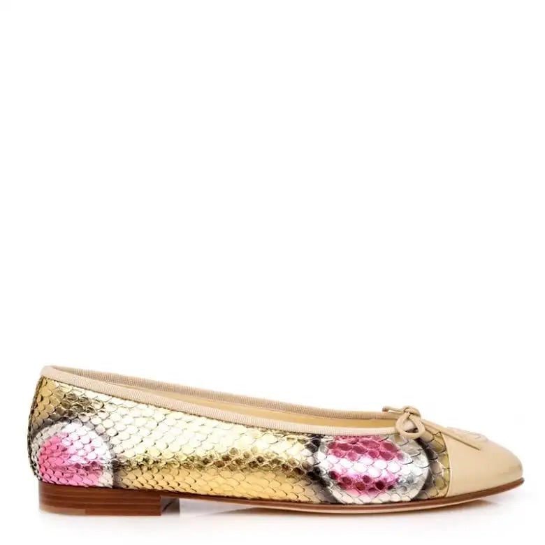 CHANEL Shiny Multicolor Python and Leather Ballerinas Flats.