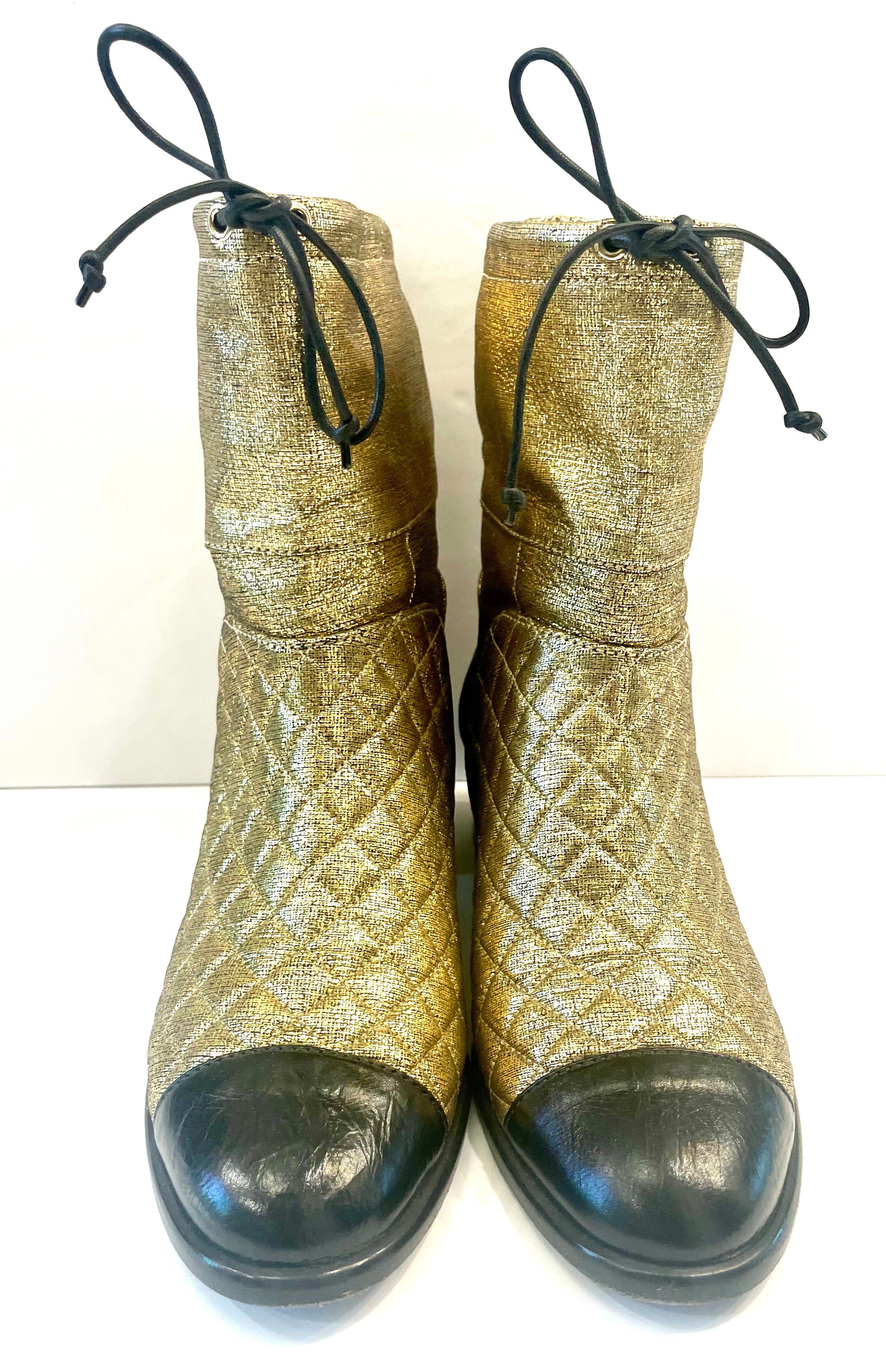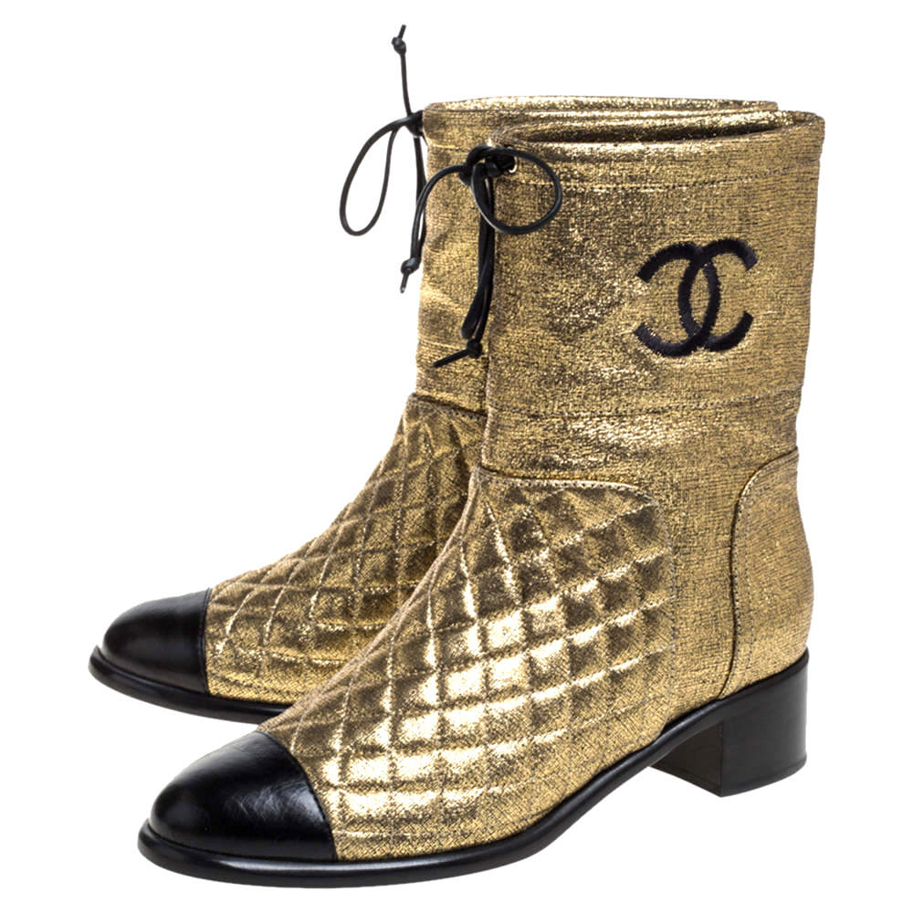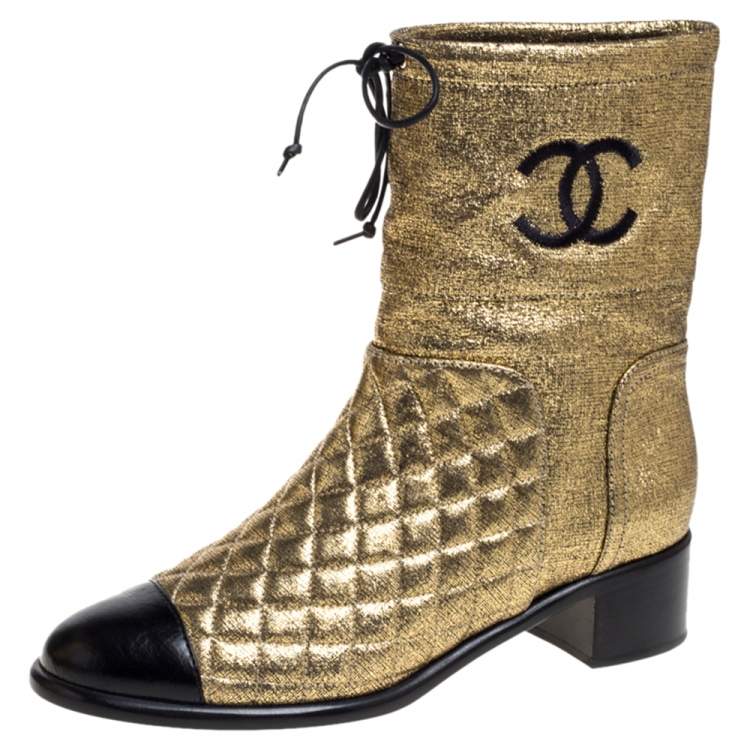 CHANEL CC QUILTED METALLIC GOLD LEATHER ANKLE BOOTS