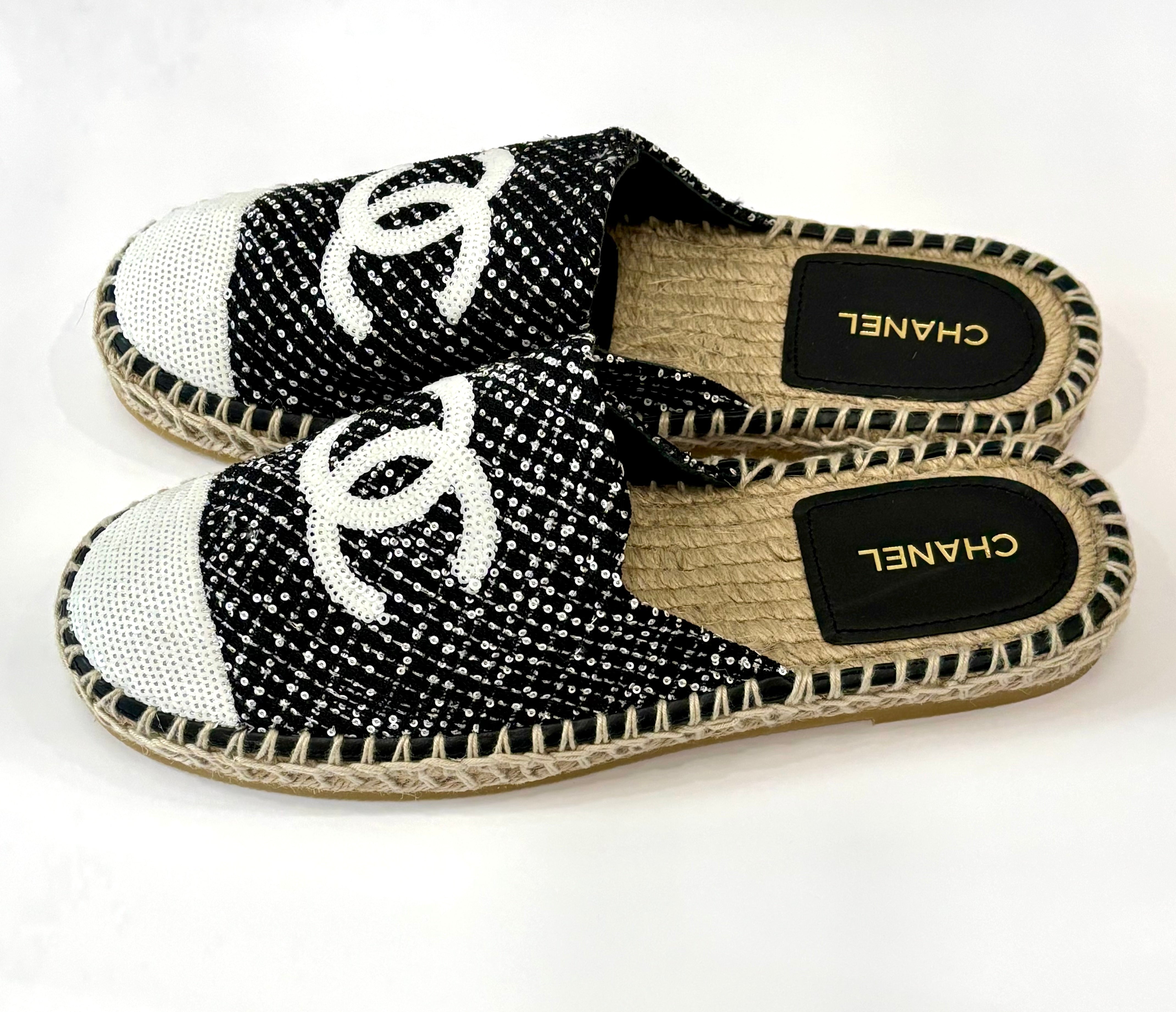 CHANEL CC SEQUIN MULE ESPADRILLES