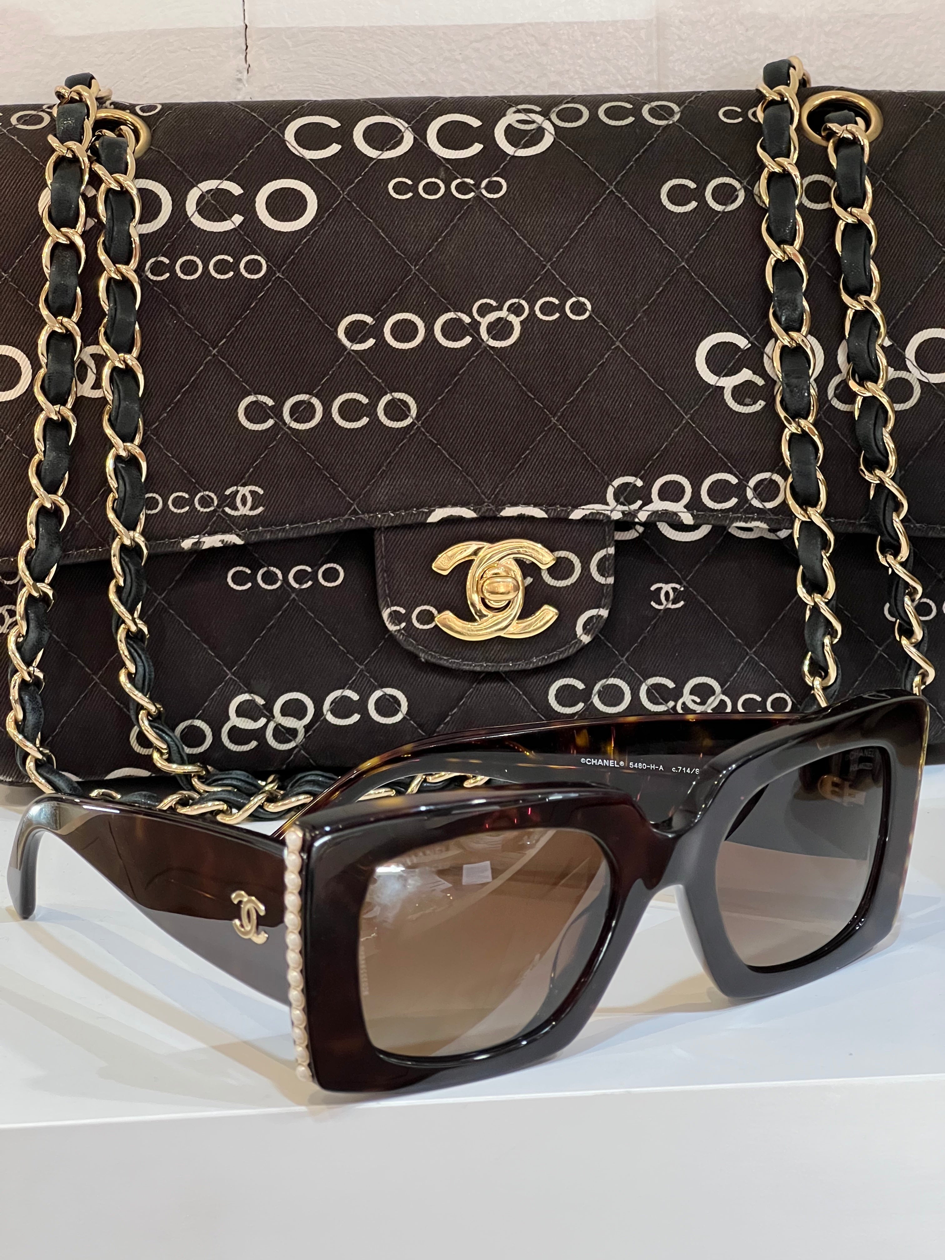 CHANEL CC SQUARE SUNGLASSES WITH FAUX PEARLS