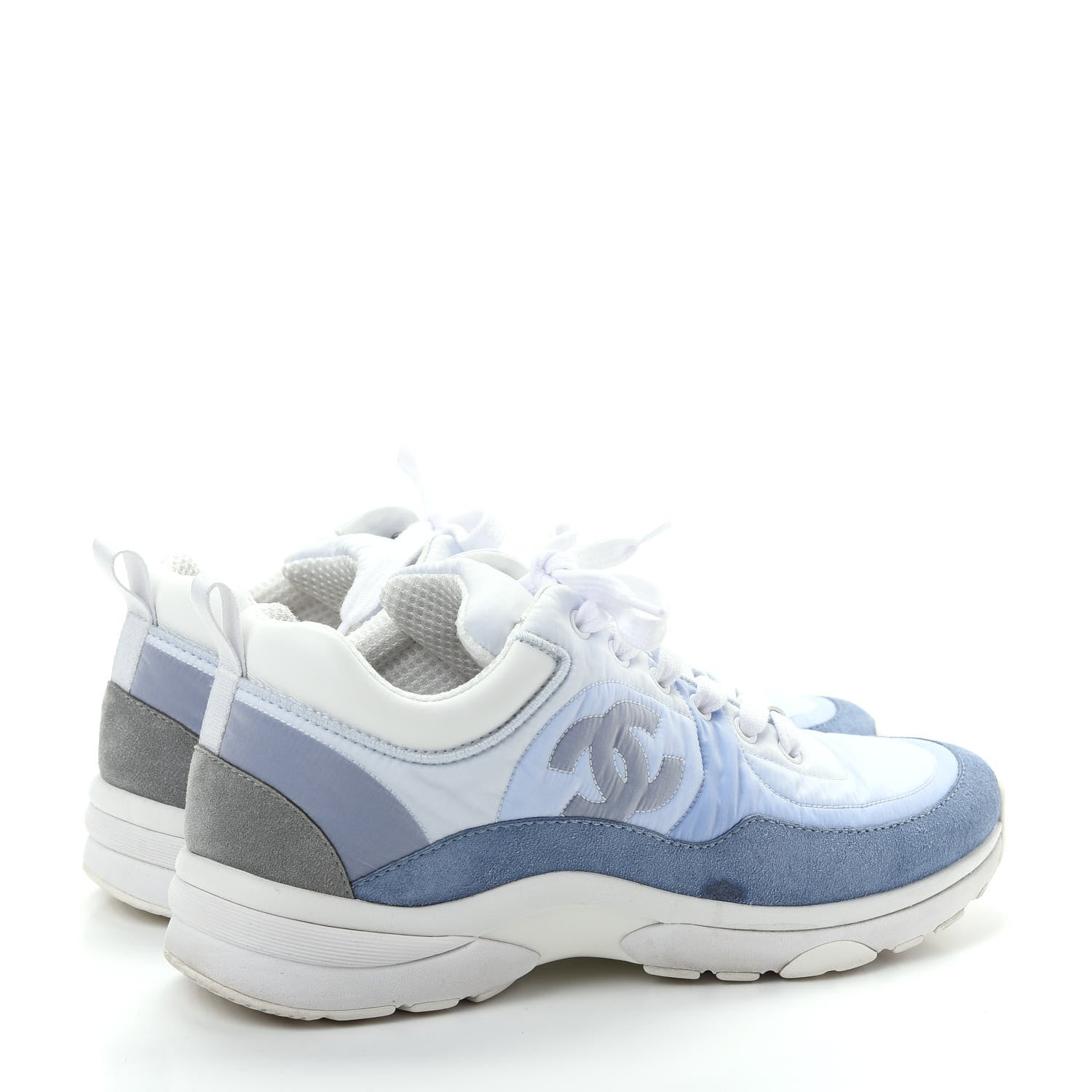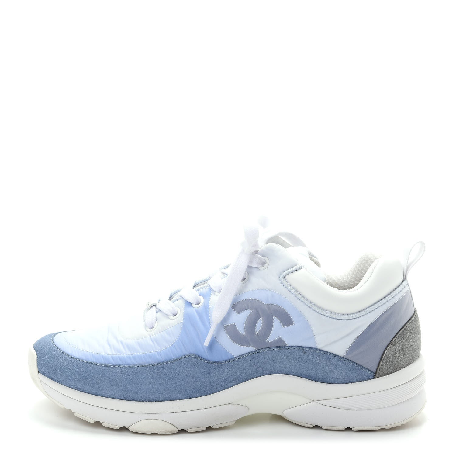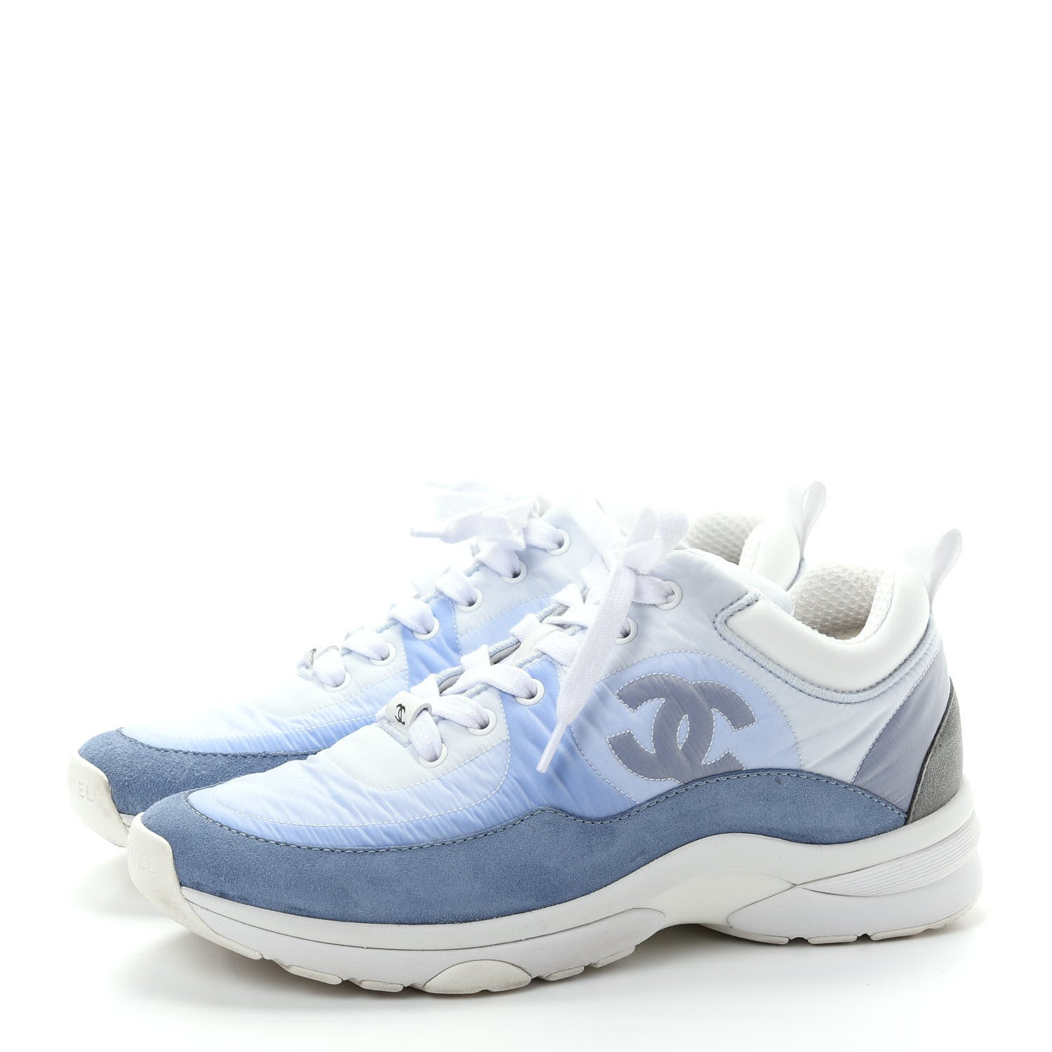 CHANEL CC SUEDE CALFSKIN NYLON SNEAKERS IN SKY BLUE