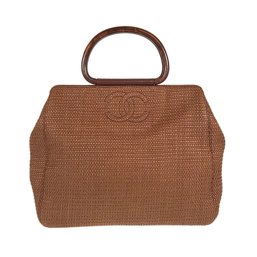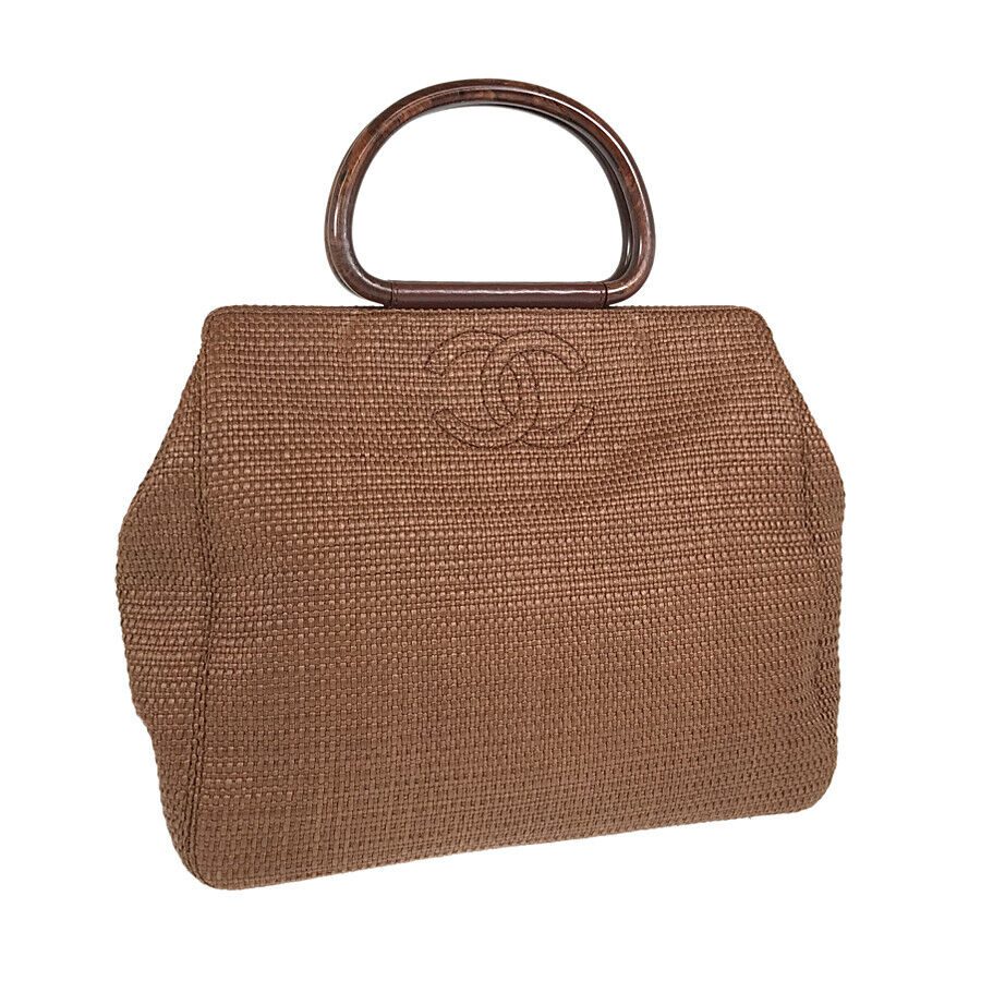 CHANEL CC VINTAGE WOVEN RAFFIA HANDBAGCHANEL CC VINTAGE WOVEN RAFFIA HANDBAG