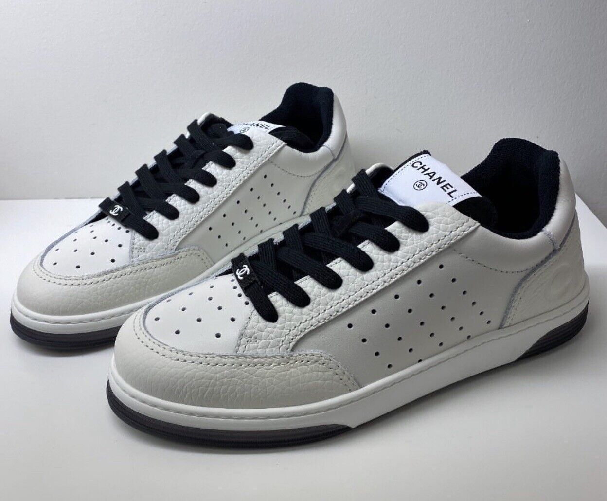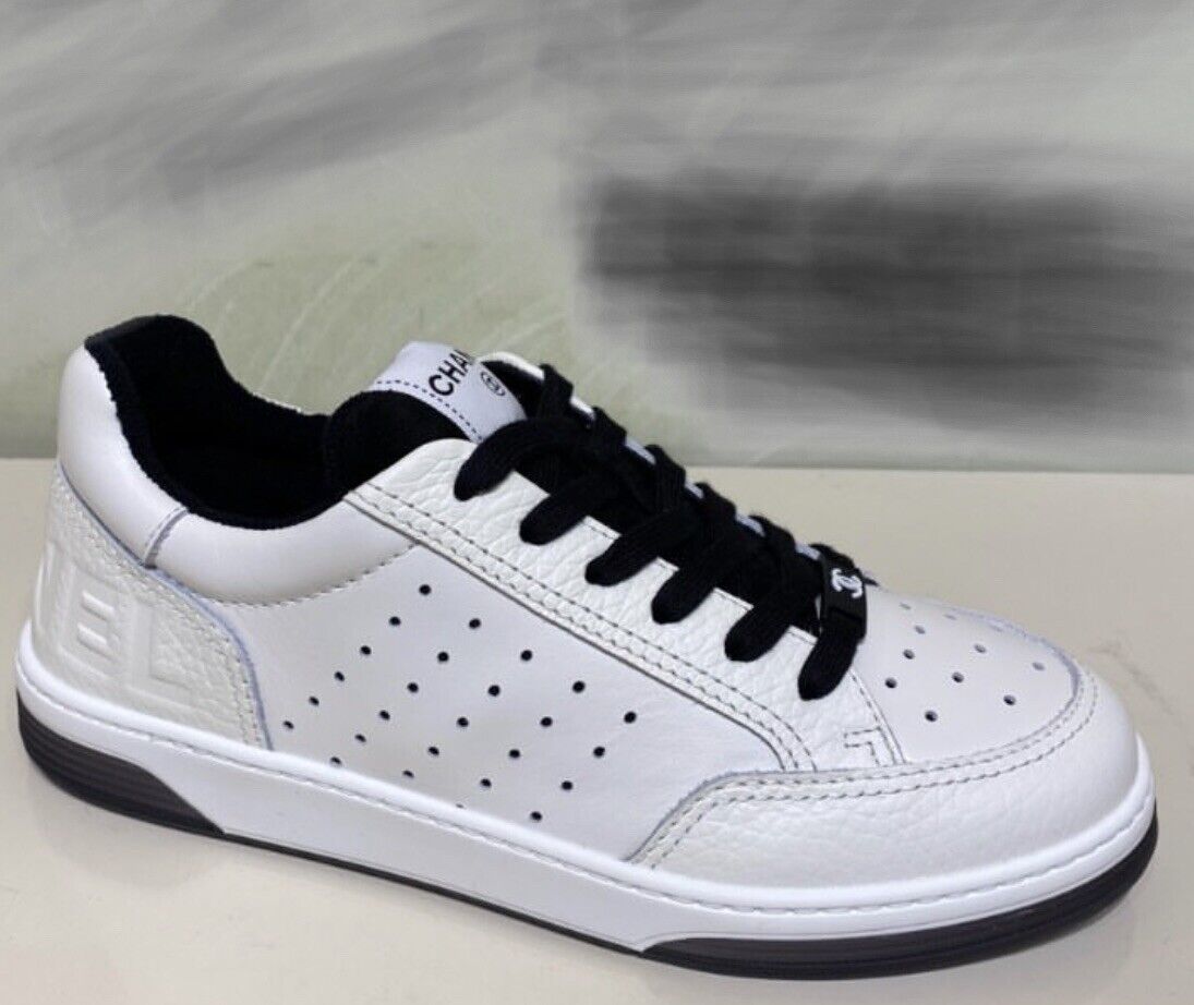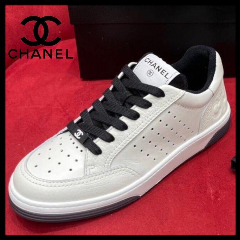 CHANEL CC WHITE LEATHER TRAINER SNEAKERS