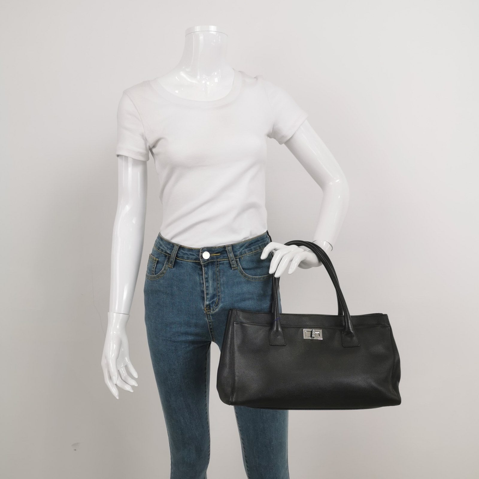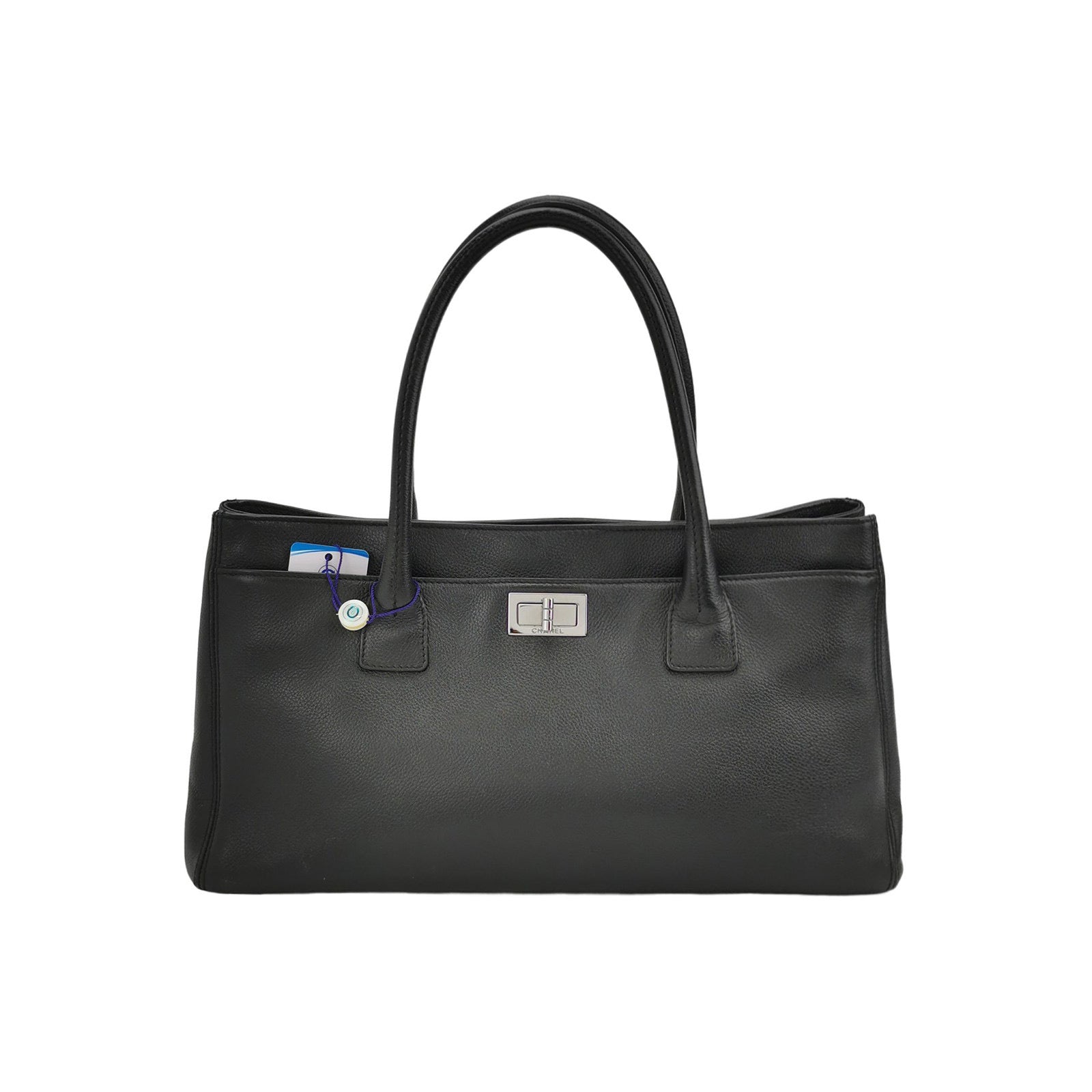 The iconic Chanel Cerf tote was introduced in 2005 as a timeless addition to Chanel’s classic collection. Crafted from high quality caviar leather in black color, featuring elongated leather top handles, a silver Mademoiselle turn lock, this bag exudes simplicity and sophistication. Its structured design ensures a distinctive appearance, making it the perfect accessory for both formal and casual attire.