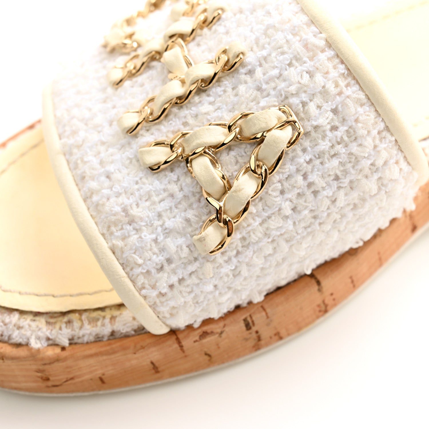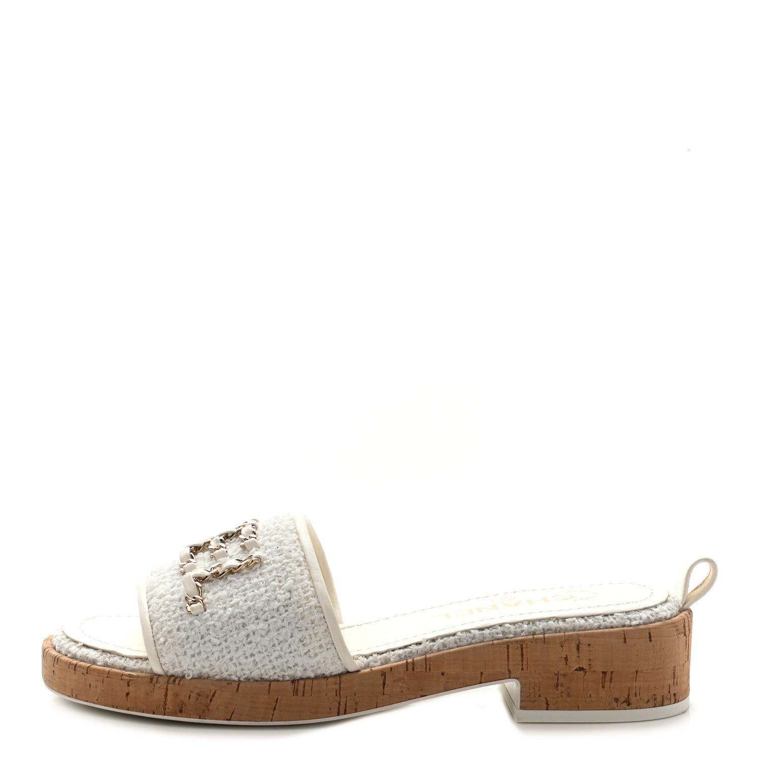 CHANEL CHAIN LINK CHA NEL TWEED CORK MULES
