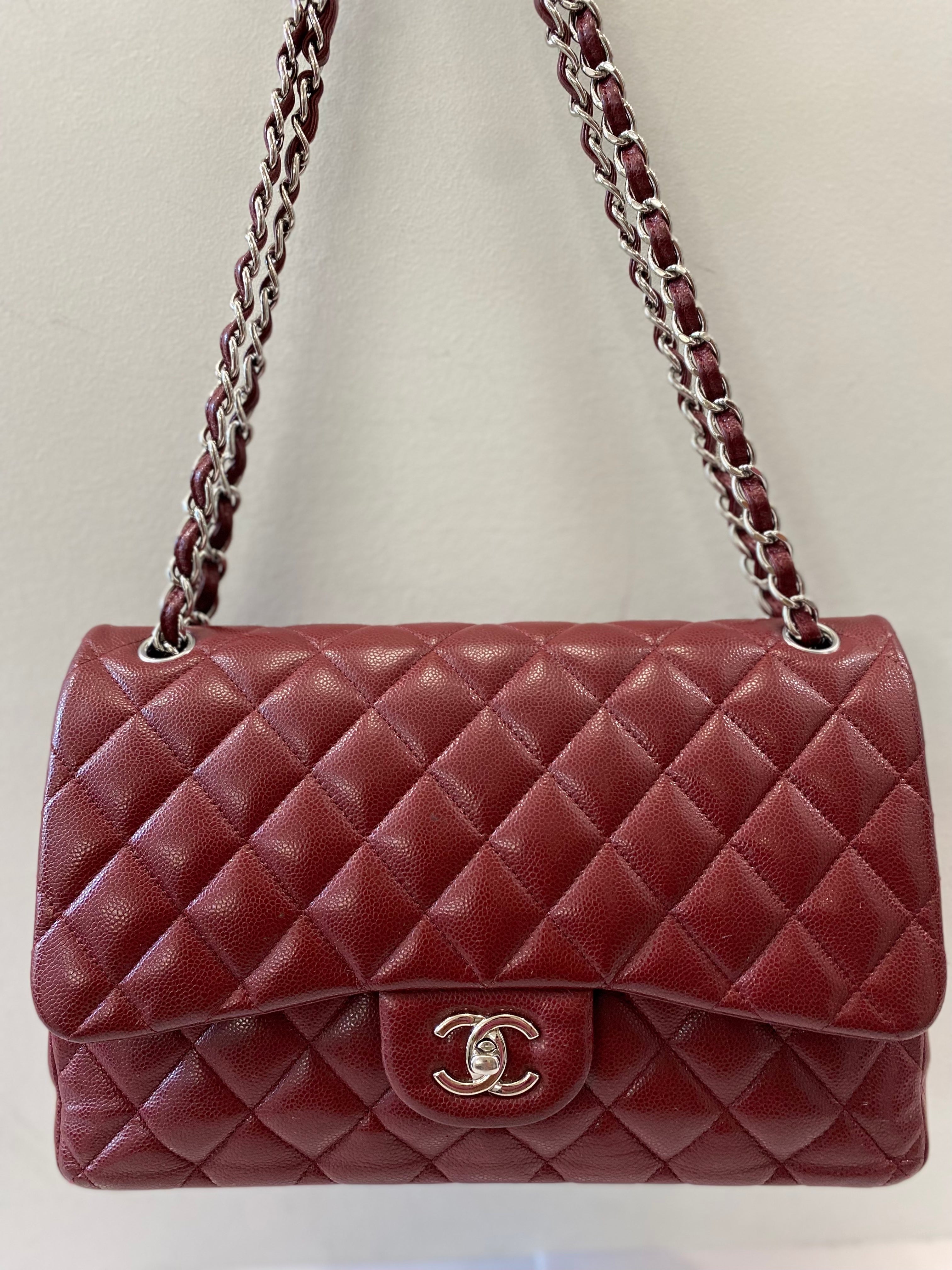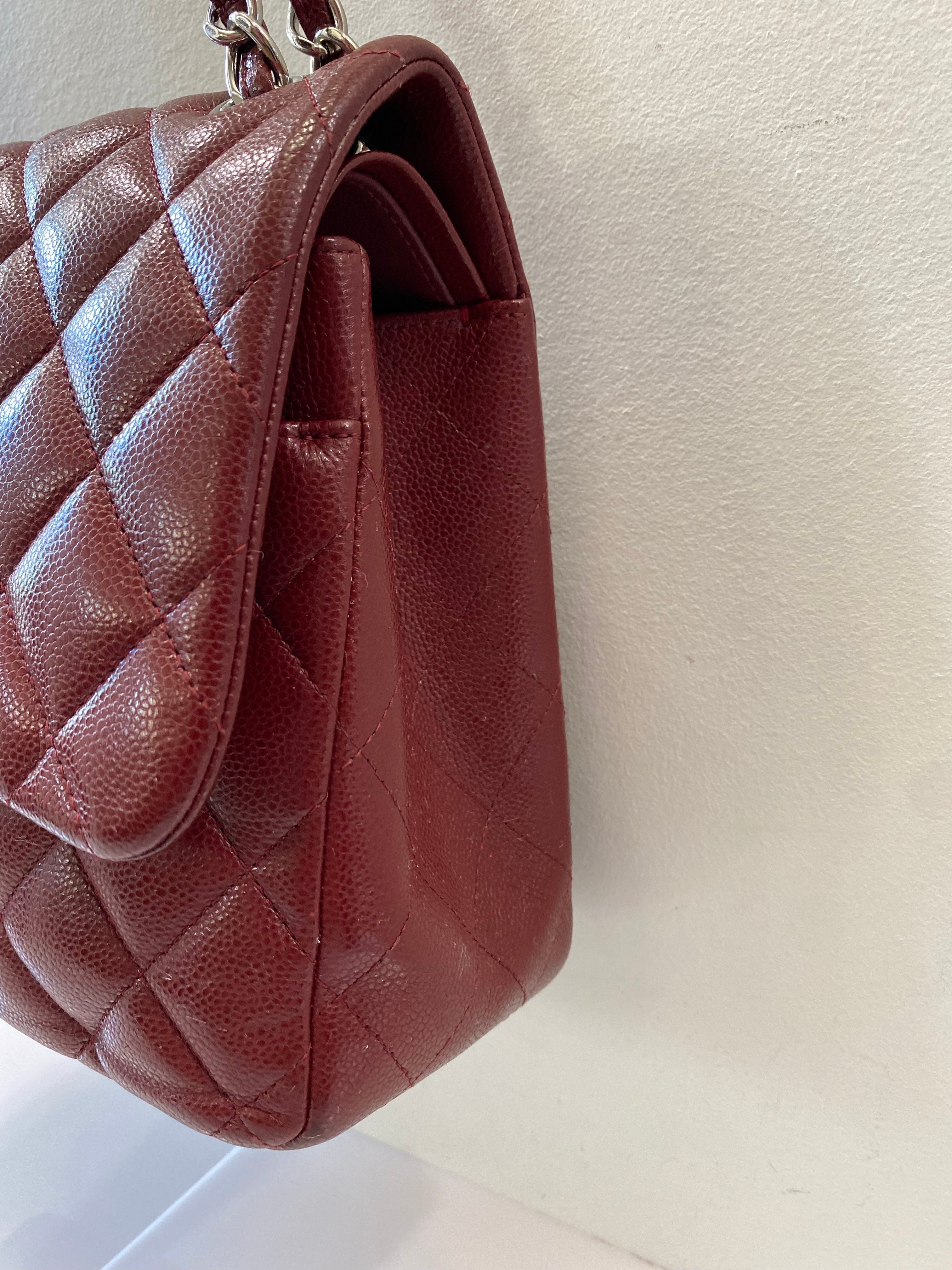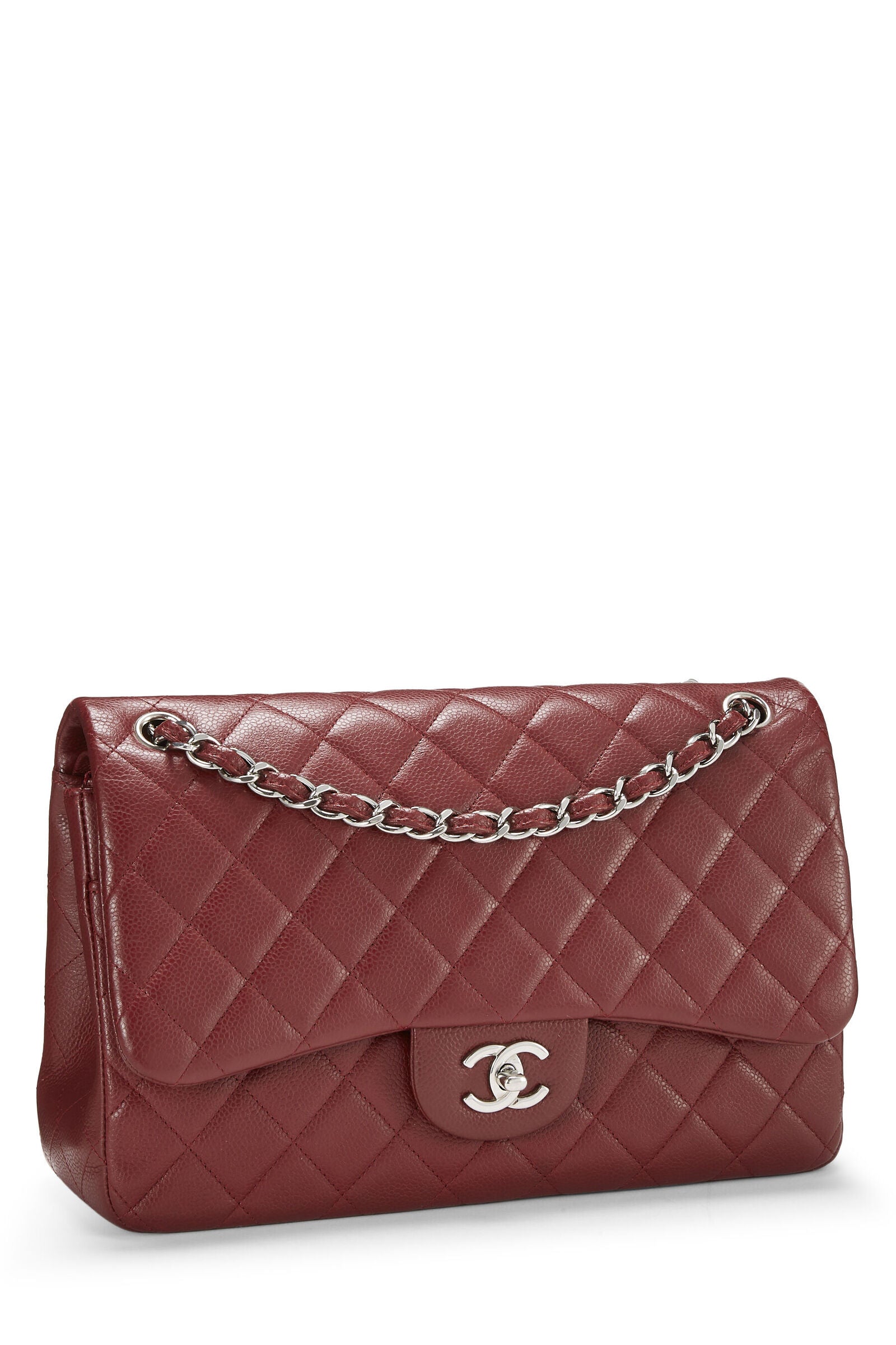 Stylish and spacious, the iconic Chanel Classic Double Flap shoulder bag is crafted in Burgundy quilted Caviar leather and accented with silver-tone ‘CC’ turnlock and chain hardware.