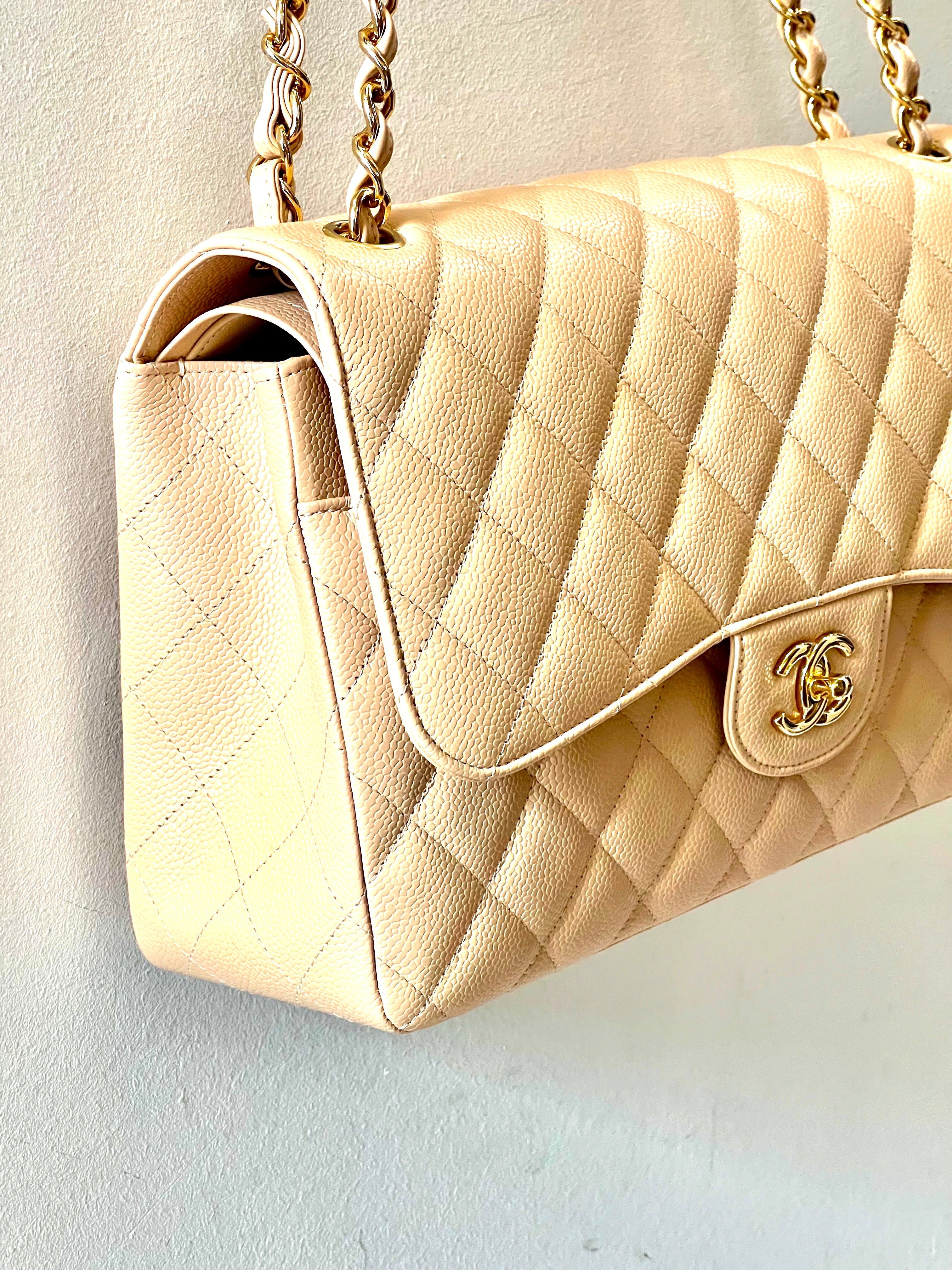 It is a timeless and versatile piece that can be dressed up or down and is suitable for any occasion. The Chanel Classic Caviar Quilted Lambskin Leather Jumbo Double Flap Bag is a true investment piece that will retain its value and style for years to come.