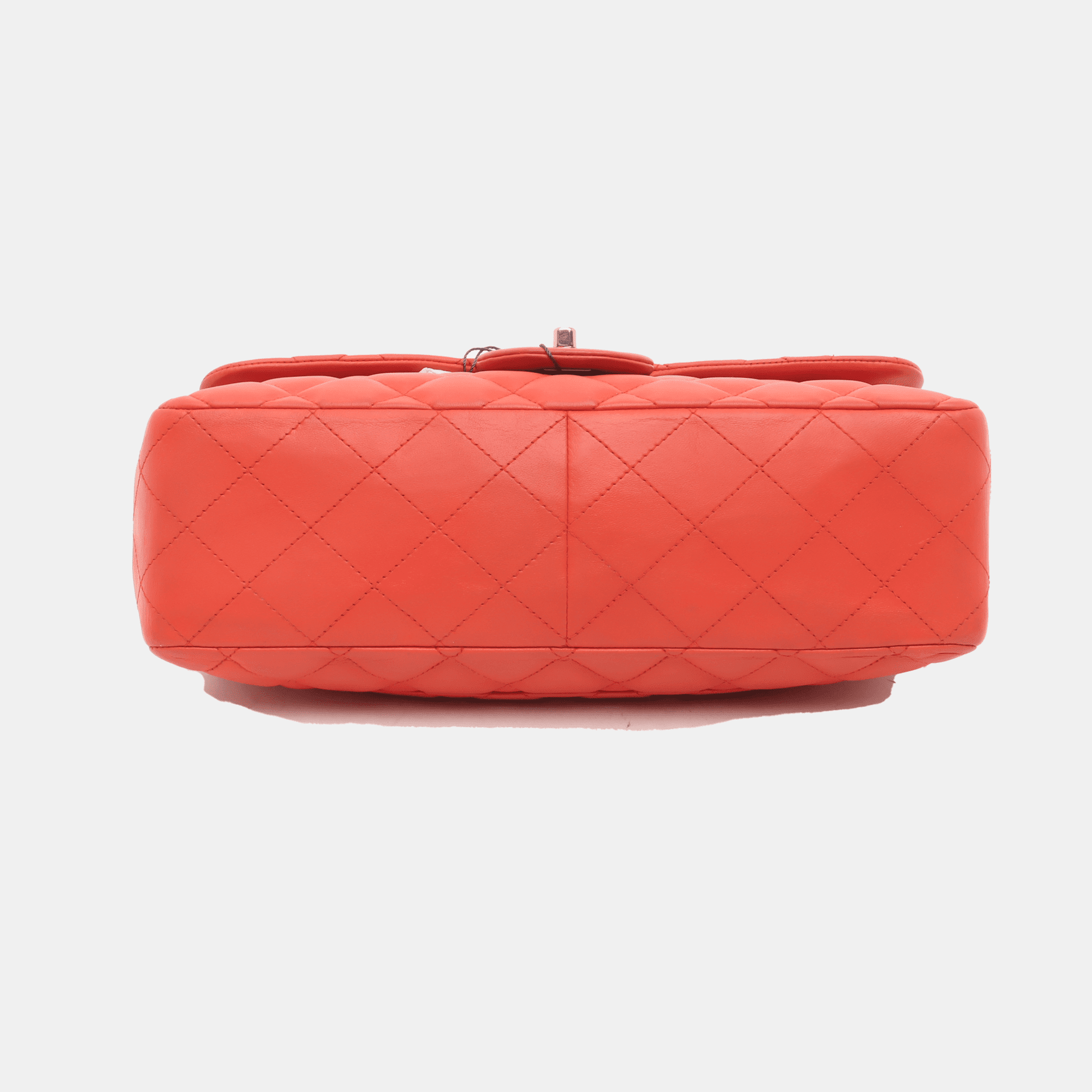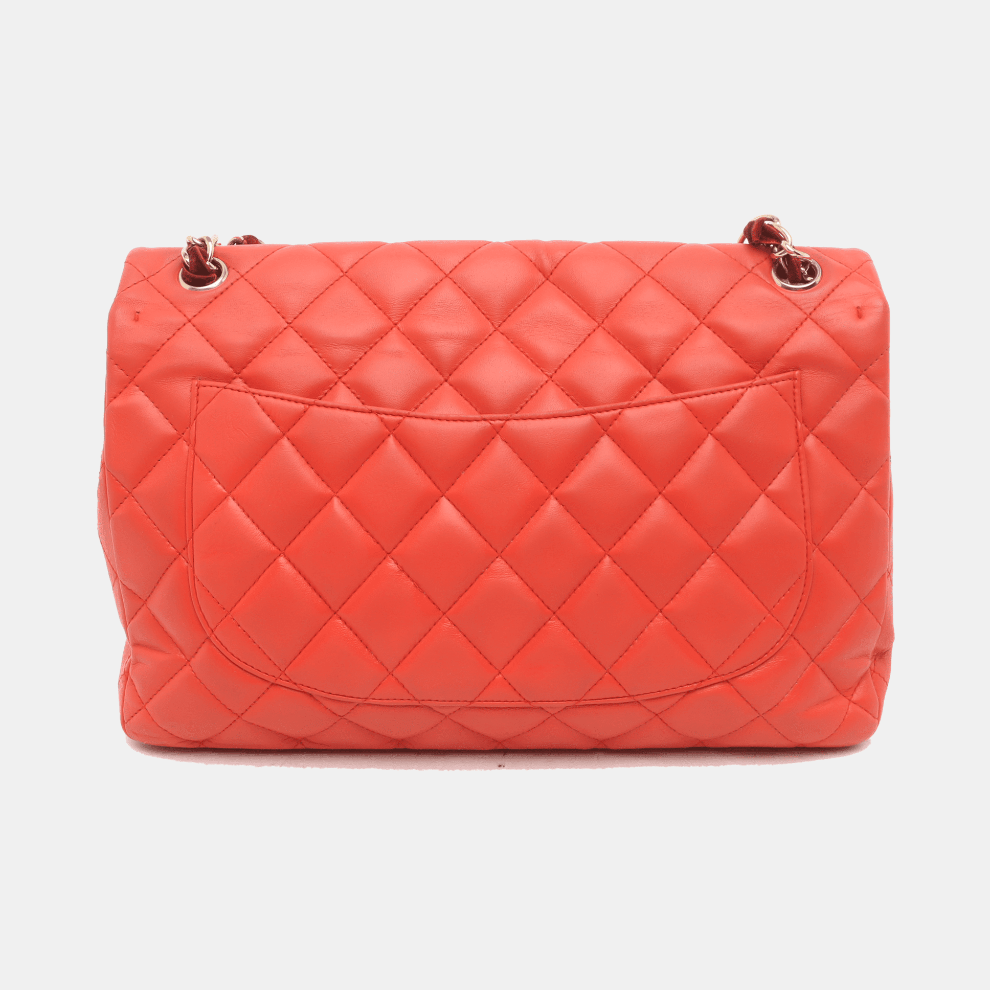 Introducing the Chanel Classic Flap Large Red Leather with Gold Hardware, an exquisite bag crafted from fine lambskin red leather with gleaming gold hardware. Showcasing a unique pop of color. Karl Lagerfeld signature on the inside flap.Â