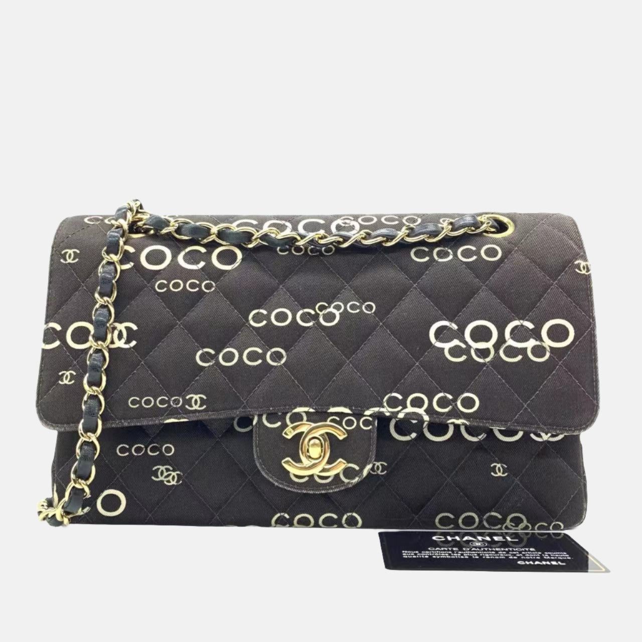 This charming Vintage Chanel Denim Shoulder Bag is a stylish mix of classy and casual. Its black denim with coco prints, 24k gold plated chain, and iconic Chanel logo make it a timeless piece that will always be in vogue! Grab it while you can and add a little retro chic to any outfit. #trendsetter