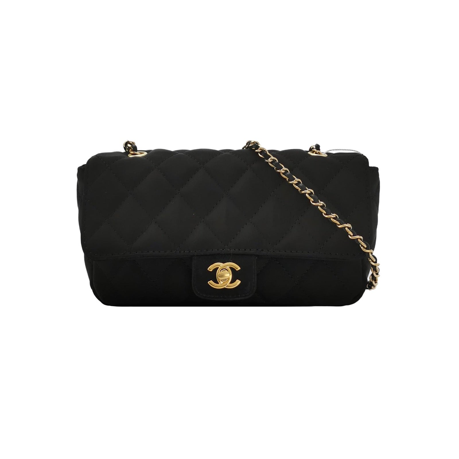 Chanel Classic Flap Extra Mini Black Silk Satin Quilted Gold-tone Hardware
