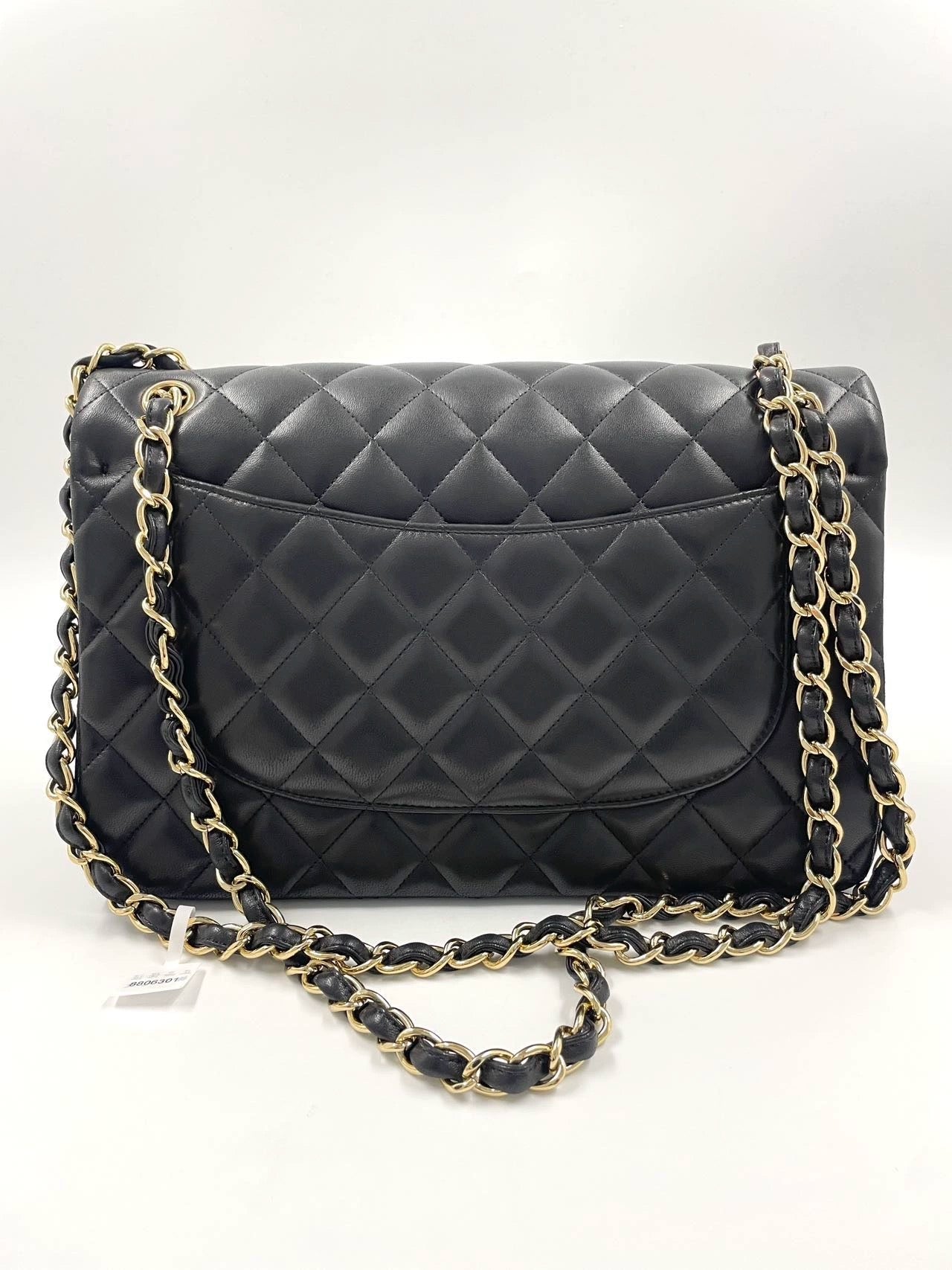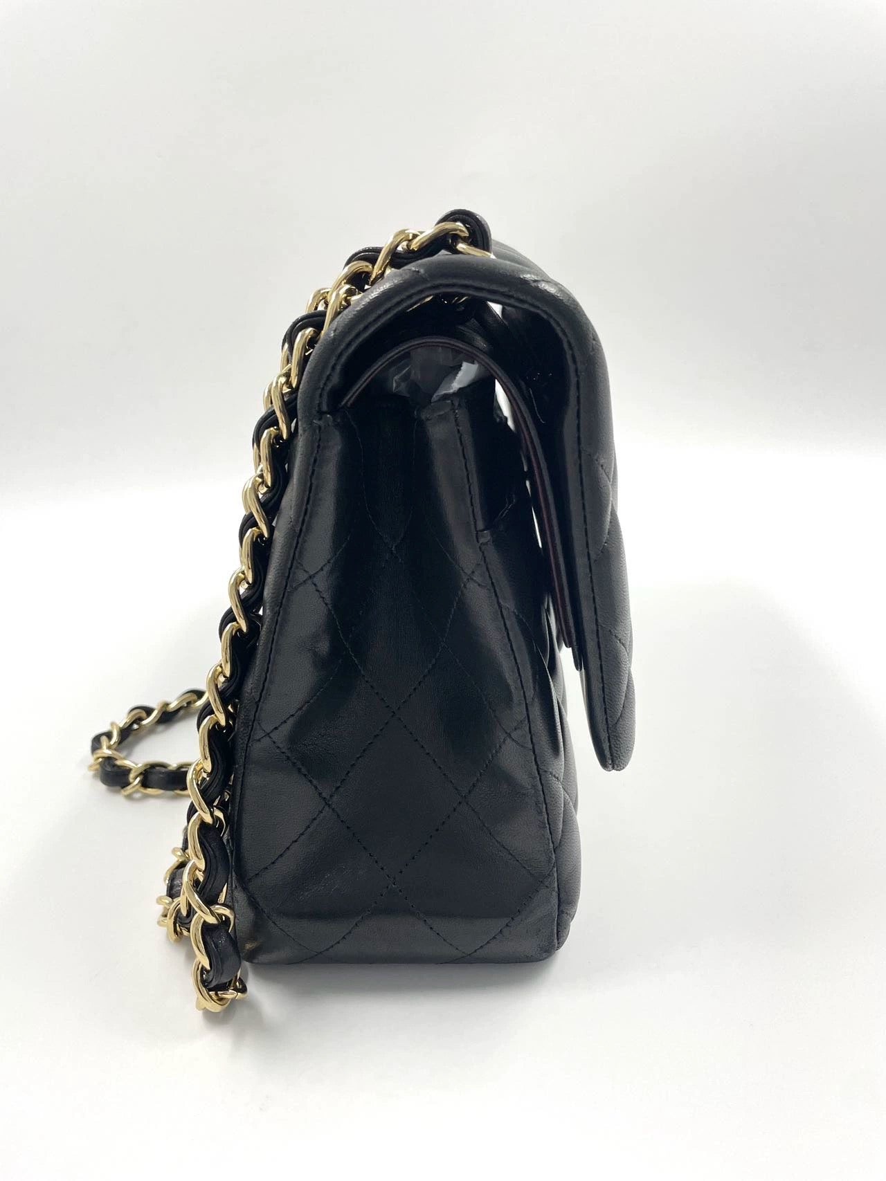 Embrace luxury with this timeless Chanel Classic Jumbo/Large Flap bag crafted in a luxurious black leather and finished with gleaming gold hardware.Â