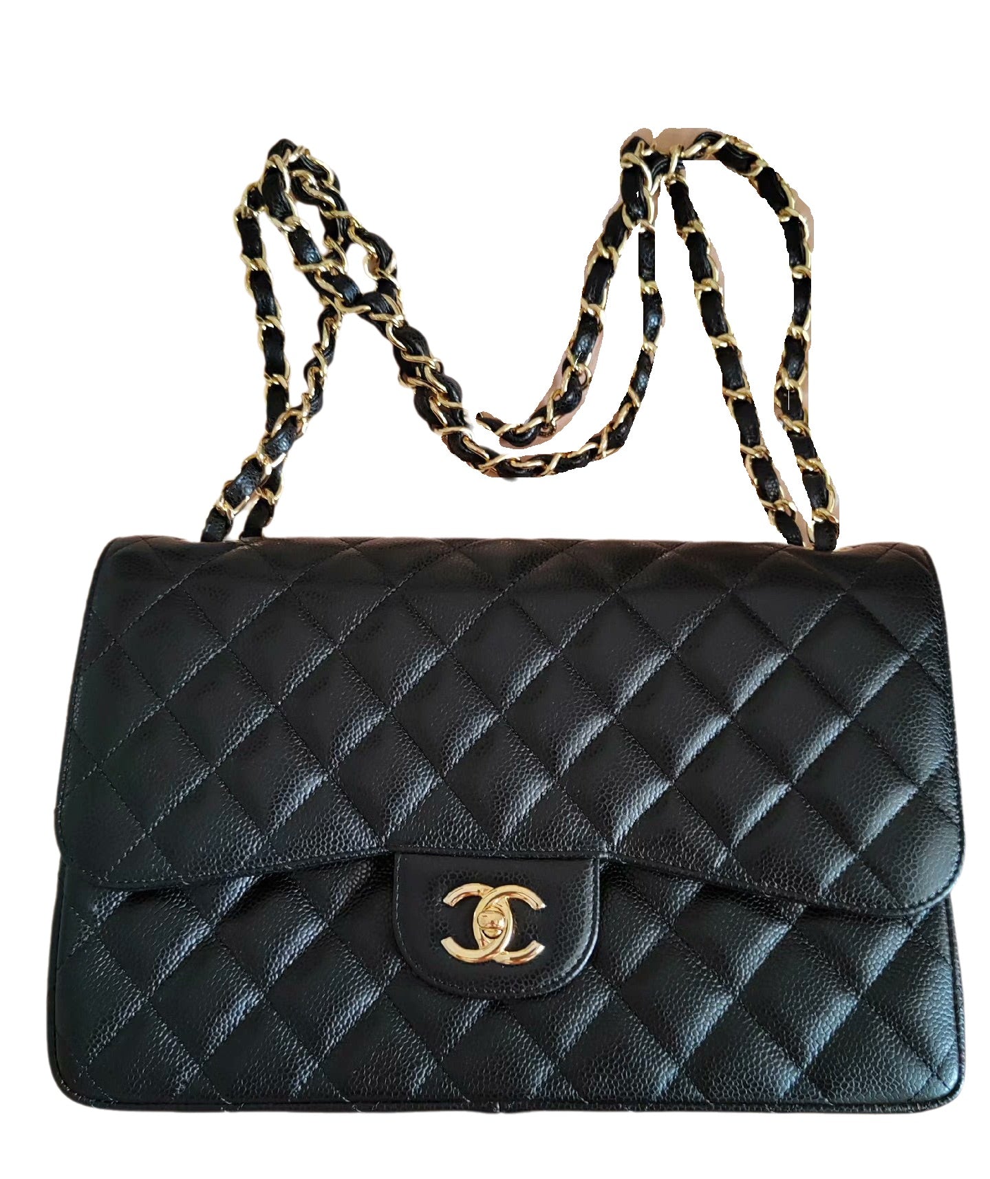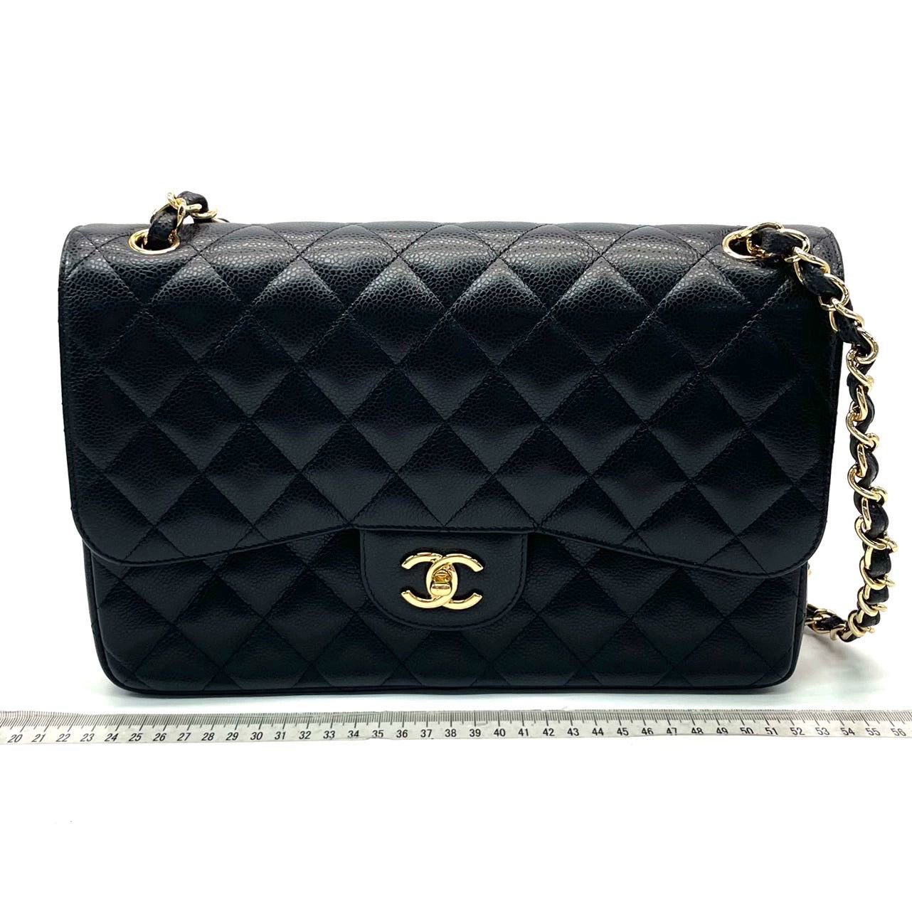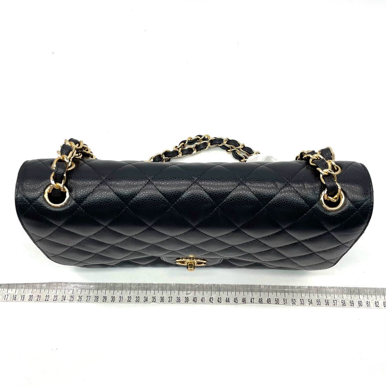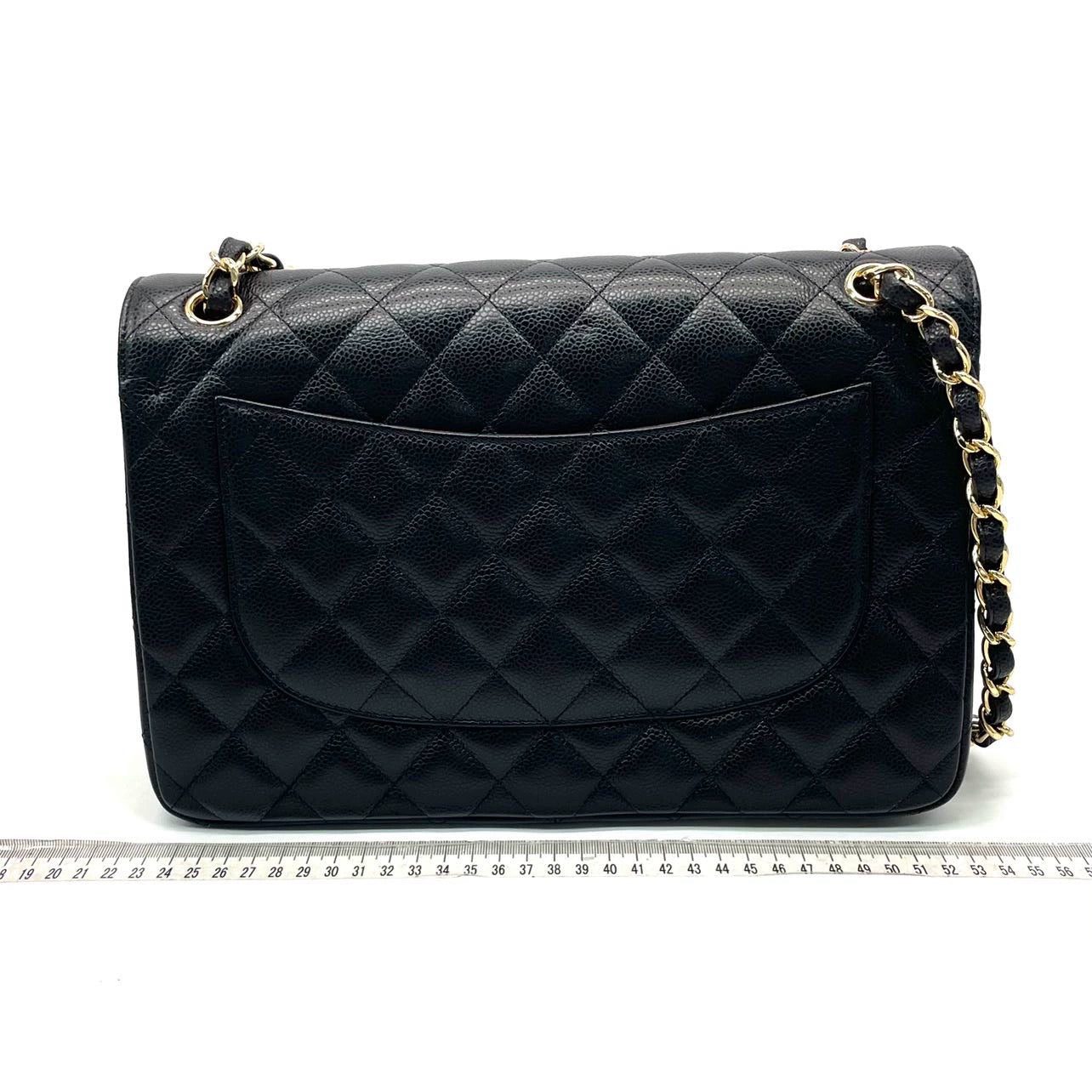 Embrace luxury with this timeless Chanel Classic Jumbo/Large Flap bag crafted in a scratch-resistant Caviar black leather and finished with gleaming gold hardware. This 2014 piece is never worn like new condition.Â