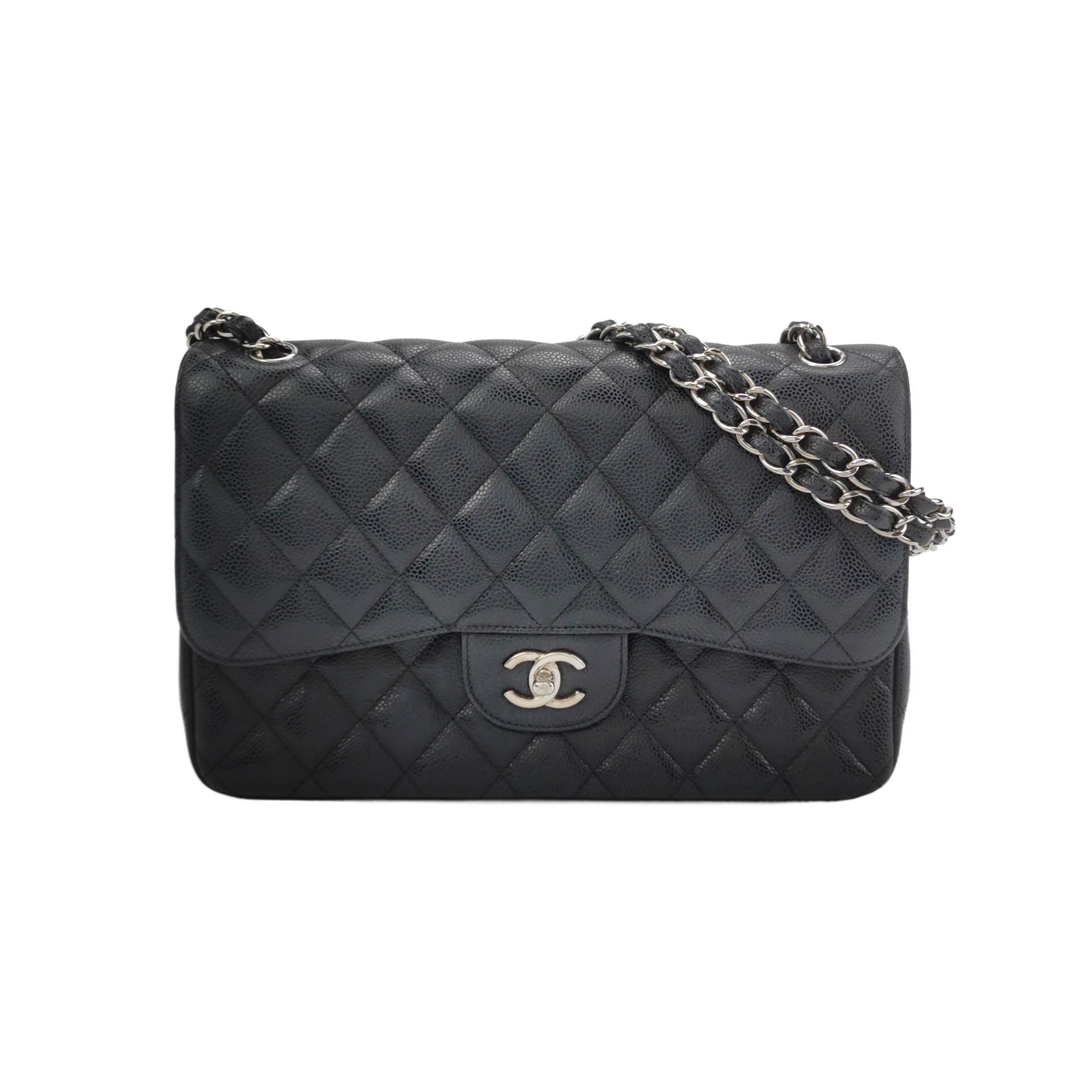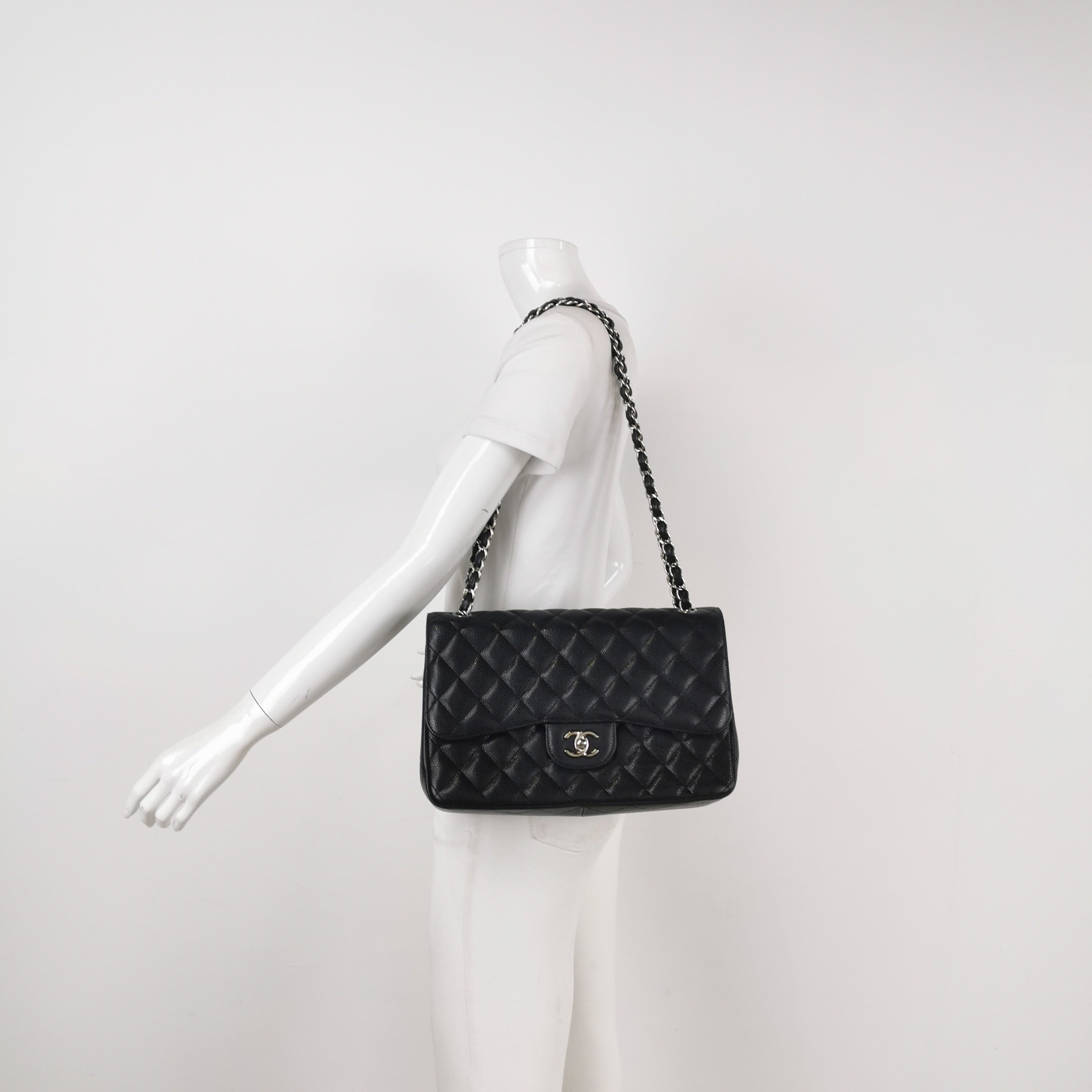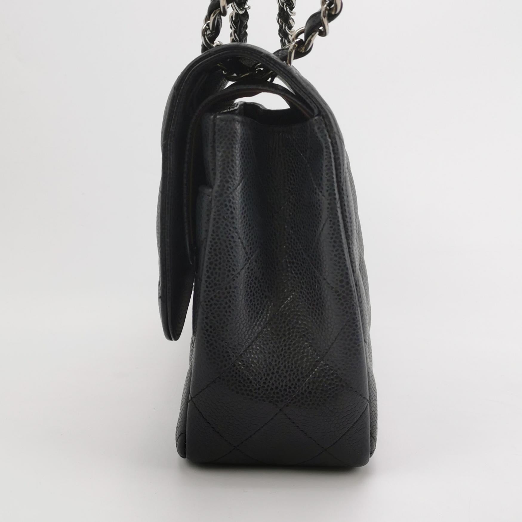 Embrace luxury with this timeless Chanel Classic Jumbo/Large Flap bag crafted in a scratch-resistant Caviar leather and finished with gleaming silver hardware.Â