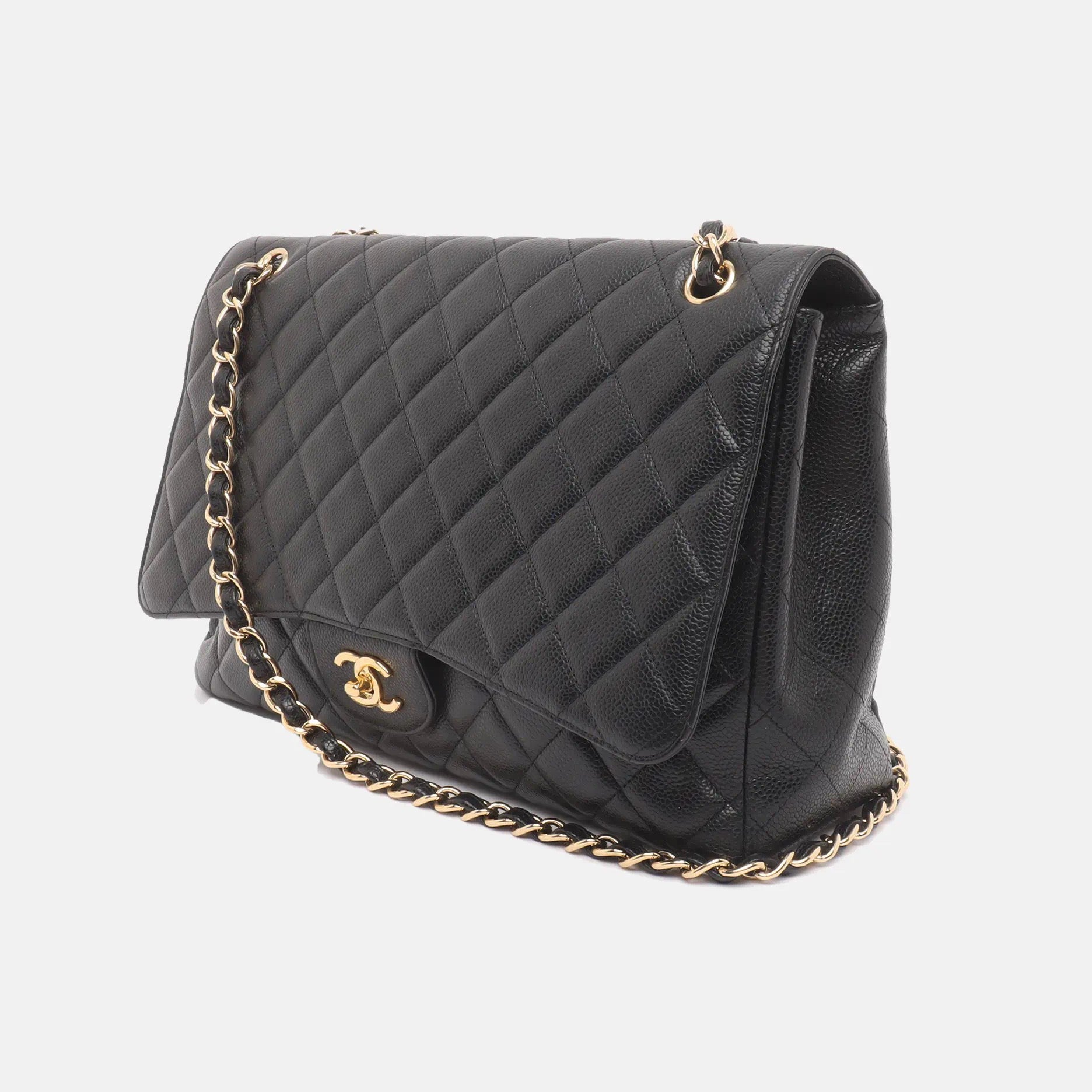 Chanel Classic Flap Maxi 2009 Black Caviar Leather Single Flap with Gold HardwareChanel Classic Flap Maxi 2009 Black Caviar Leather Single Flap with Gold Hardware
