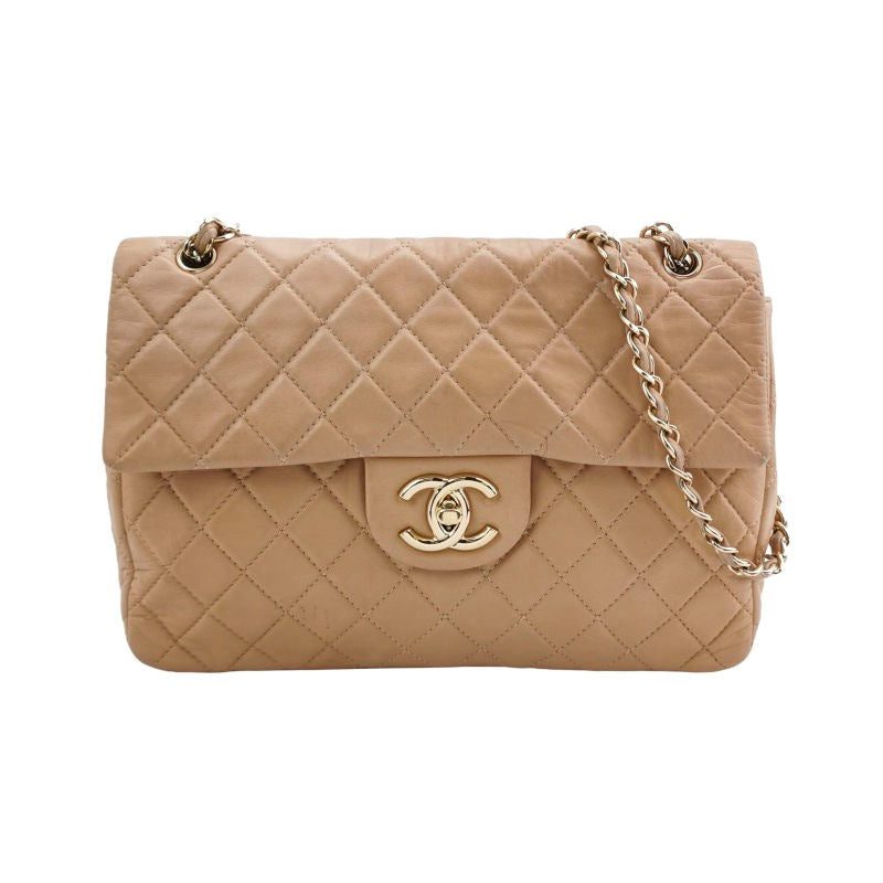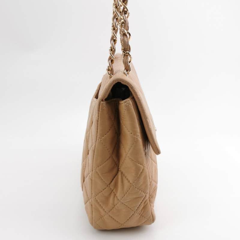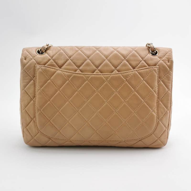 Chanel Classic Flap Maxi Beige Latte Lambskin Leather Giant Gold-tone CC LogoChanel Classic Flap Maxi Beige Latte Lambskin Leather Giant Gold-tone CC Logo