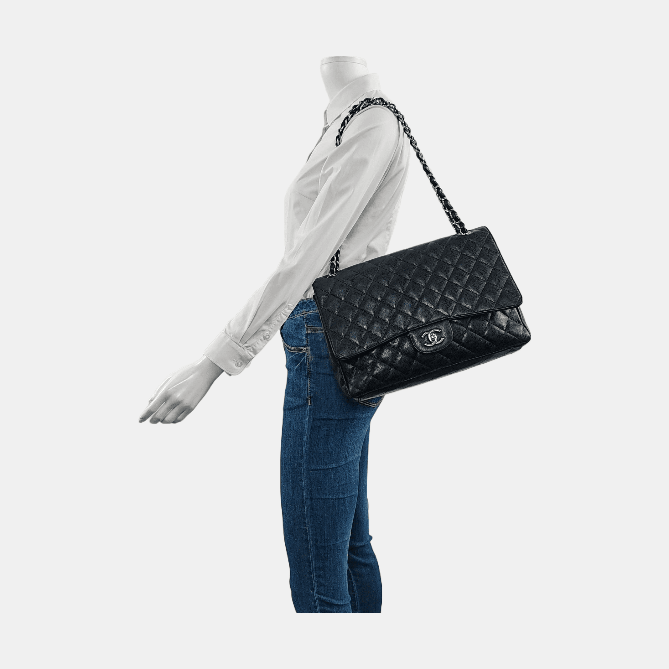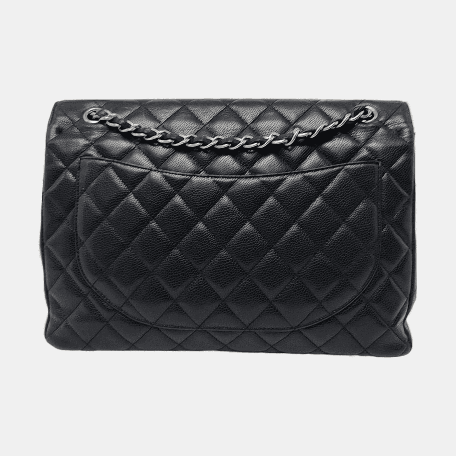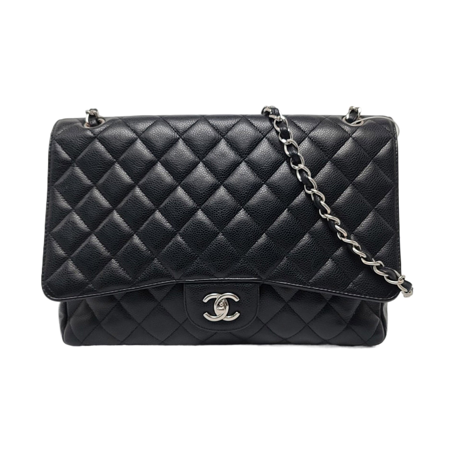 Embrace luxury with this timeless Chanel Classic Maxi Flap bag crafted in a scratch-resistant Caviar black leather and finished with gleaming gold hardware.Â