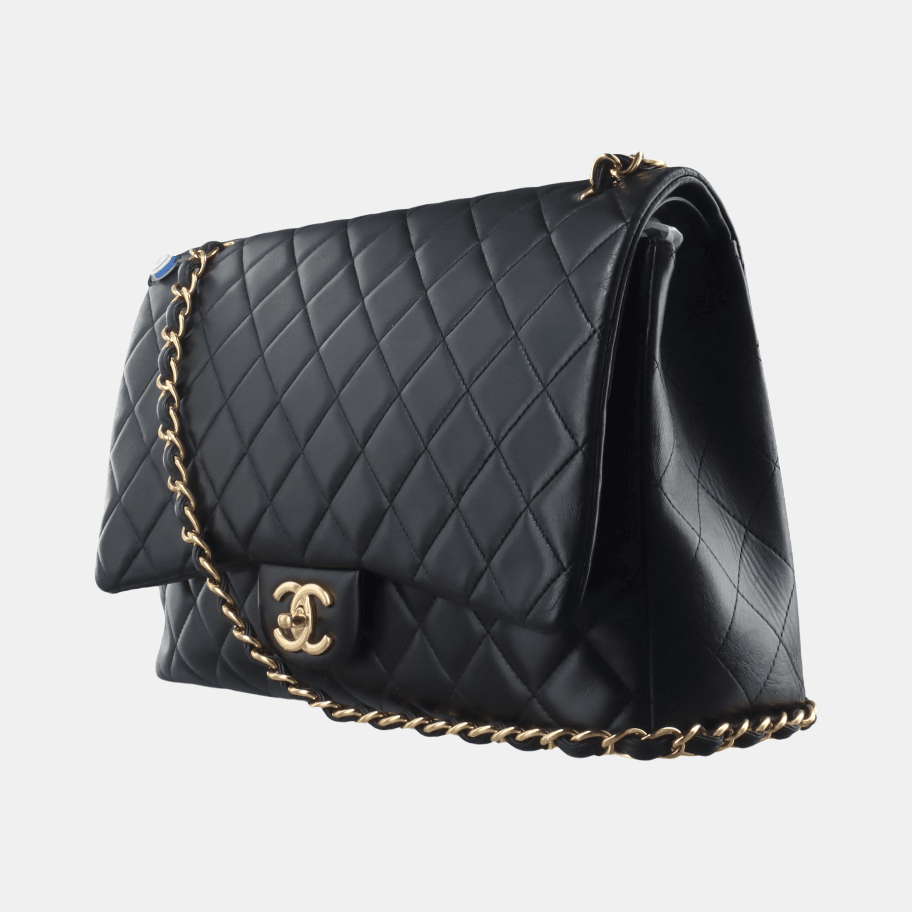 Be the first to review “Chanel Classic Flap Maxi Black Lambskin Leather Double Flap with Gold Hardware, 2014-2015”