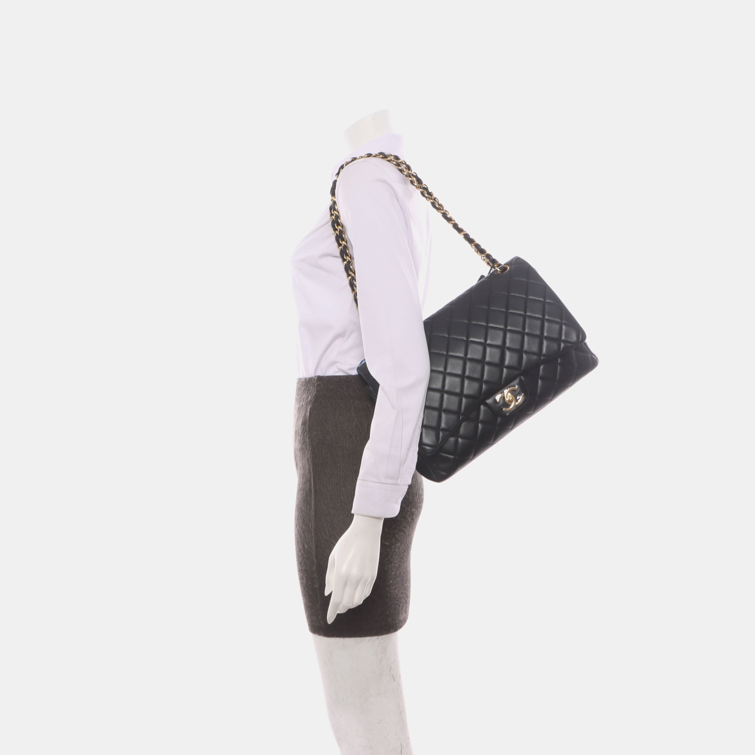 Chanel Classic Flap Maxi Black Lambskin Leather Double Flap with Gold Hardware, 2014-2015Chanel Classic Flap Maxi Black Lambskin Leather Double Flap with Gold Hardware, 2014-2015