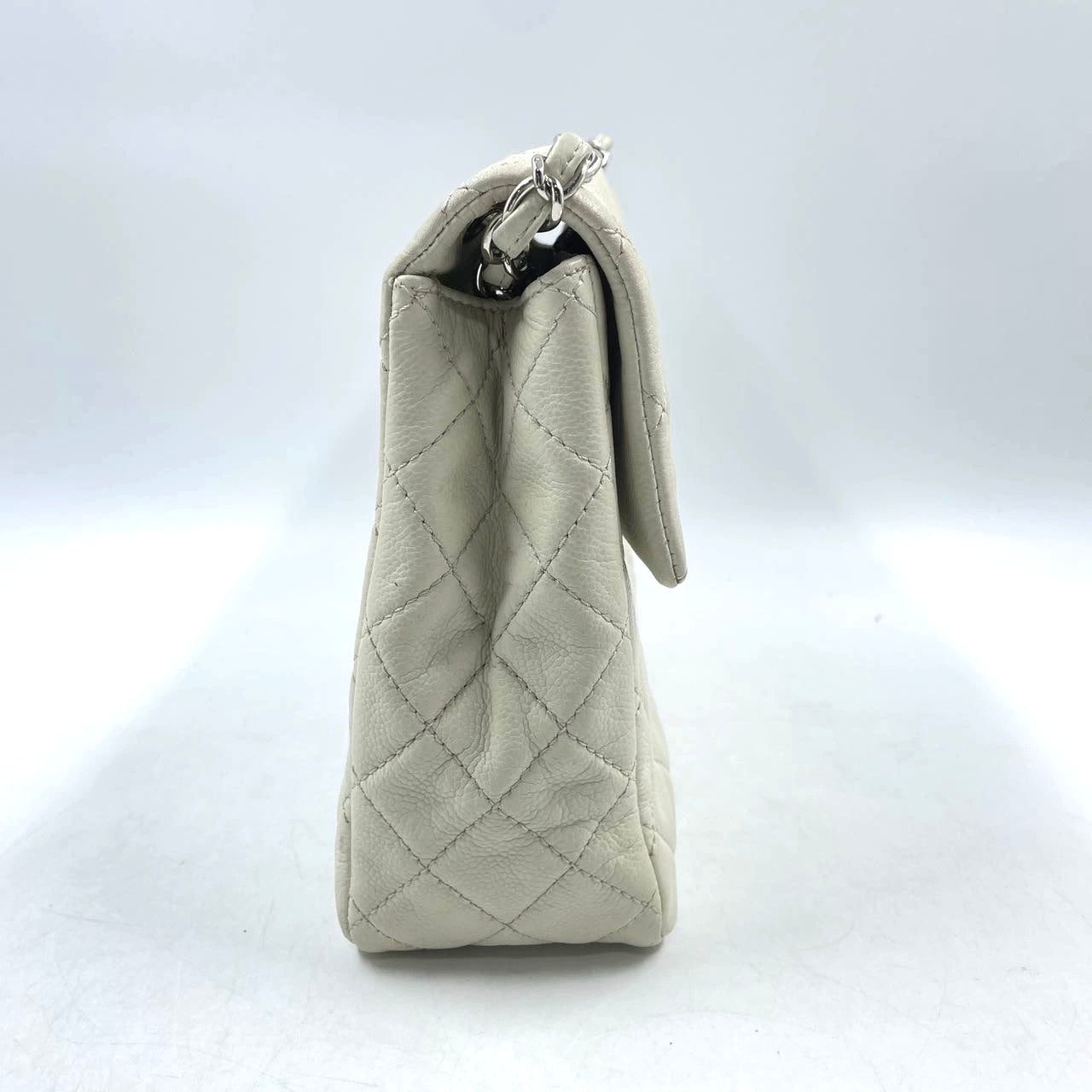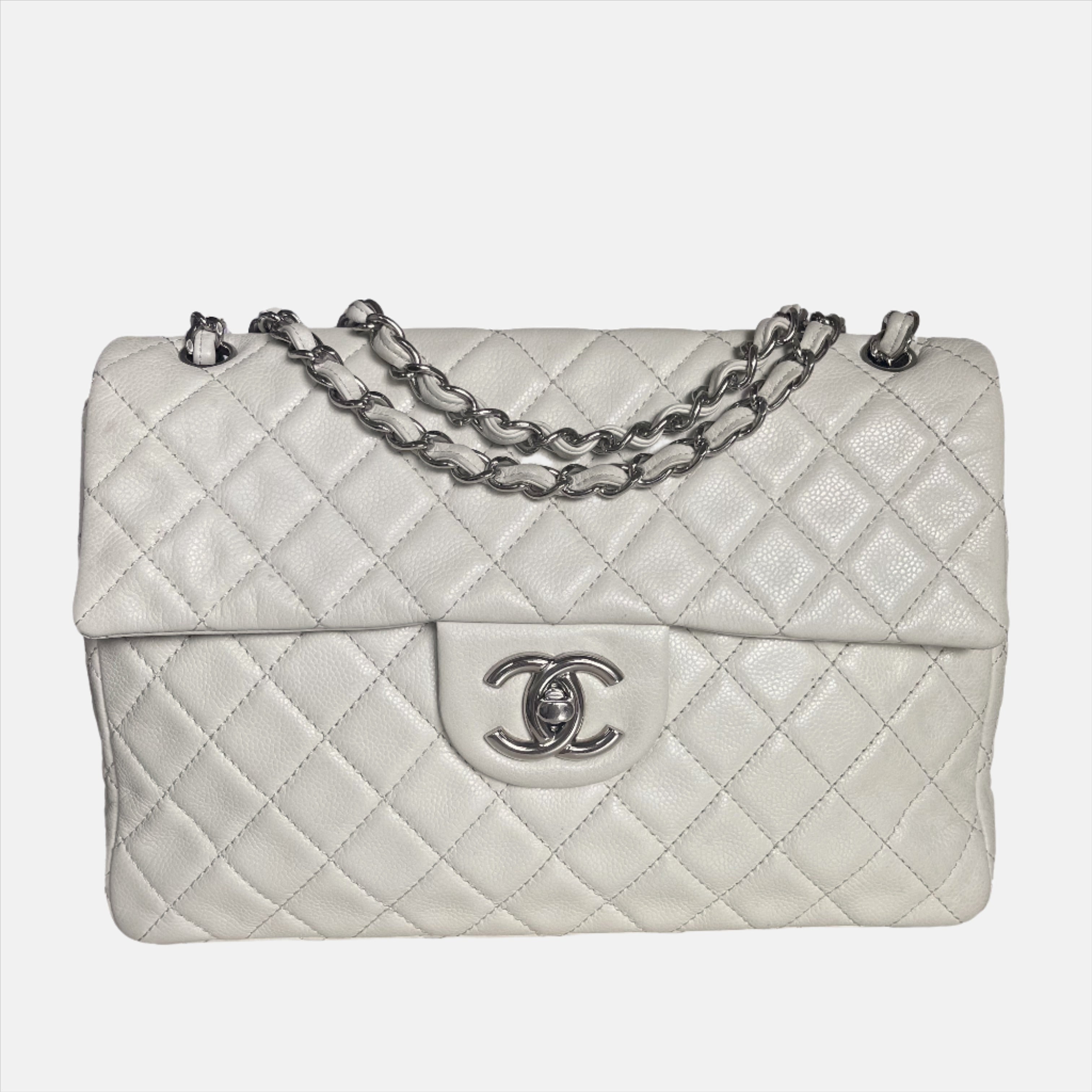 Chanel Classic Flap Maxi Milk White Caviar Leather Silver-tone Hardware Giant CC LogoChanel Classic Flap Maxi Milk White Caviar Leather Silver-tone Hardware Giant CC Logo