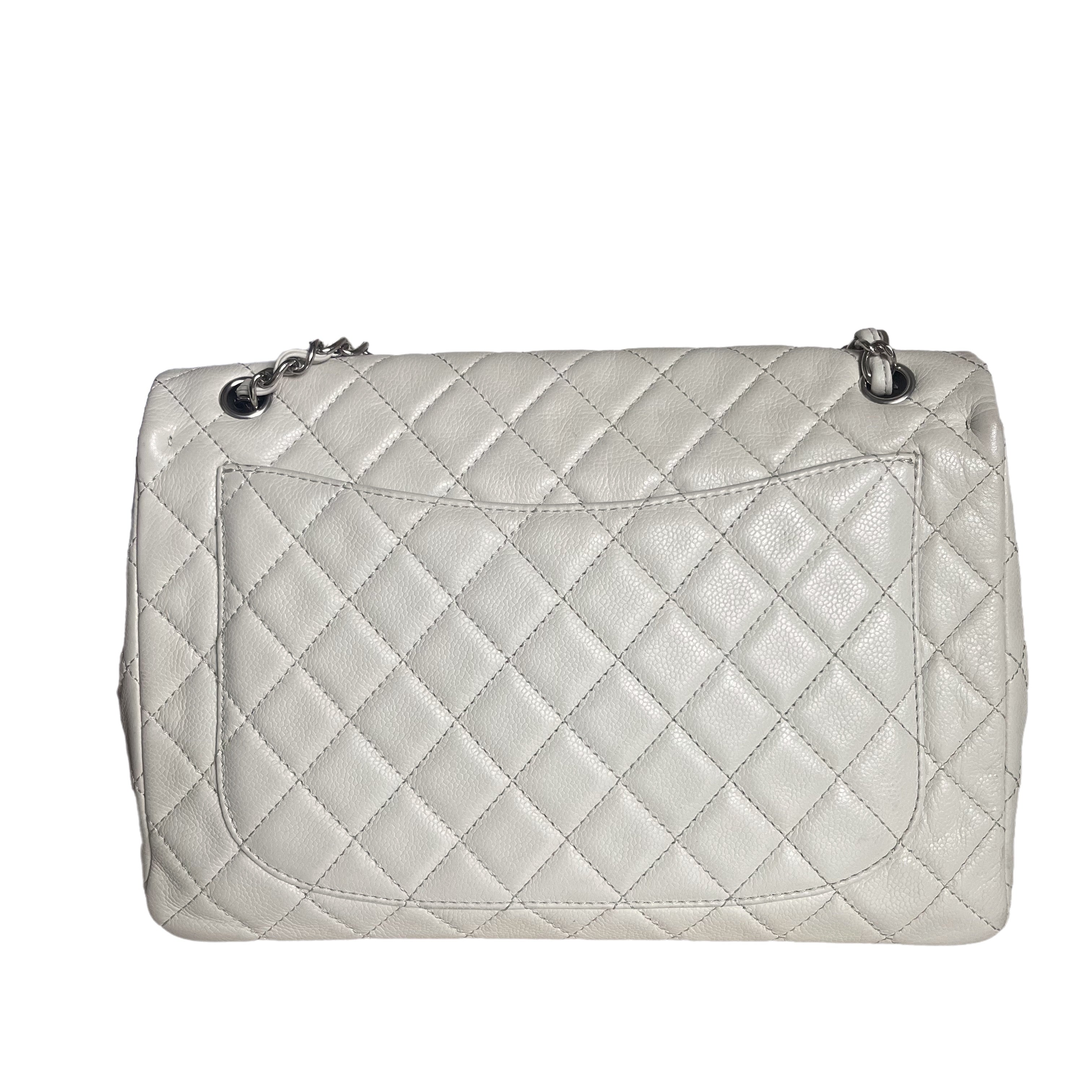 Chanel Classic Flap Maxi Milk White Caviar Leather Silver-tone Hardware Giant CC Logo