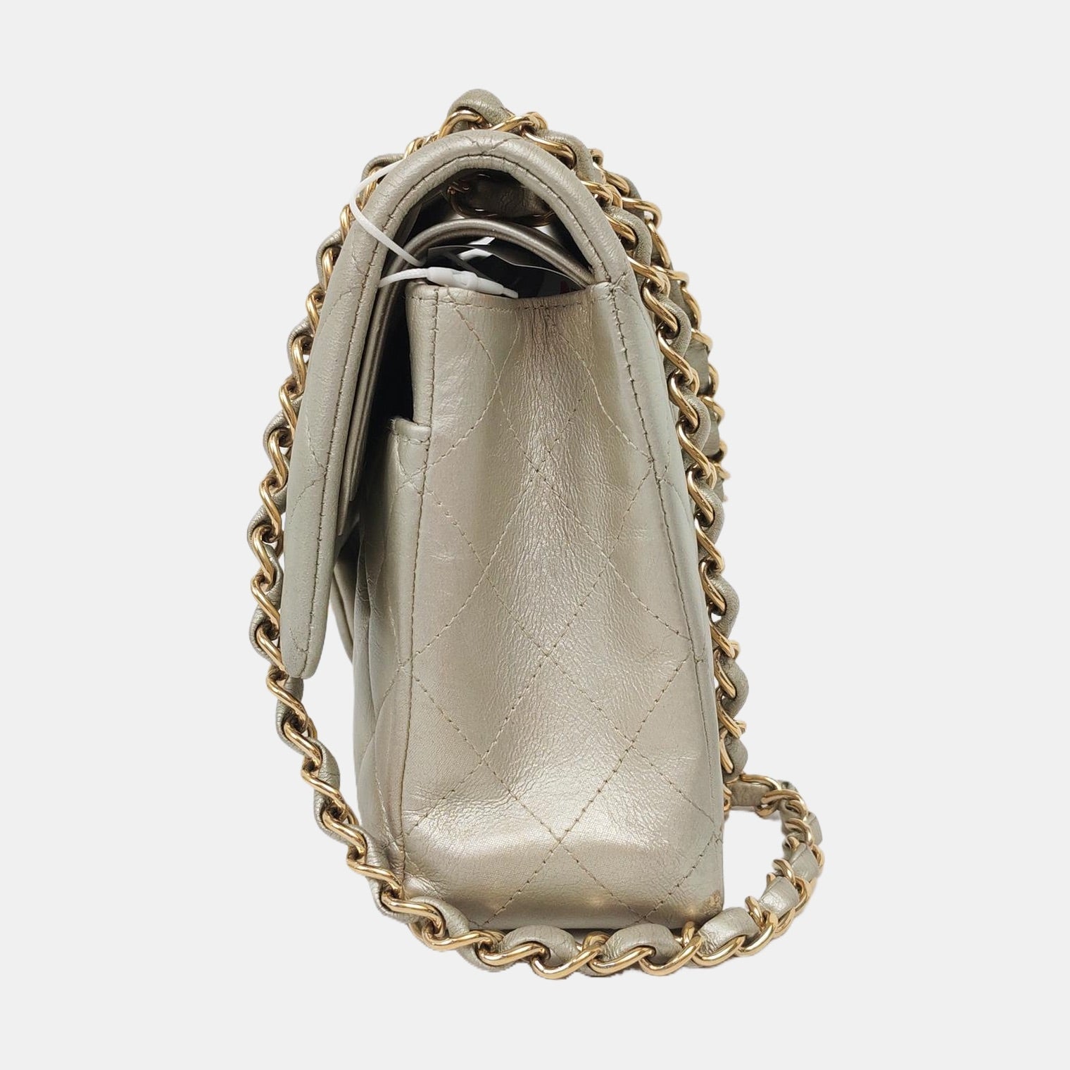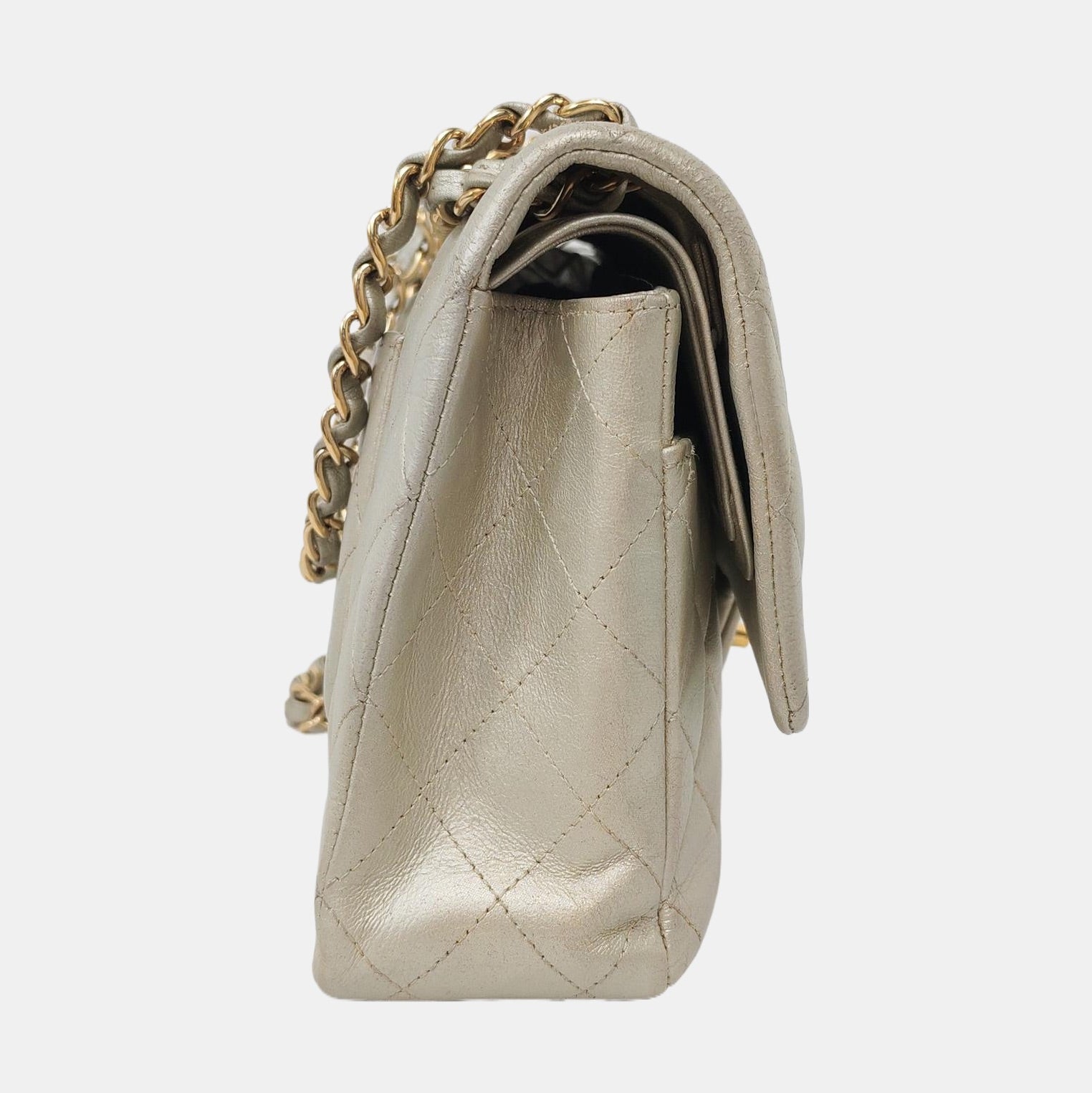 This one-of-a-kind Chanel Timeless Classic Flap Vintage bag exudes sophistication and timeless elegance. Crafted from luxurious lambskin leather, it is adorned with 24k gold hardware.Â