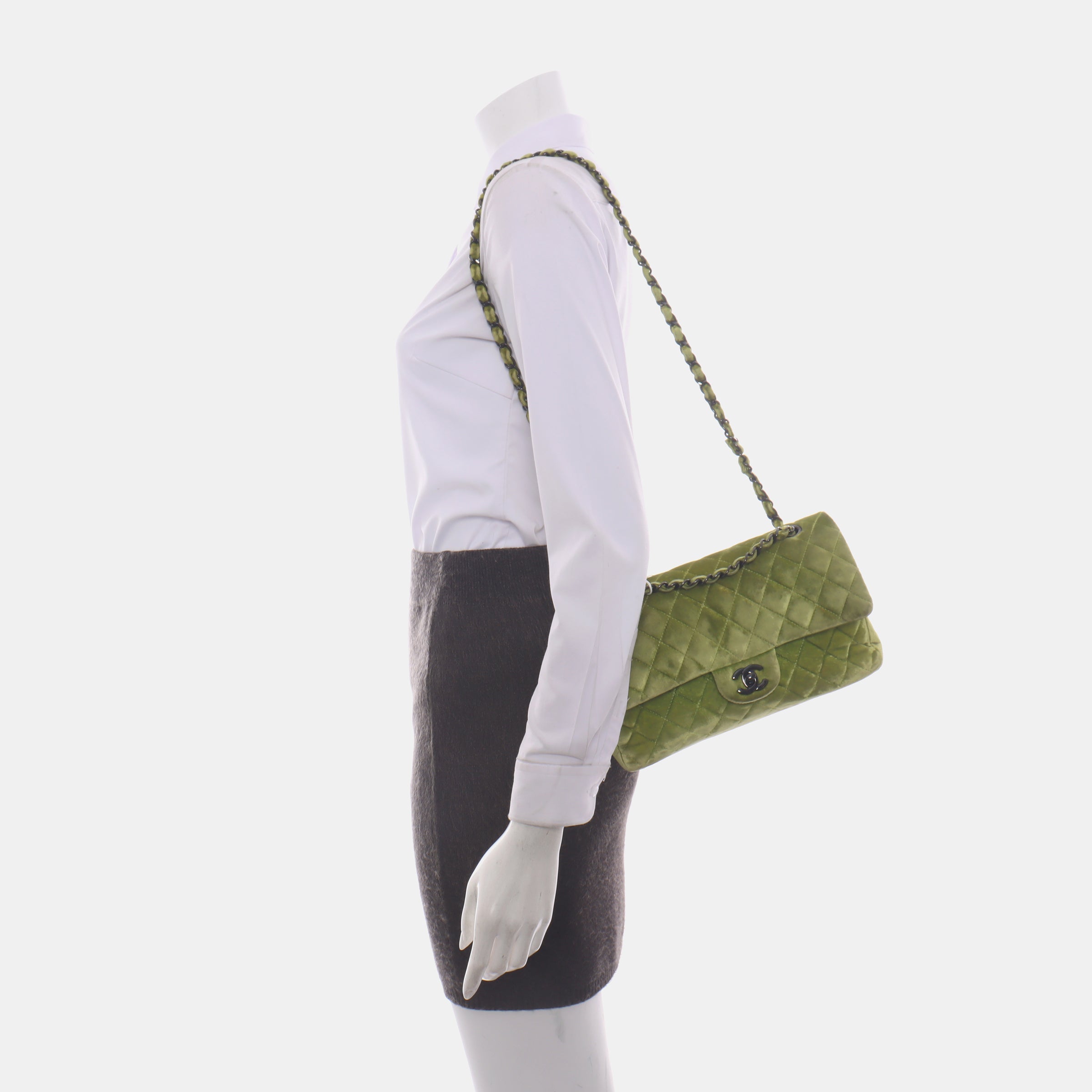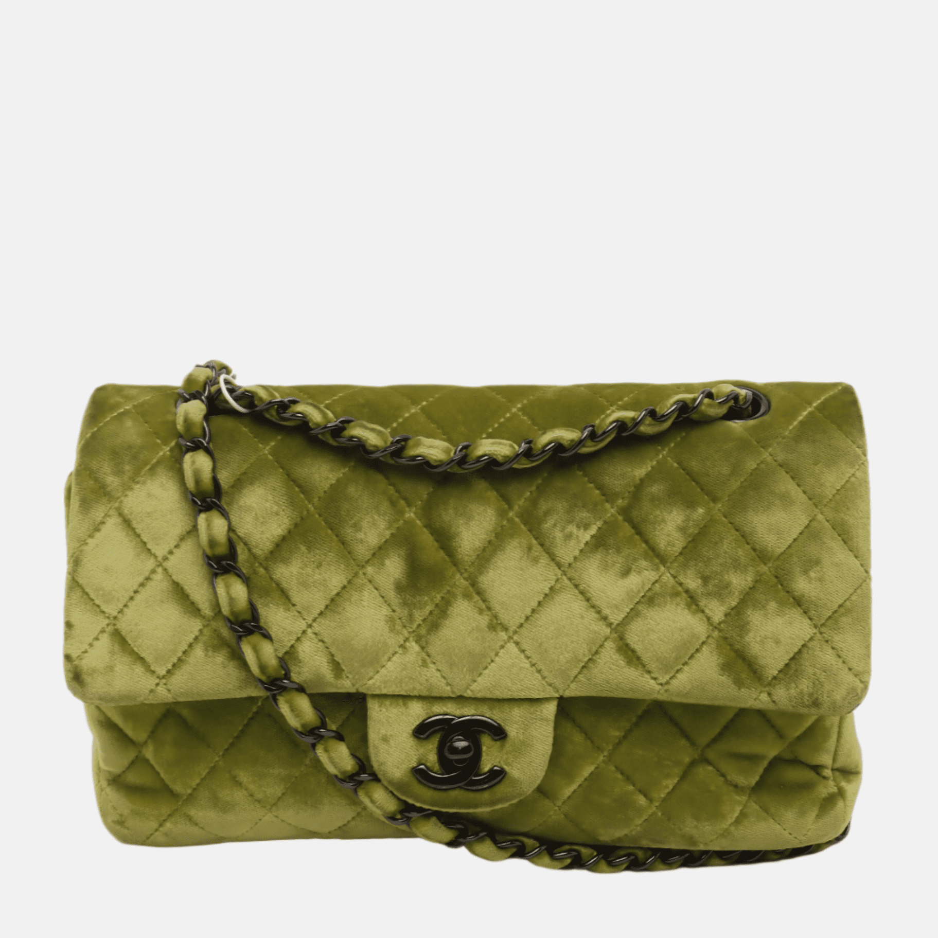 Chanel Classic Flap Medium Green Velvet Black Hardware, 2014-2015Chanel Classic Flap Medium Green Velvet Black Hardware, 2014-2015