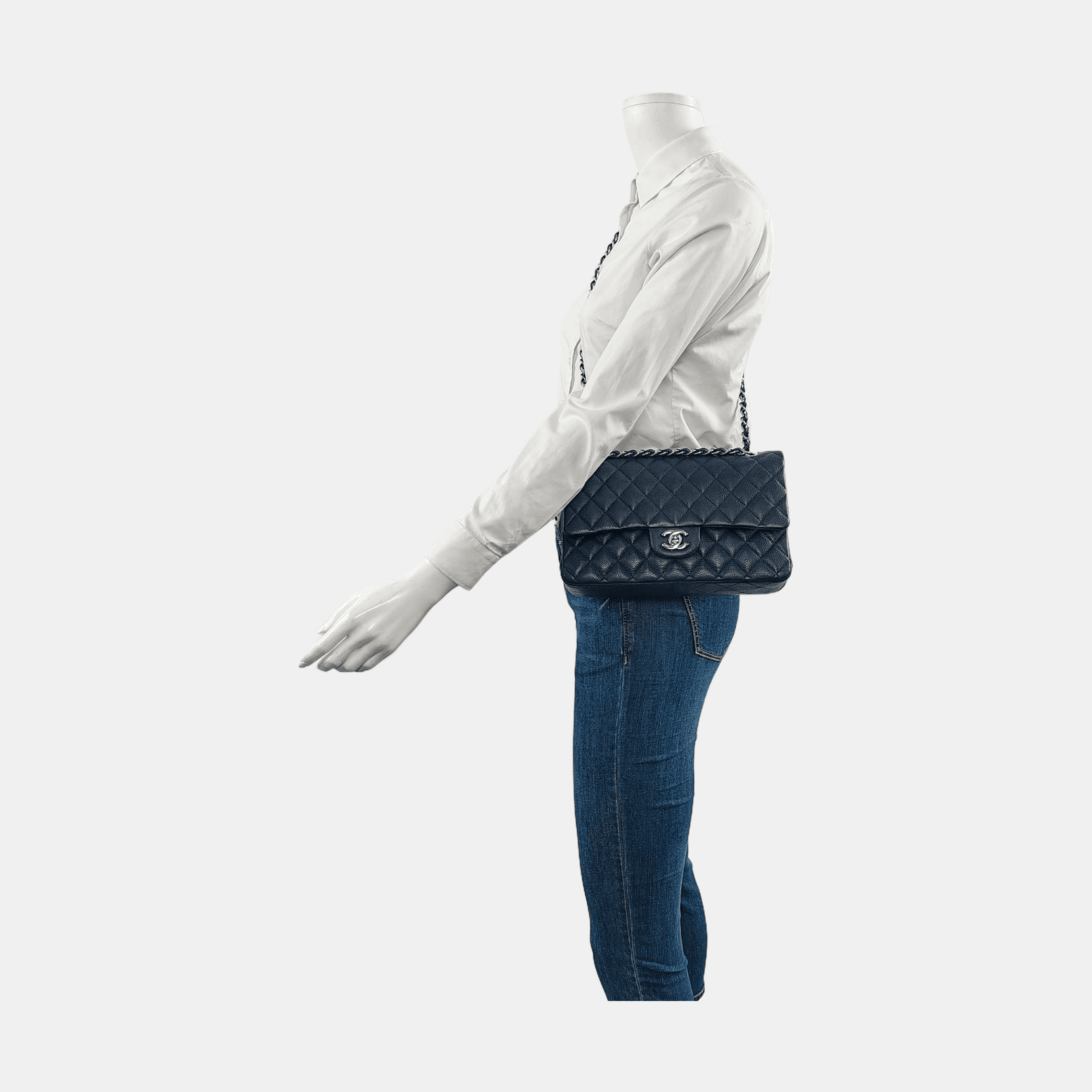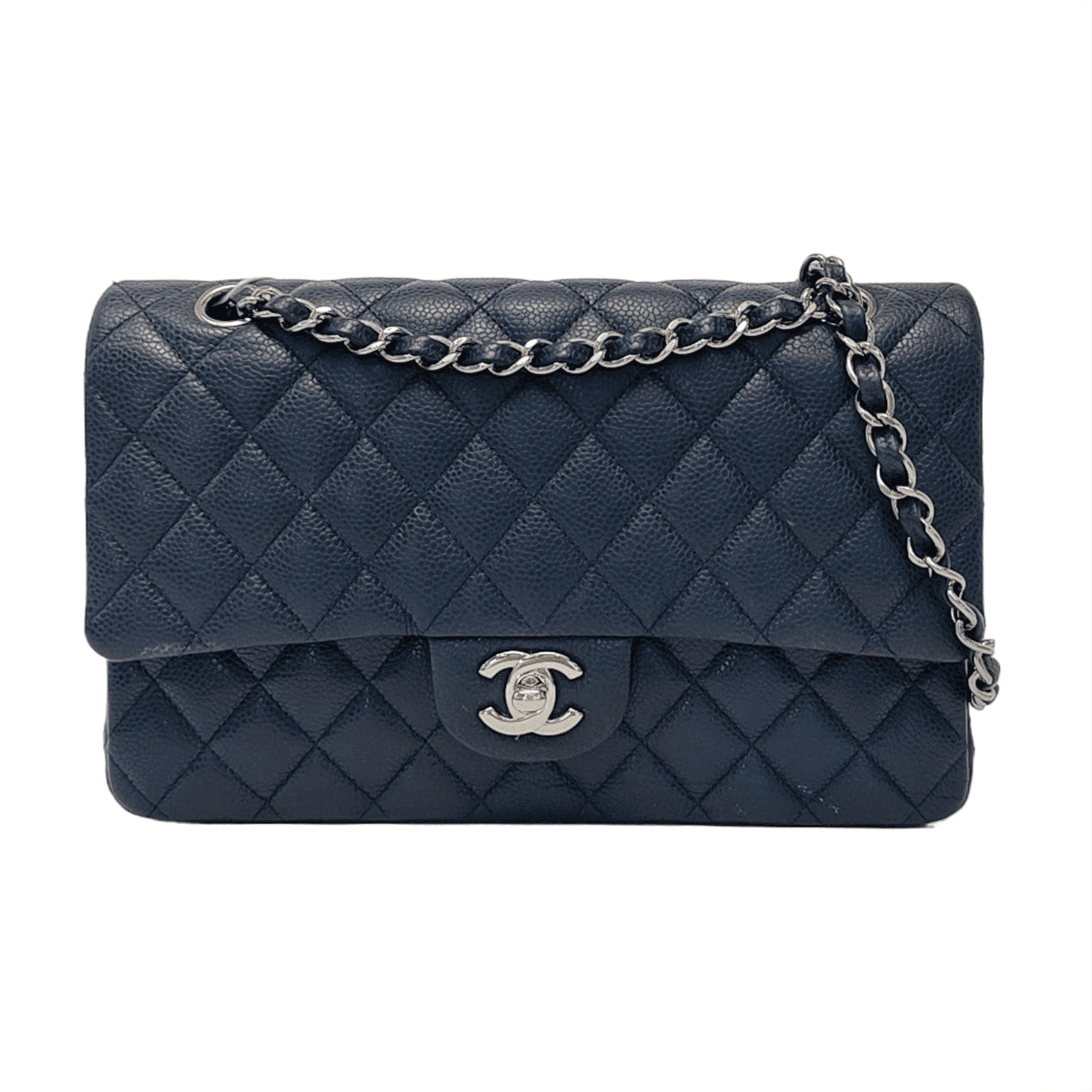 Chanel Classic Flap Medium Navy Caviar Leather Silver HardwareChanel Classic Flap Medium Navy Caviar Leather Silver Hardware