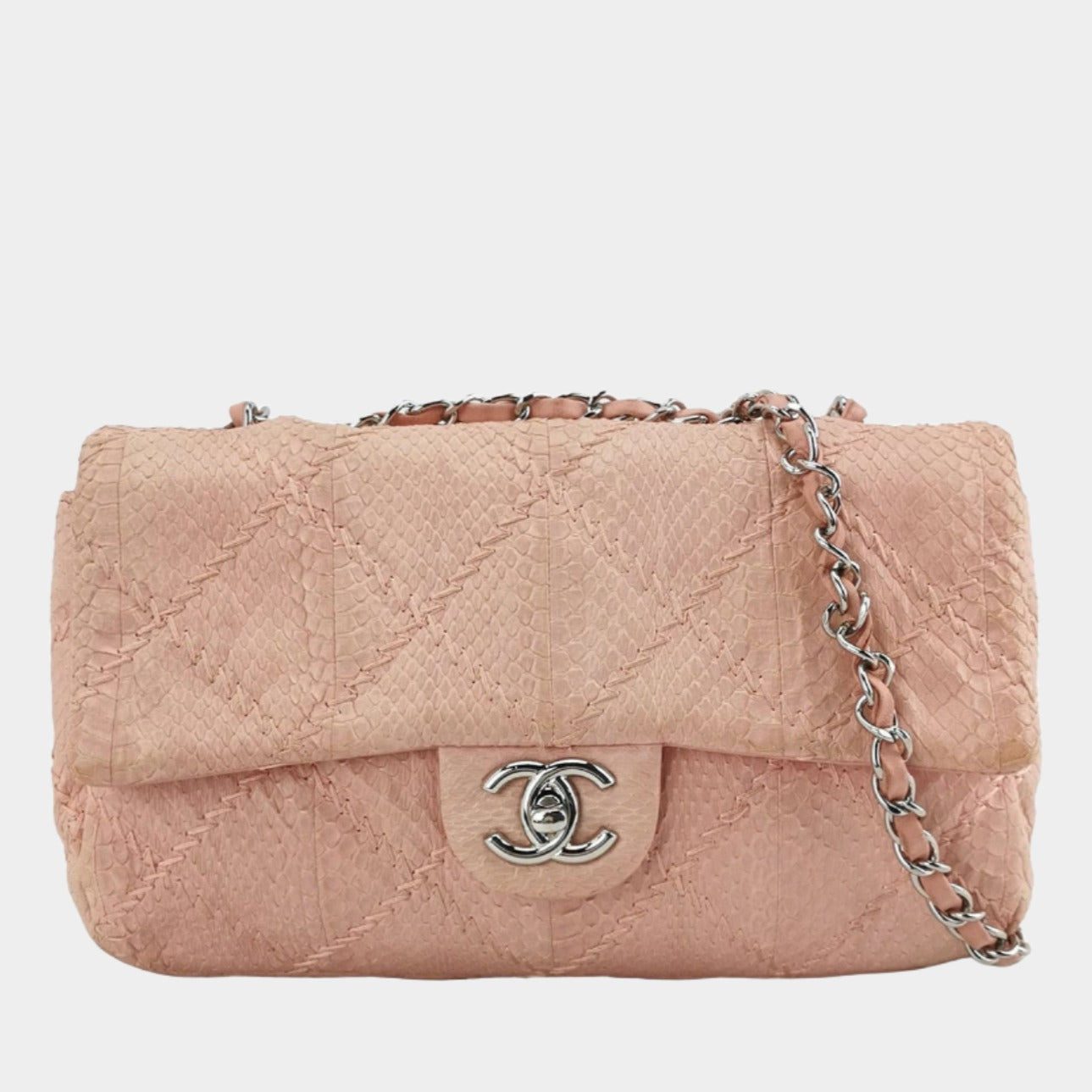 CONDITION: Very good condition with signs of wear throughout. It has light stains on the body of the bag, around the bottom. Discolouration around the bottom and the corners of the flap. Hardware has scratches.Â