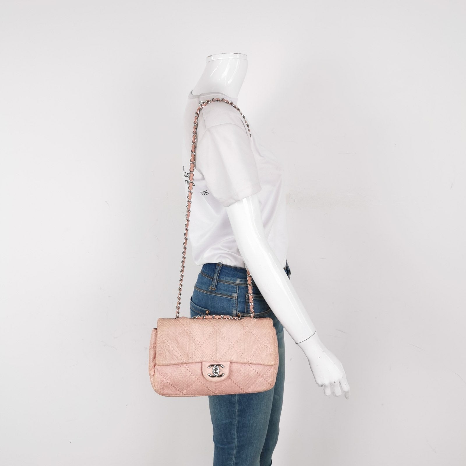 This is a lightweight Chanel Timeless / Classic Flap in light blue stripe-pattern denim with silver hardware. It offers a casual take on the classic style while still maintaining a classy and practical design, making it perfect for everyday wear.