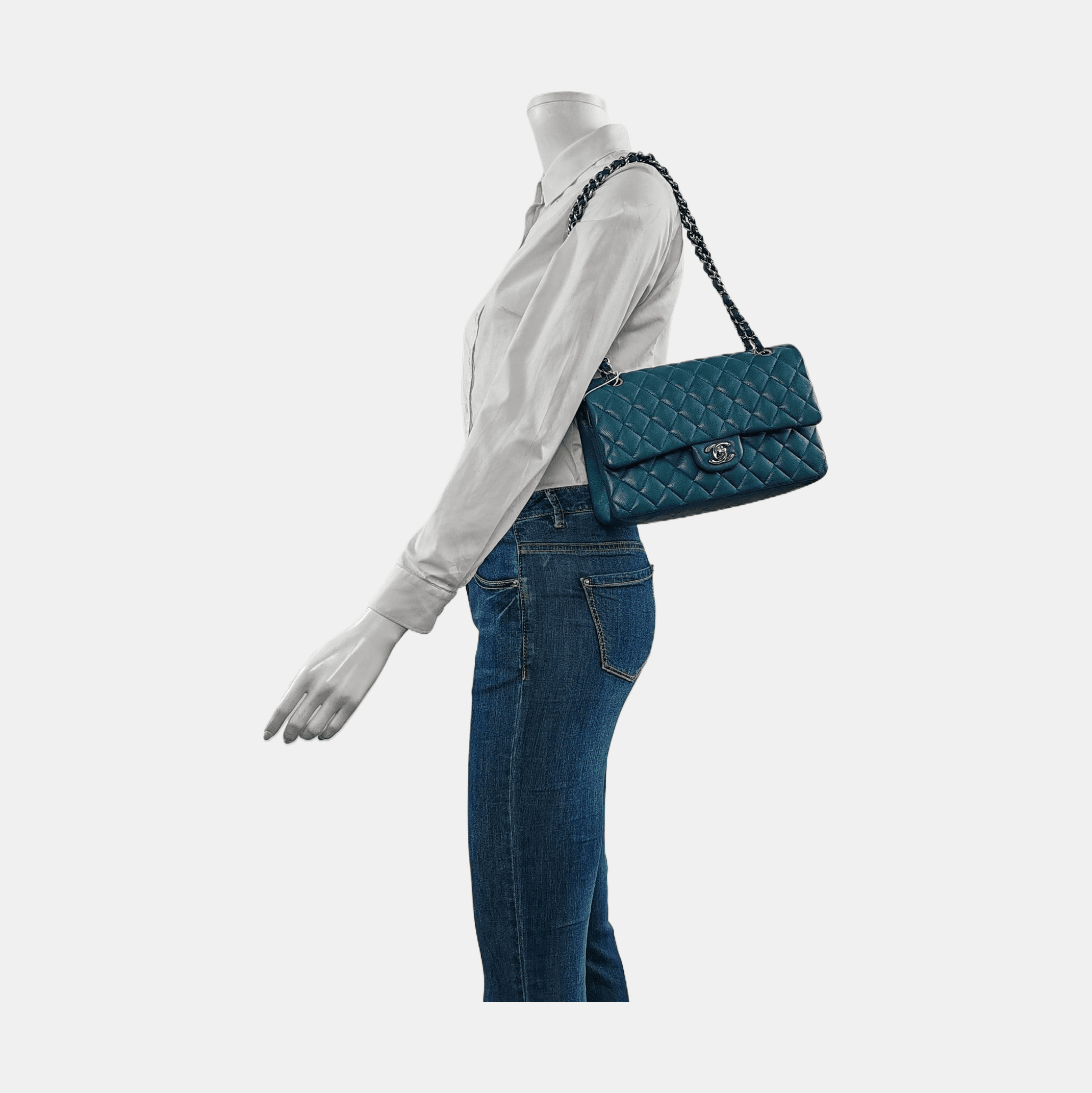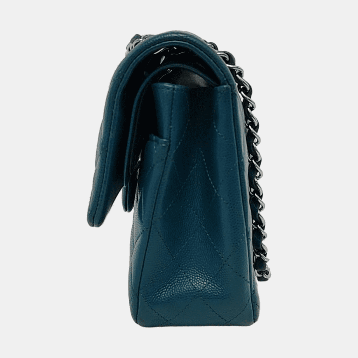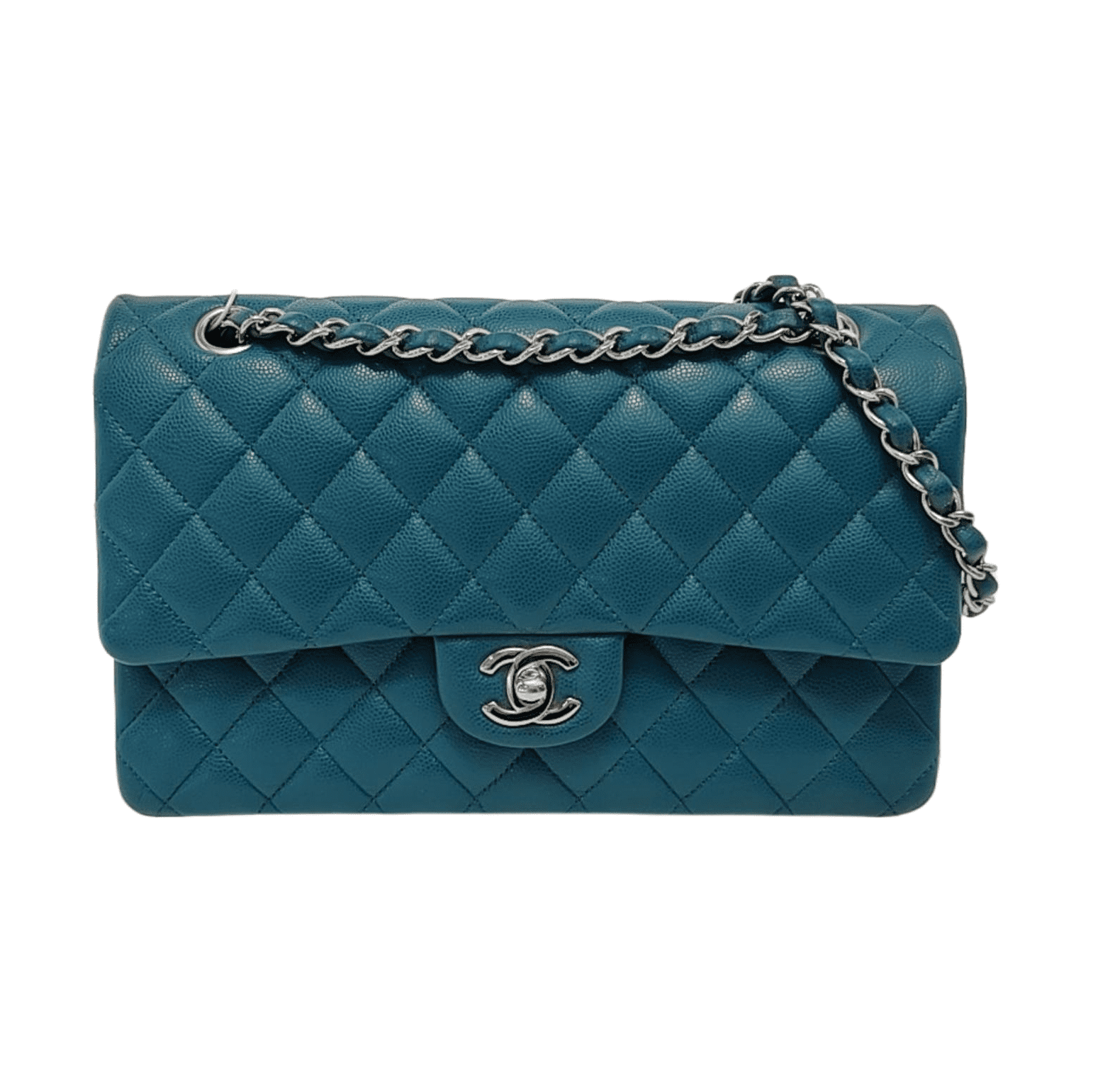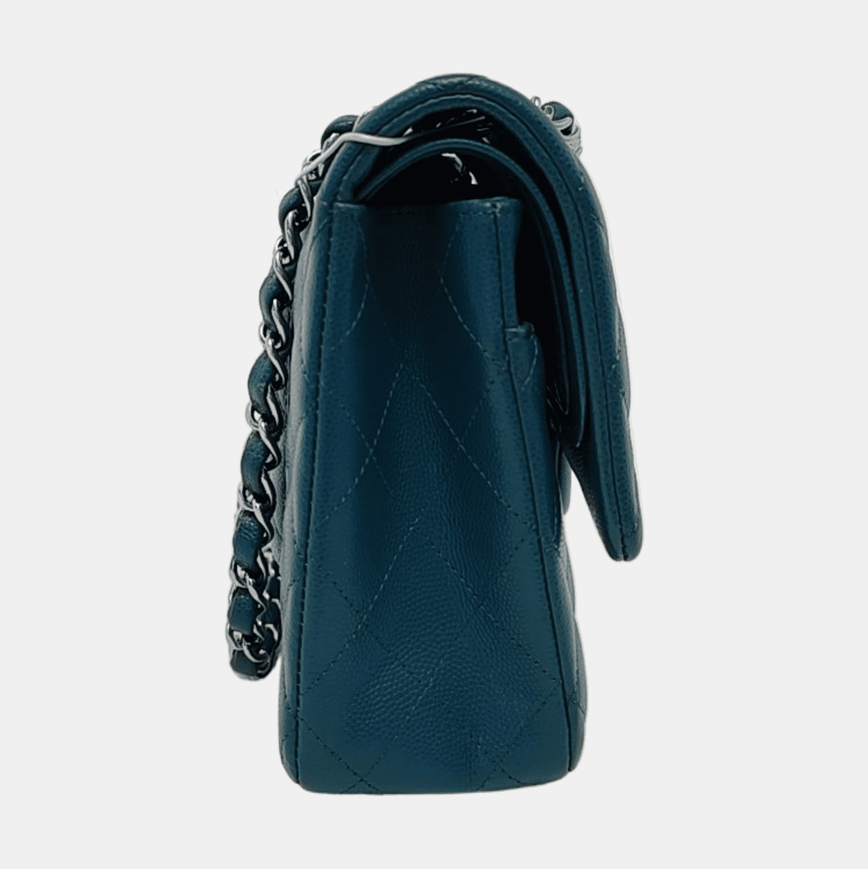 Chanel Classic Flap Medium Teal Green Caviar Leather with Silver HardwareChanel Classic Flap Medium Teal Green Caviar Leather with Silver Hardware