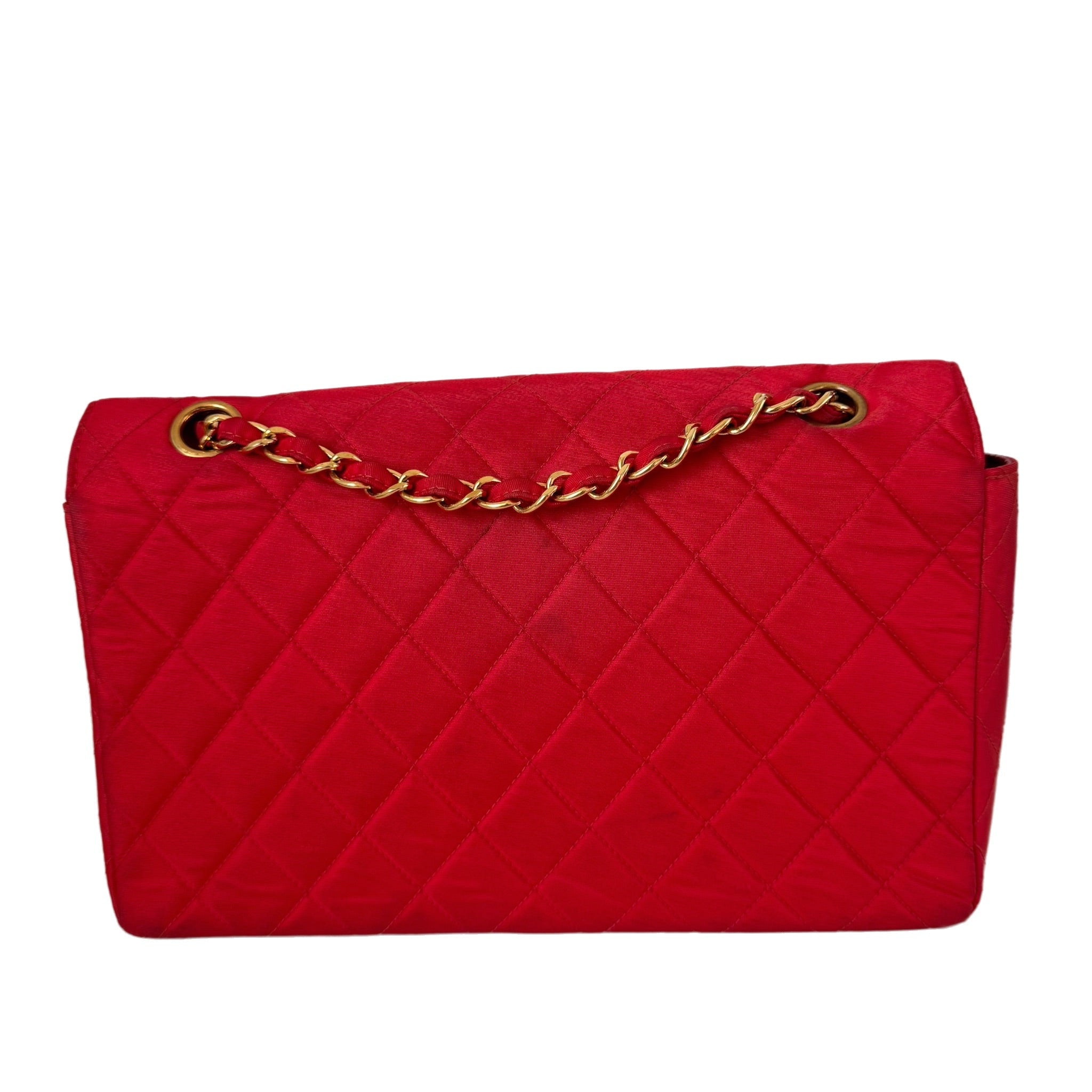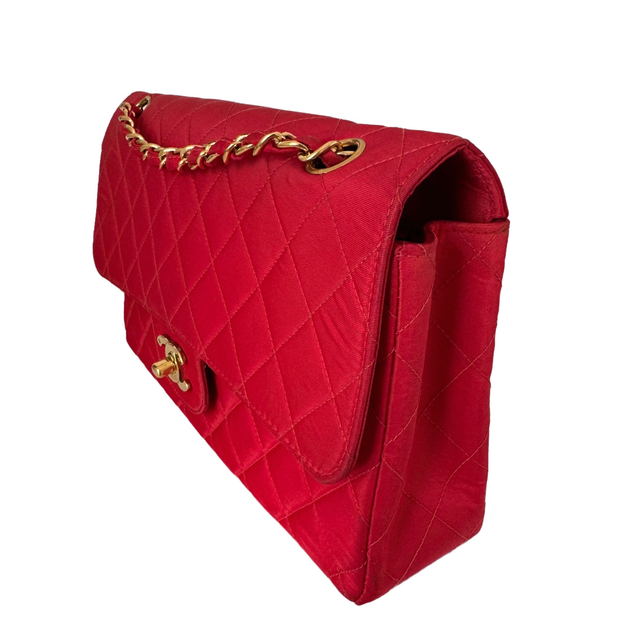 Chanel Classic Flap Medium Vintage Red Nylon Satin with 24k Gold Plated HWChanel Classic Flap Medium Vintage Red Nylon Satin with 24k Gold Plated HW