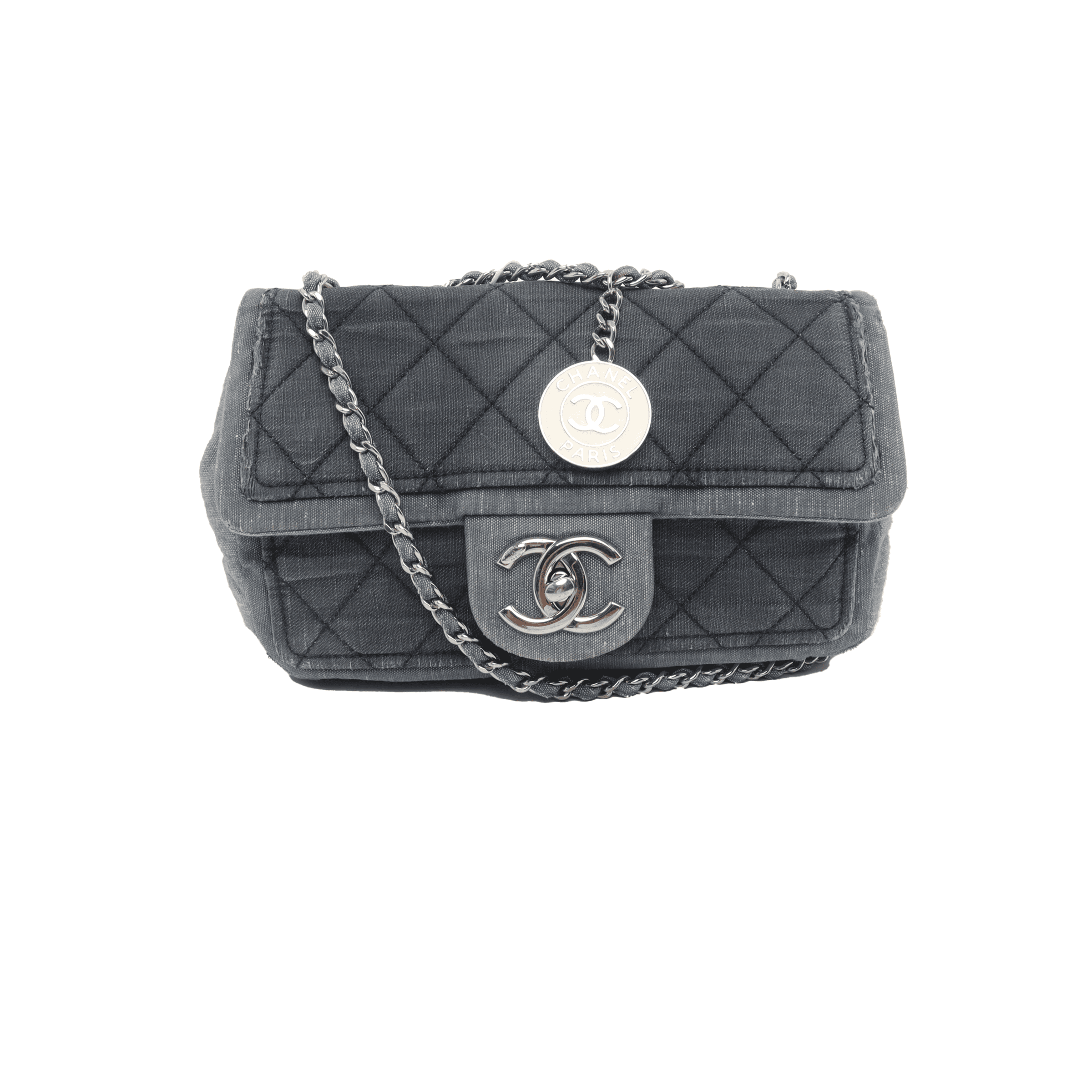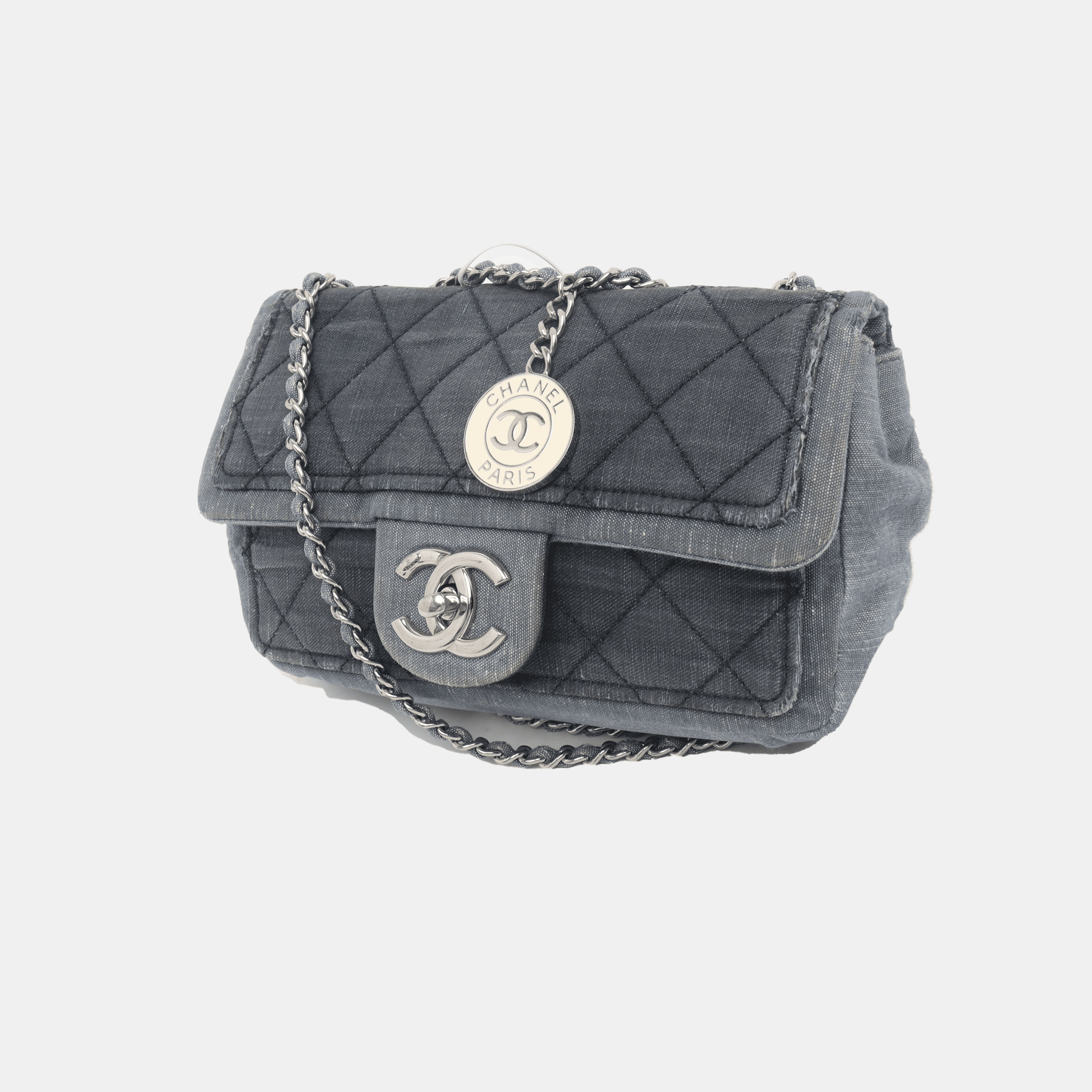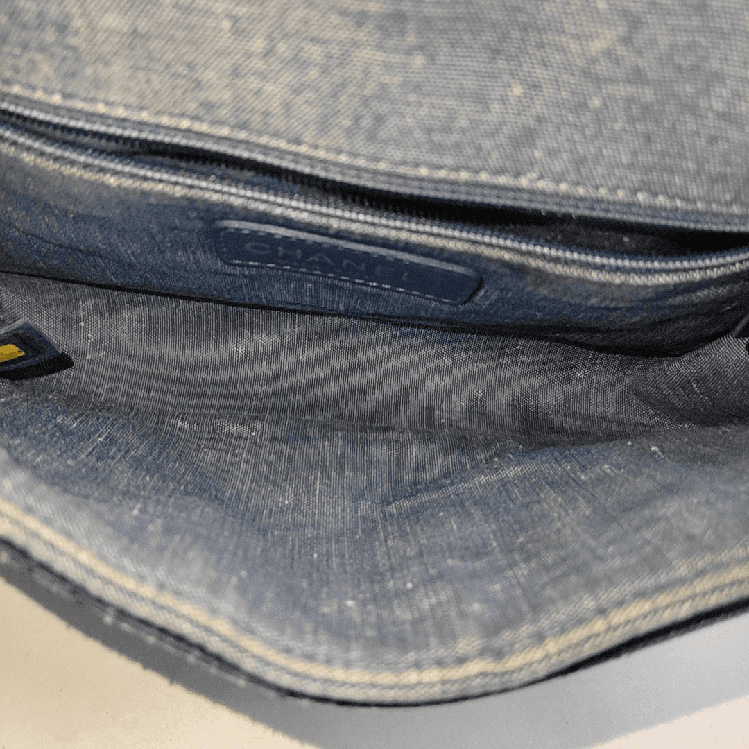 Heavy signs of use. Some parts of the denim are worn. Light stains. Scratches to the hardware.Â