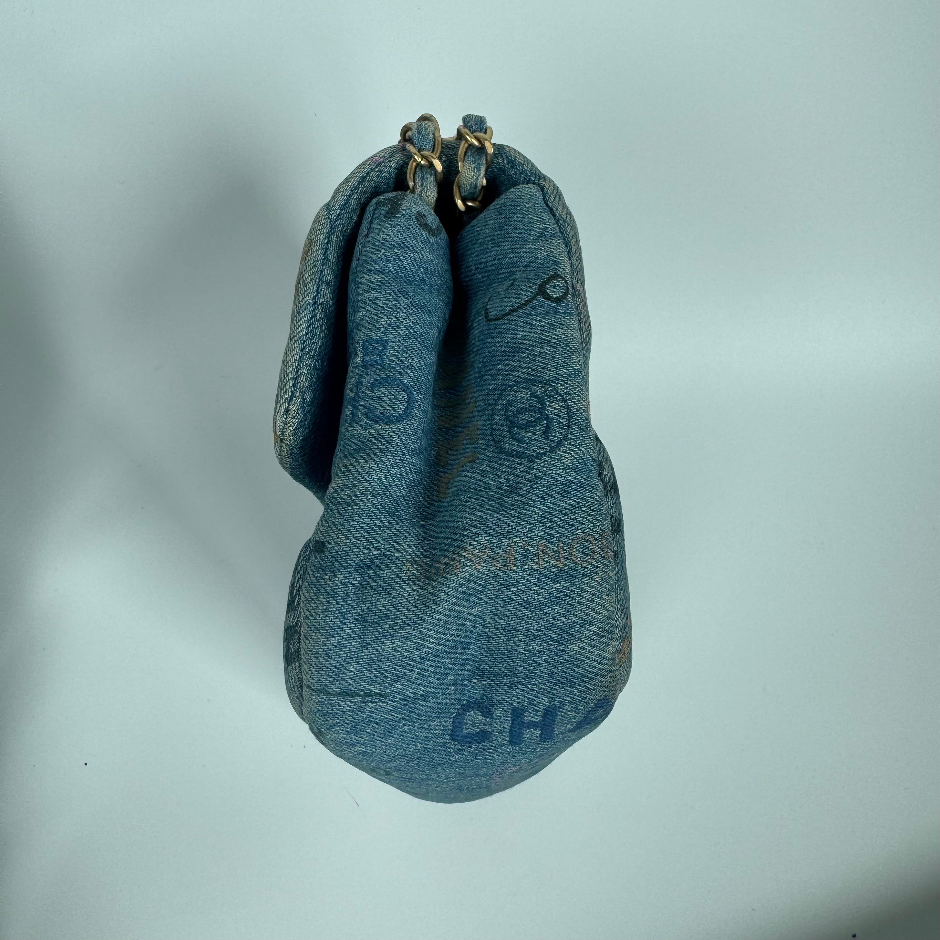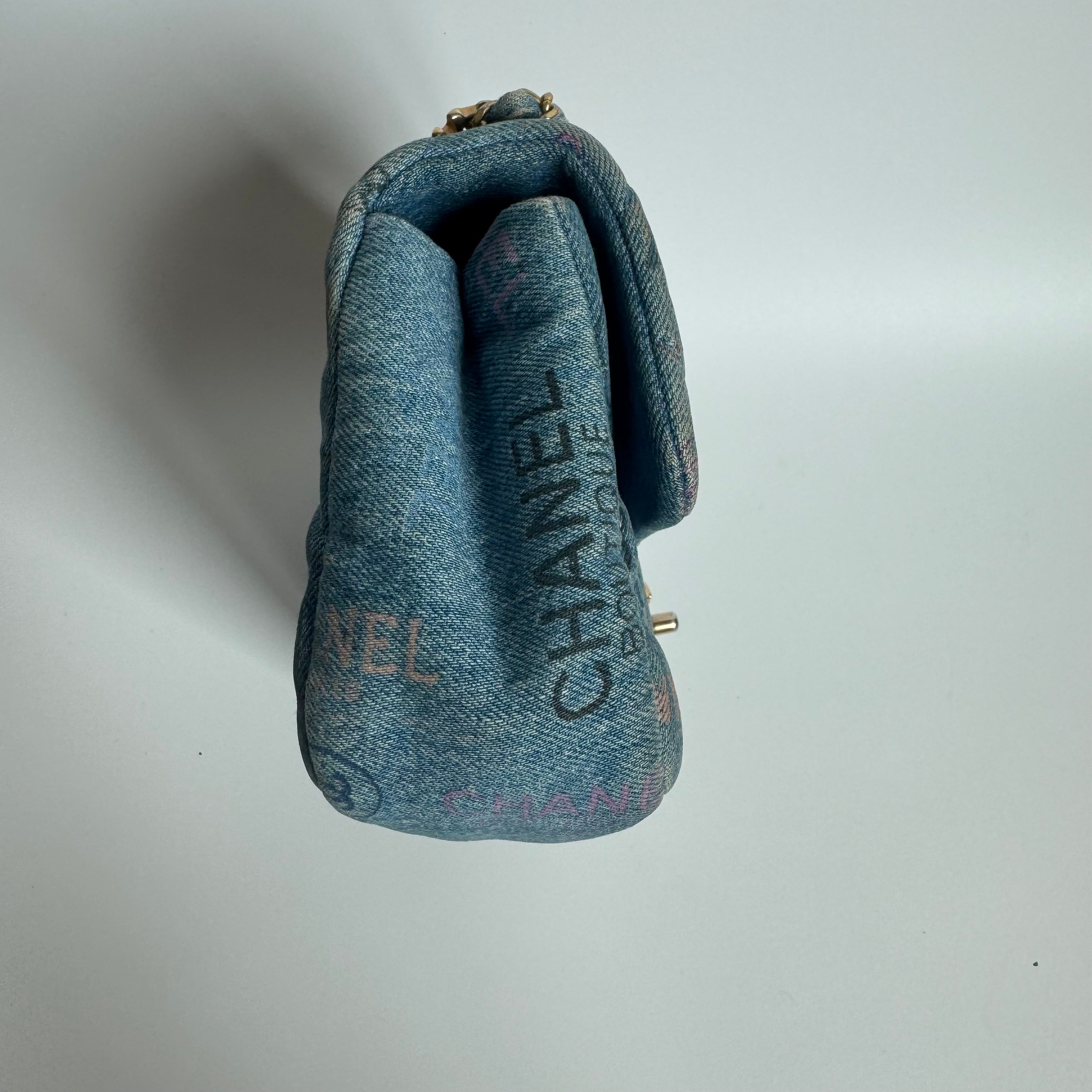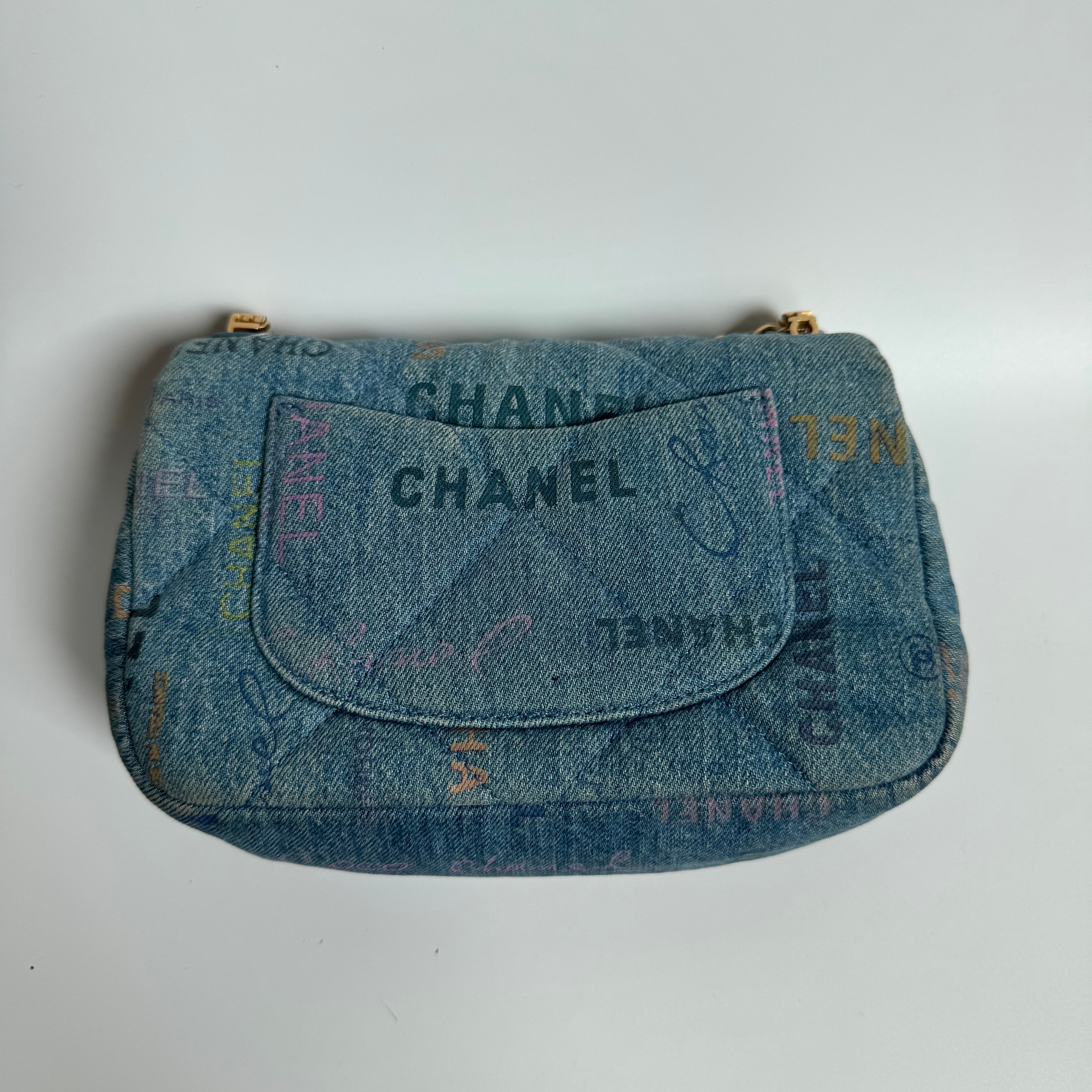 This previously owned and used item is in very good condition with little some signs of use. Light scratches to the hardware. Light rubbing and stains on the denim around the corners and edges.Â