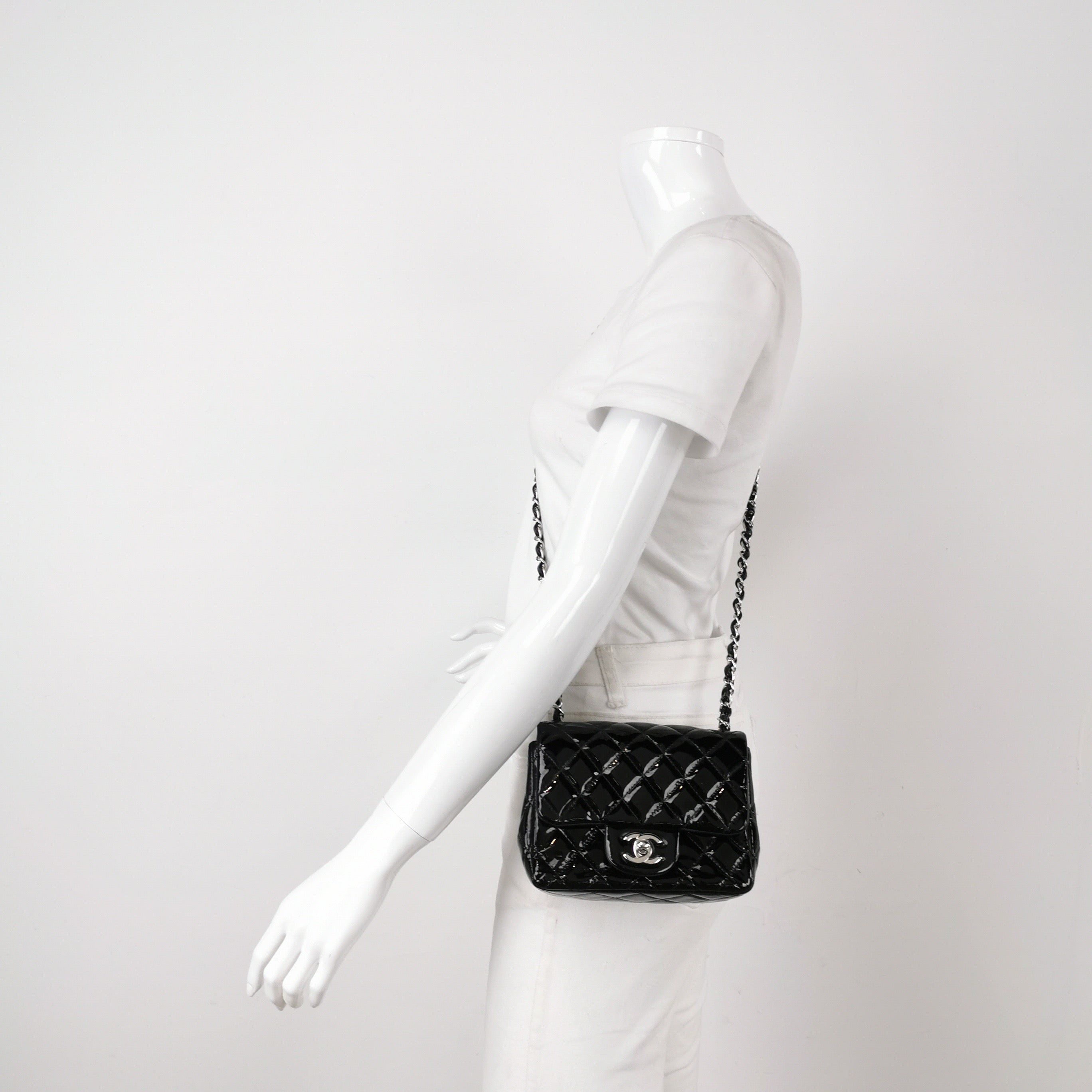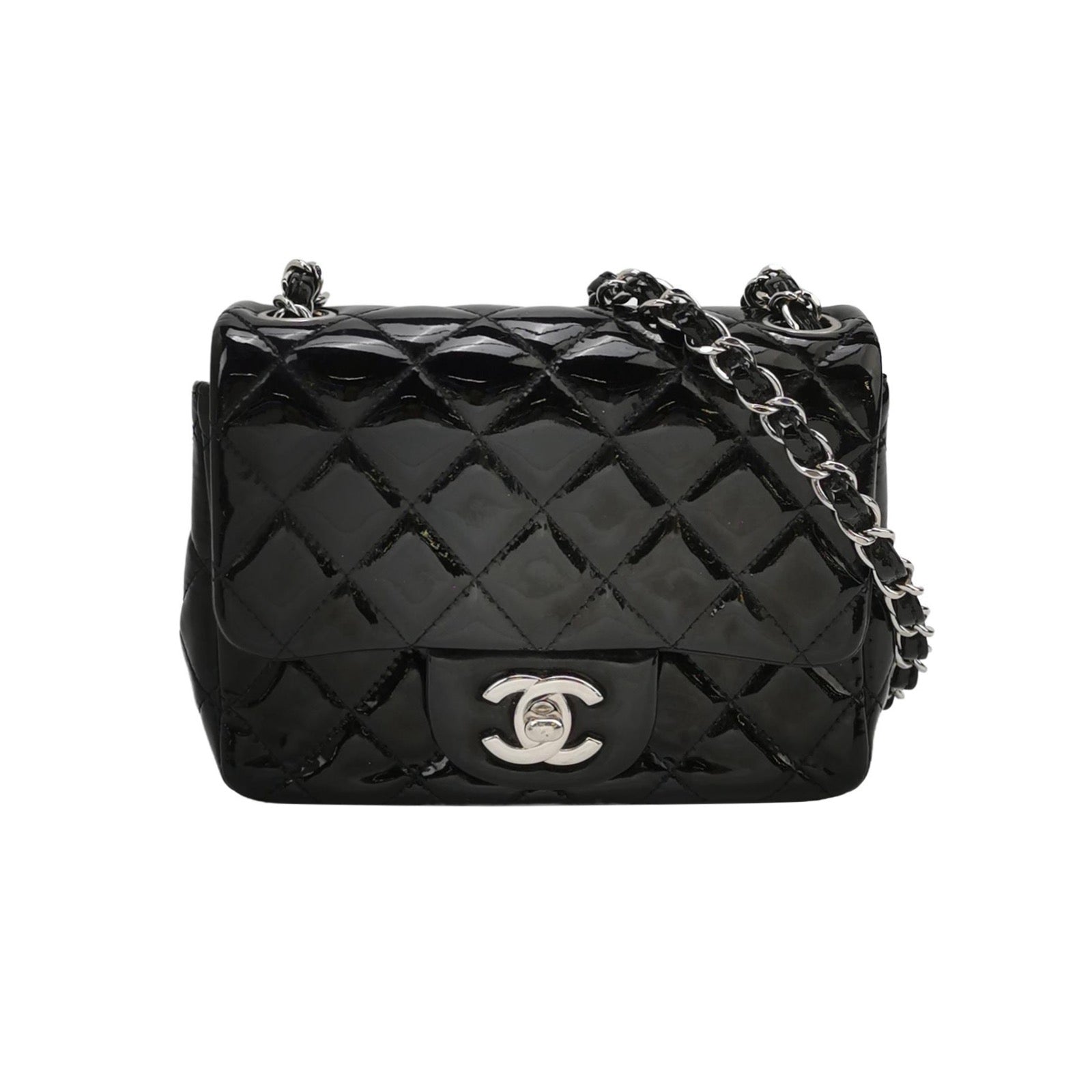 Chanel Classic Flap Mini Square Black Patent Lambskin Crossbody Bag 2014Chanel Classic Flap Mini Square Black Patent Lambskin Crossbody Bag 2014