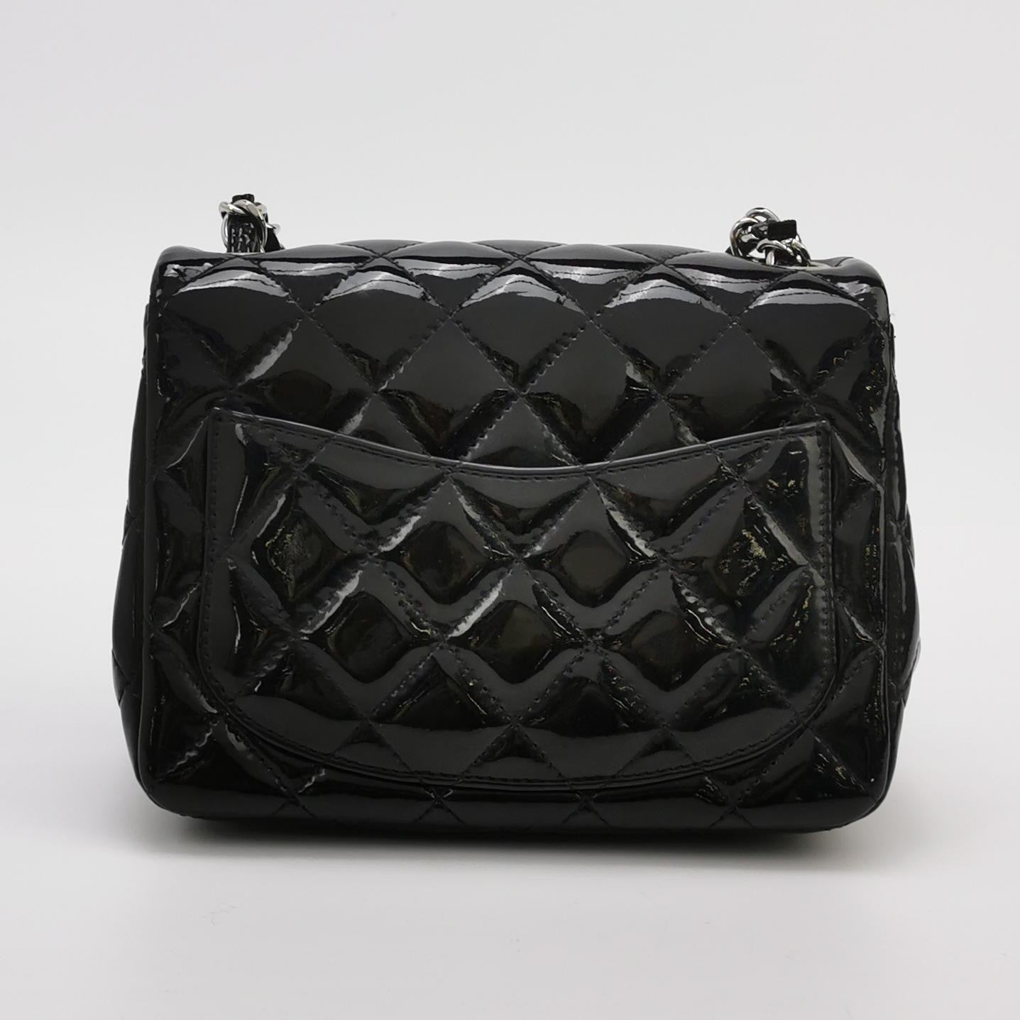 Chanel Classic Flap Mini Square Black Patent Lambskin Crossbody Bag 2014