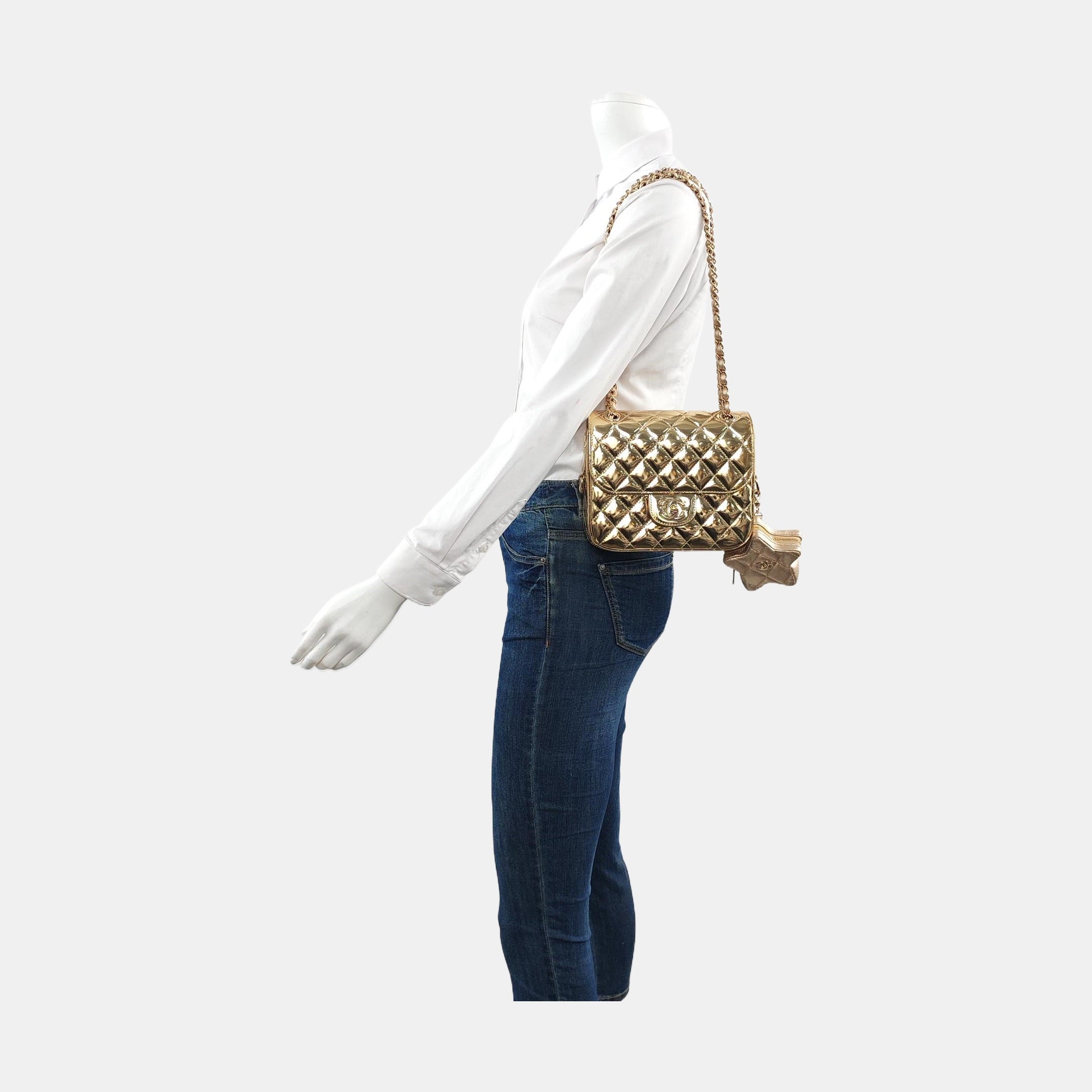 - Gold tone hardware