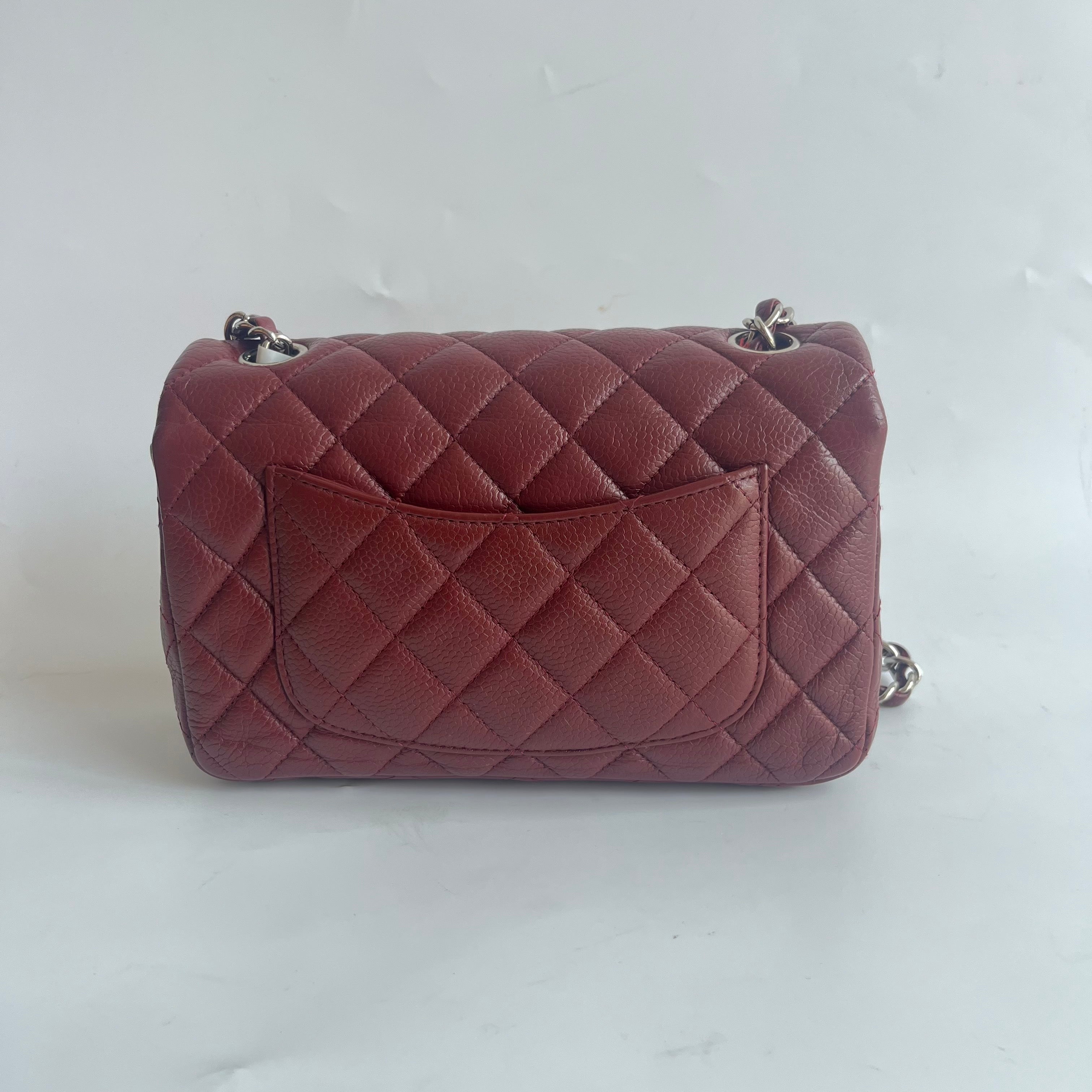 Chanel Classic Flap Rectangular Mini Burgundy Caviar Leather Silver Hardware