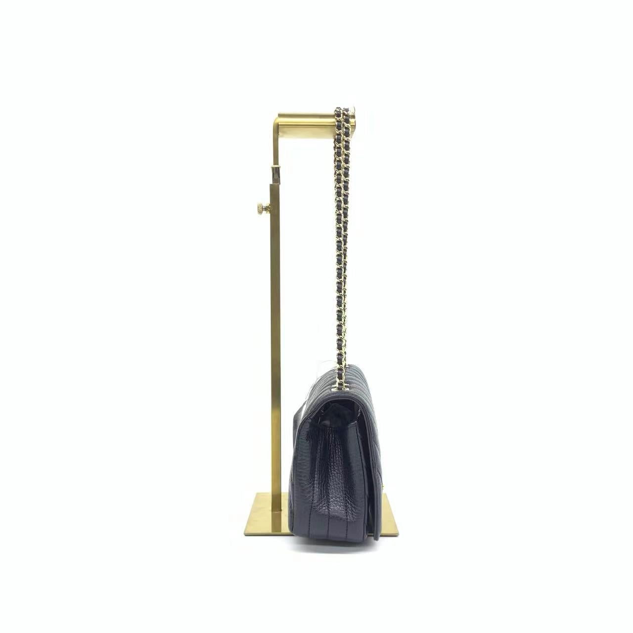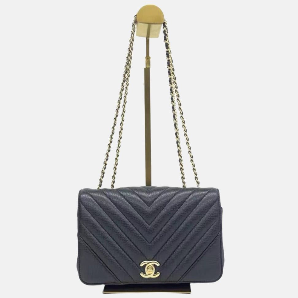 Crafted from high quality calfskin leather in classic black color, accented with gold-tone hardware, in quilted Chevron stitching, the Chanel Classic Flap Mini Crossbody Bag is the perfect everyday bag that takes you from day to night. It can be worn on the shoulder or across the body thanks to the double chain strap.
