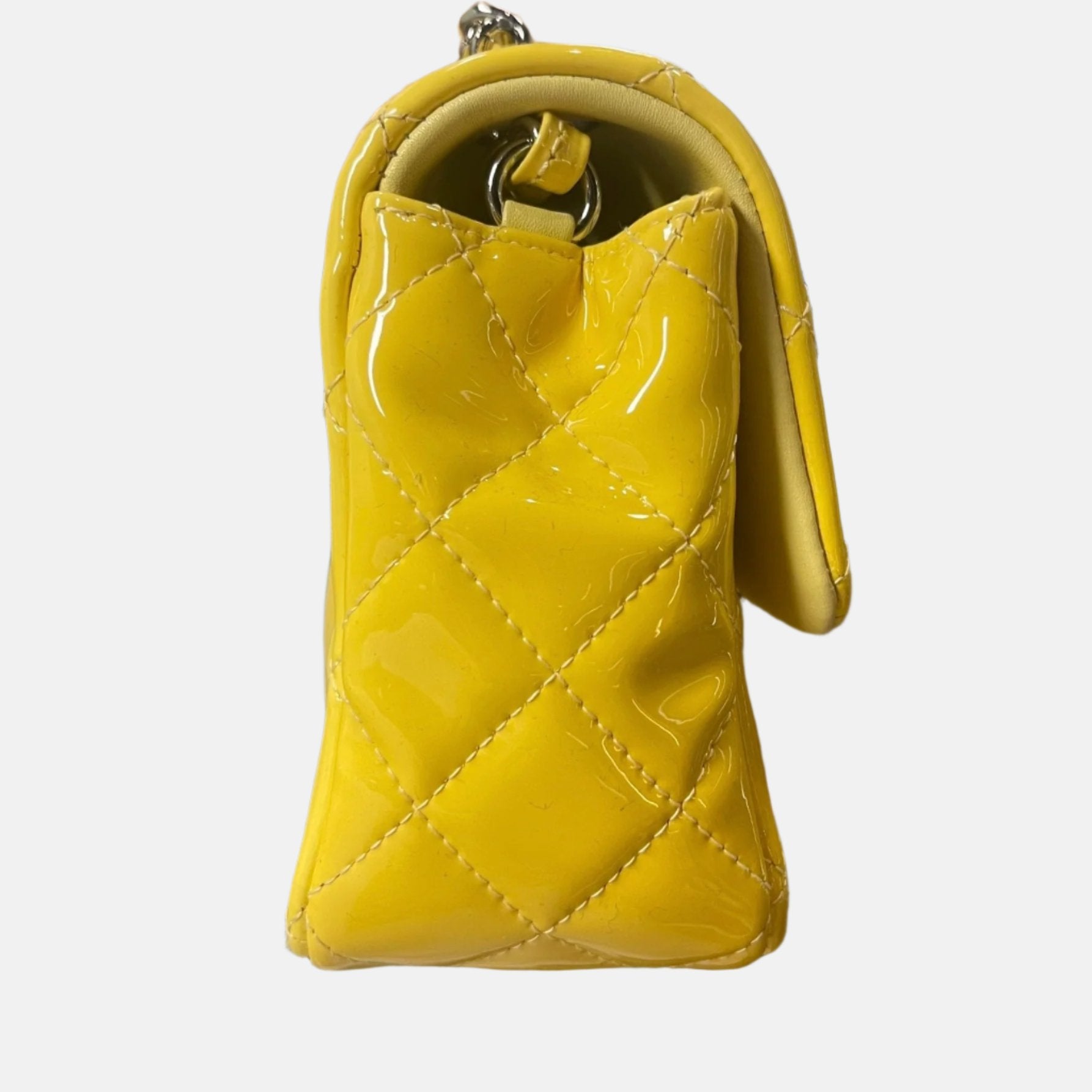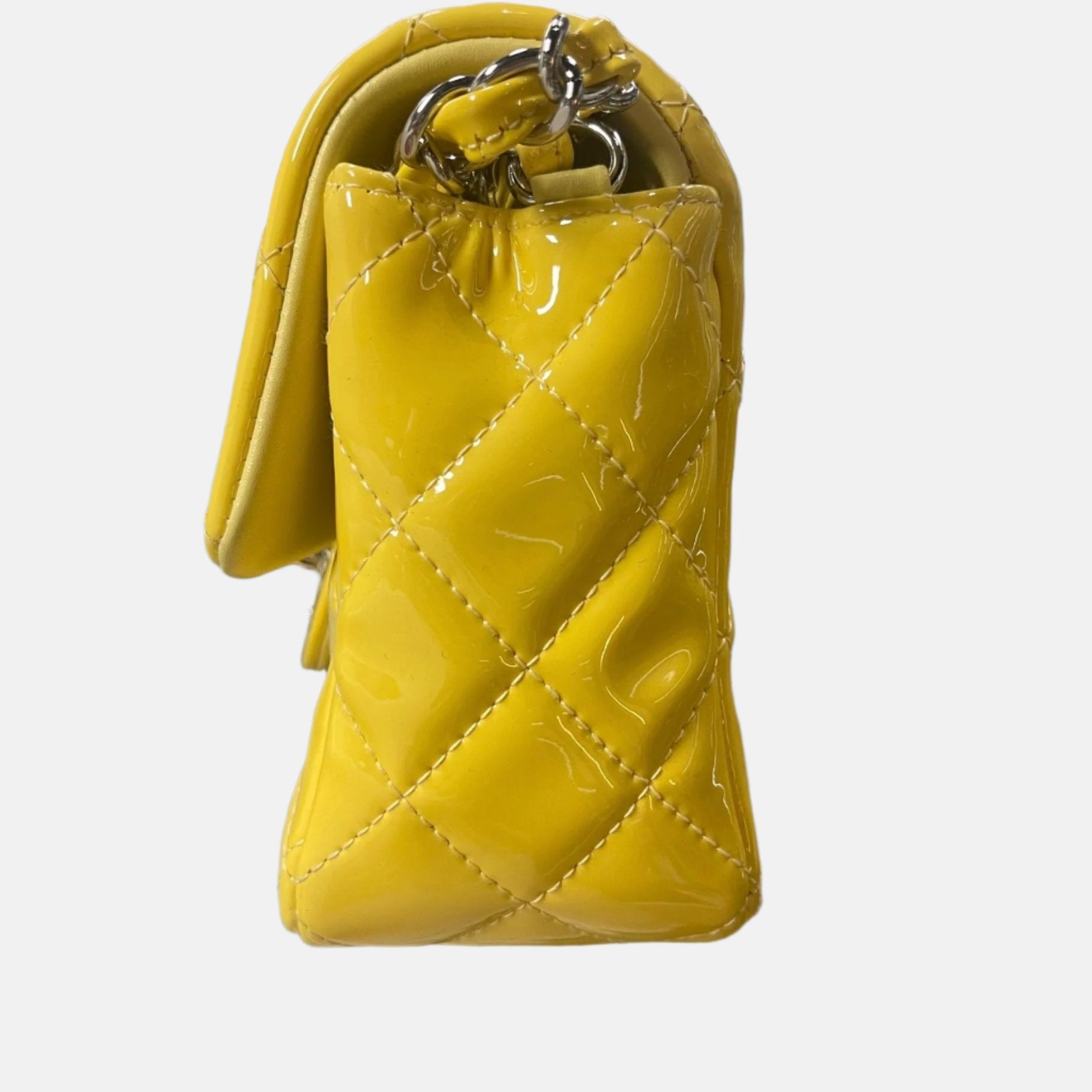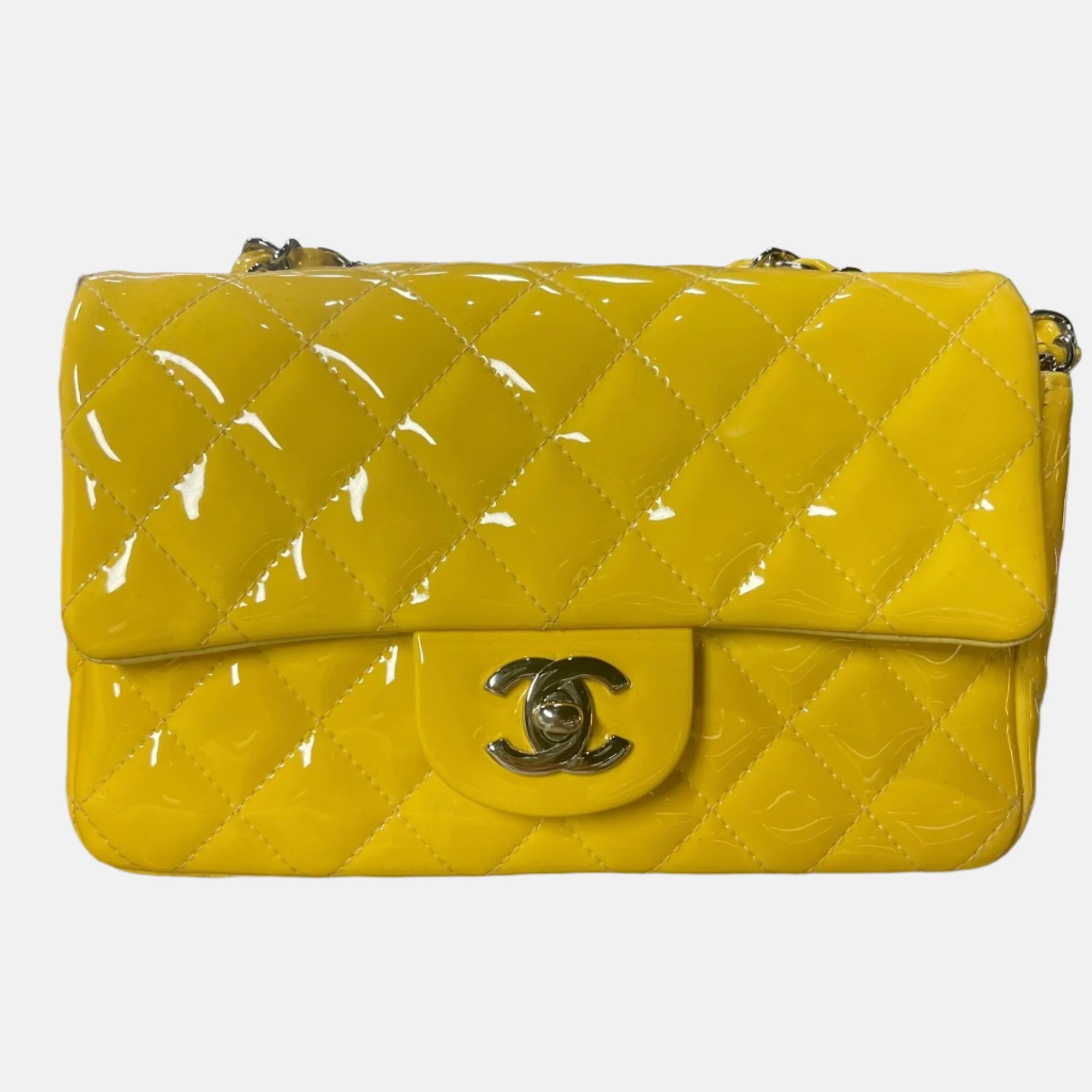 Add a touch of brightness to your summer wardrobe with this classic flap from Chanel, featuring a cheerful shine with its yellow patent leather.
