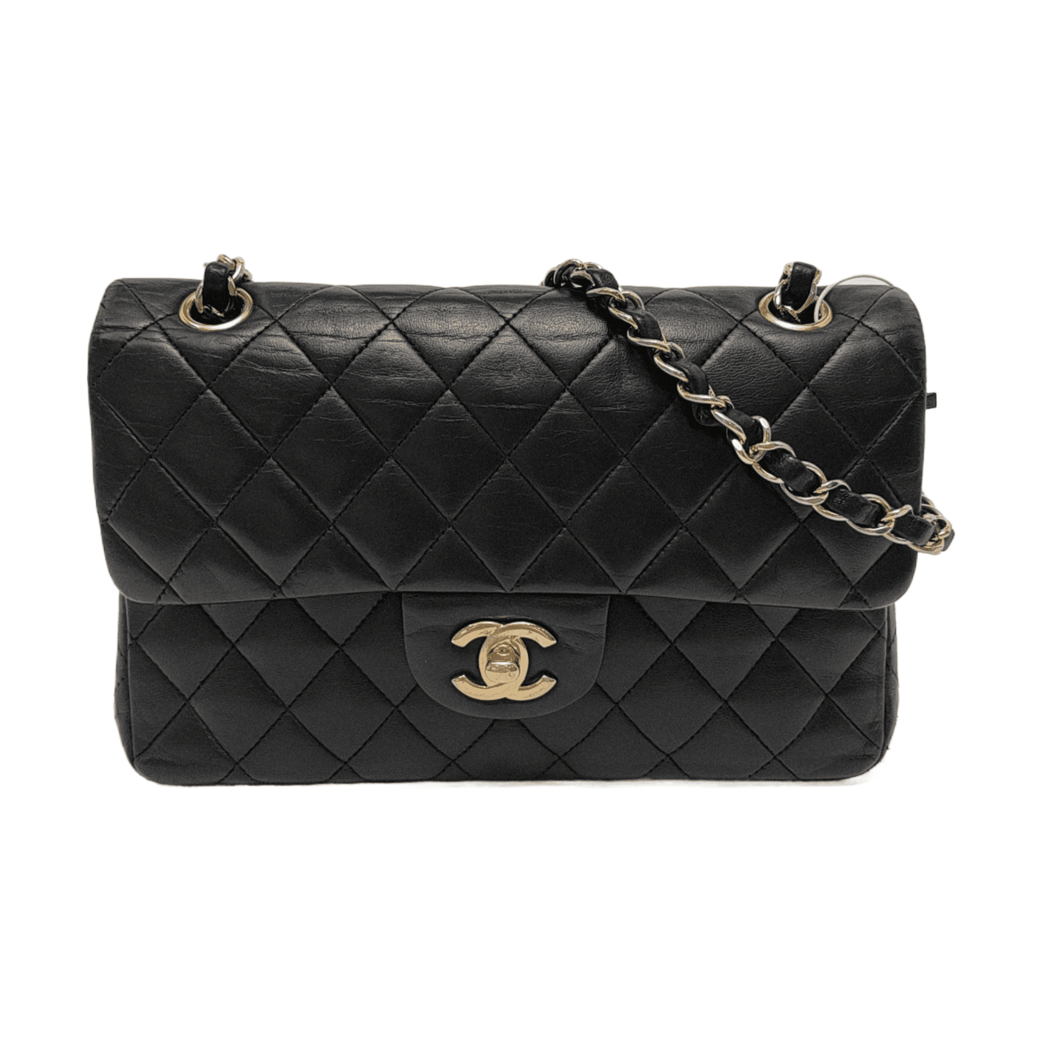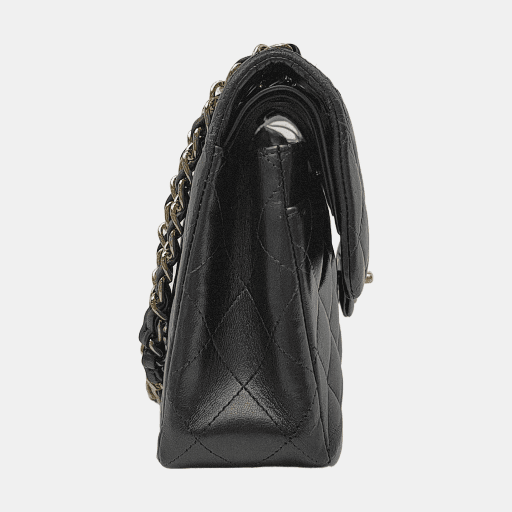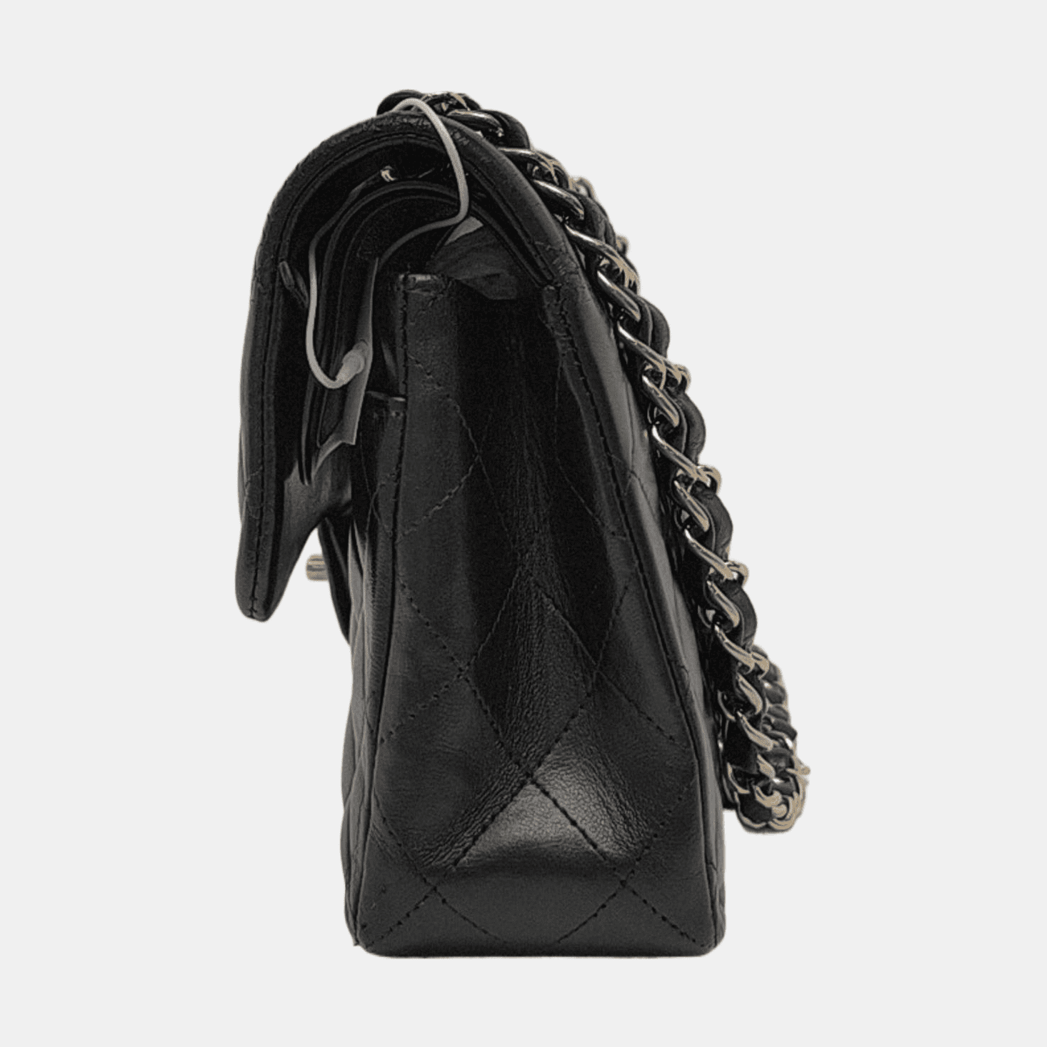 This one-of-a-kind Chanel Classic Flap bag exudes sophistication and timeless elegance. Crafted from luxurious black lambskin leather, it is adorned with gold-tone hardware.Â