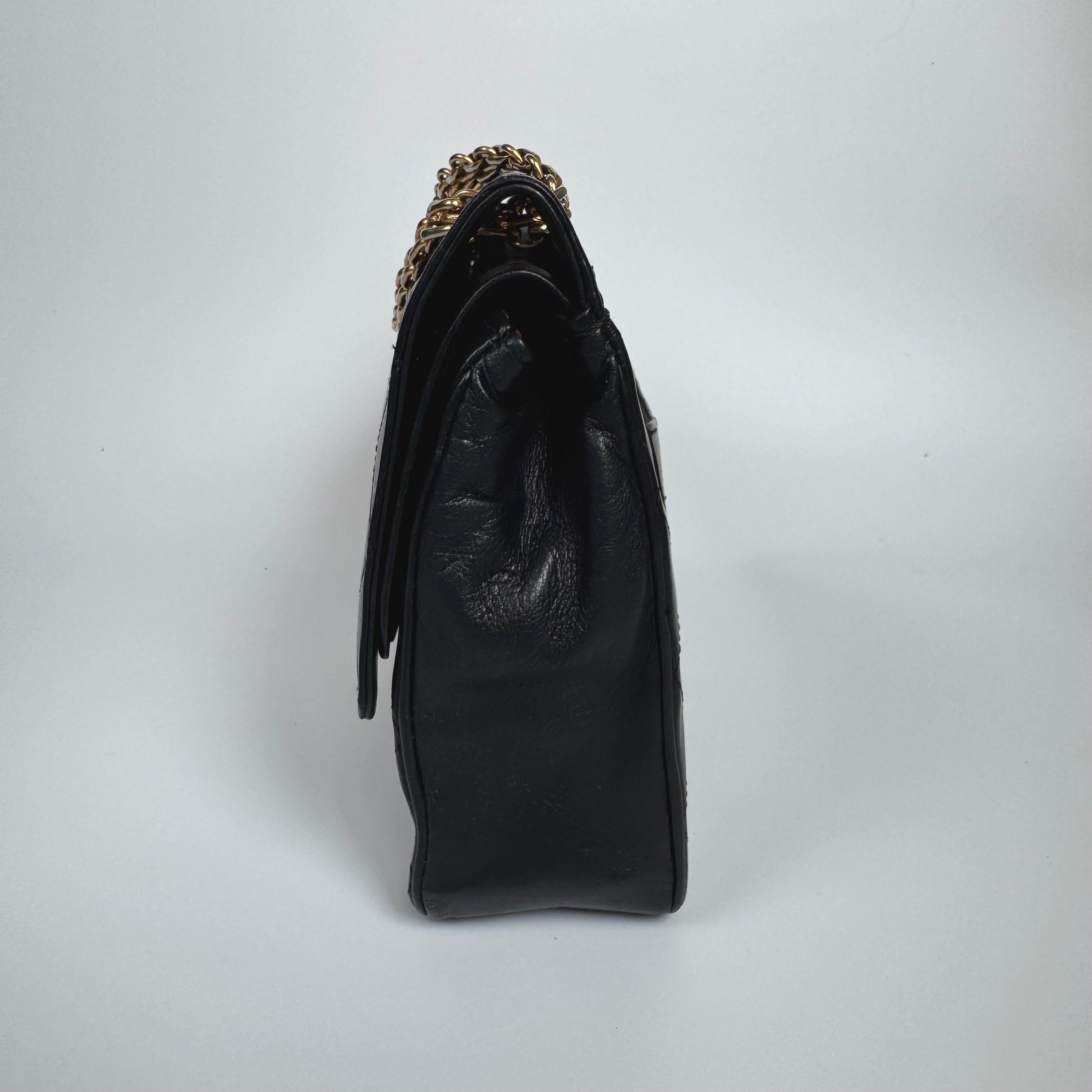 This one-of-a-kind Chanel Classic Flap Vintage bag exudes sophistication and timeless elegance. Crafted from luxurious black lambskin leather, it is adorned with 24k gold hardware. This bag is truly a piece of luxury worth cherishing.